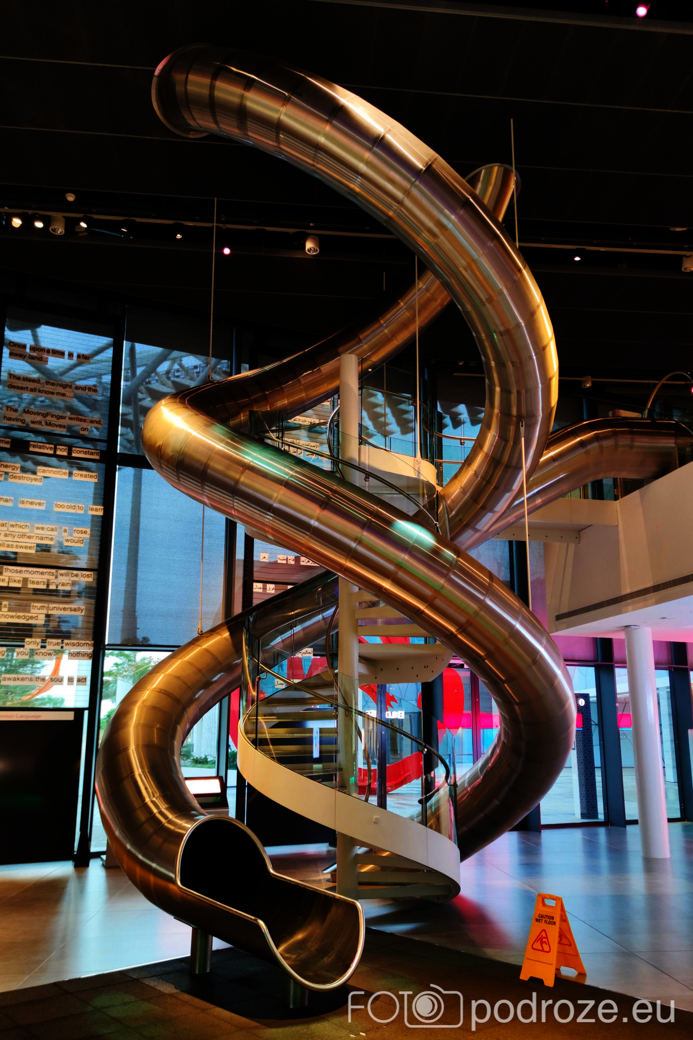 W tej części nawet klatka schodowa jest atrakcją, bo mamy tu zjeżdżalnie. Oczywiście miejsce na dobrą zabawę dla małych, ale i dużych też.