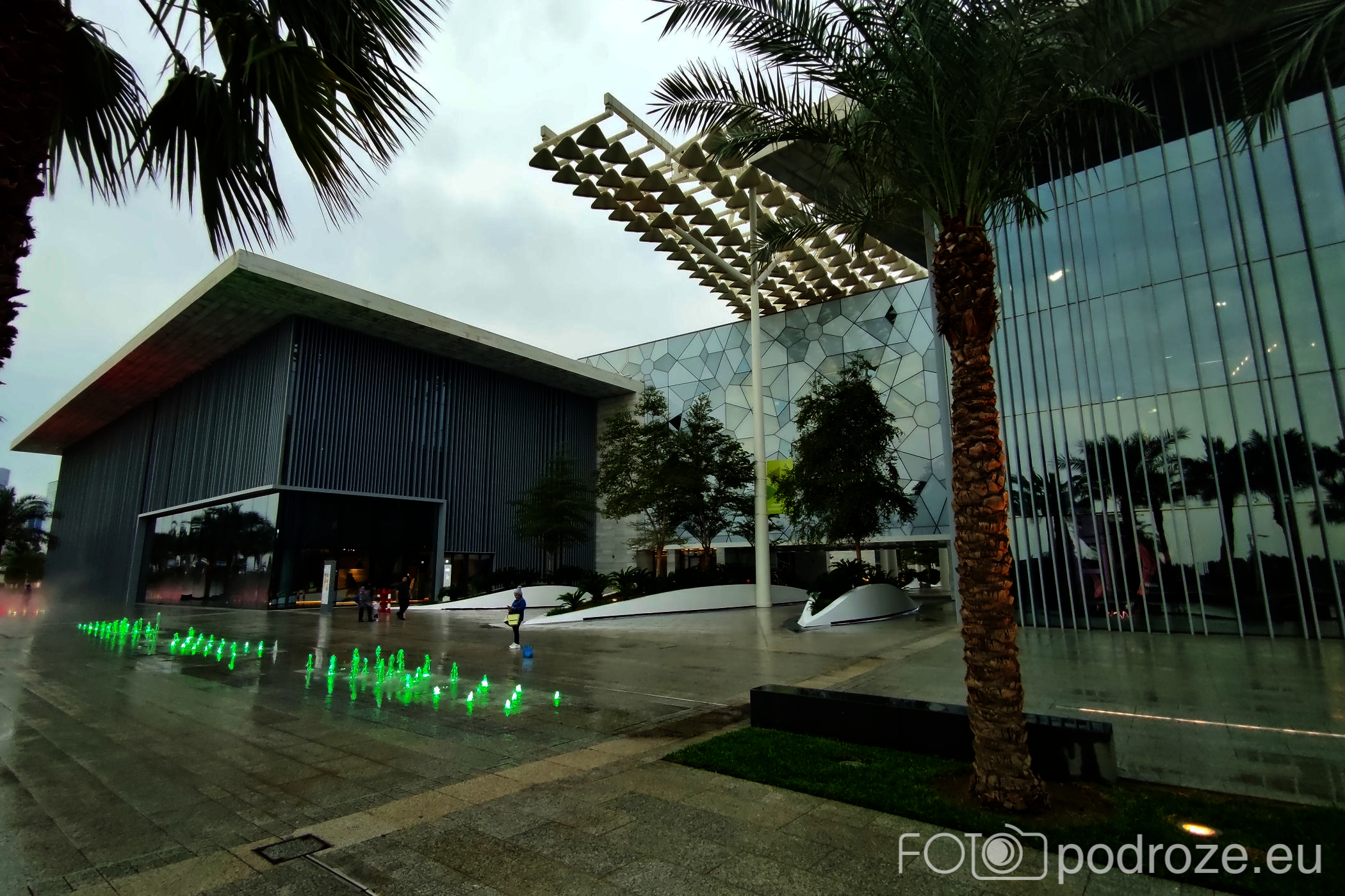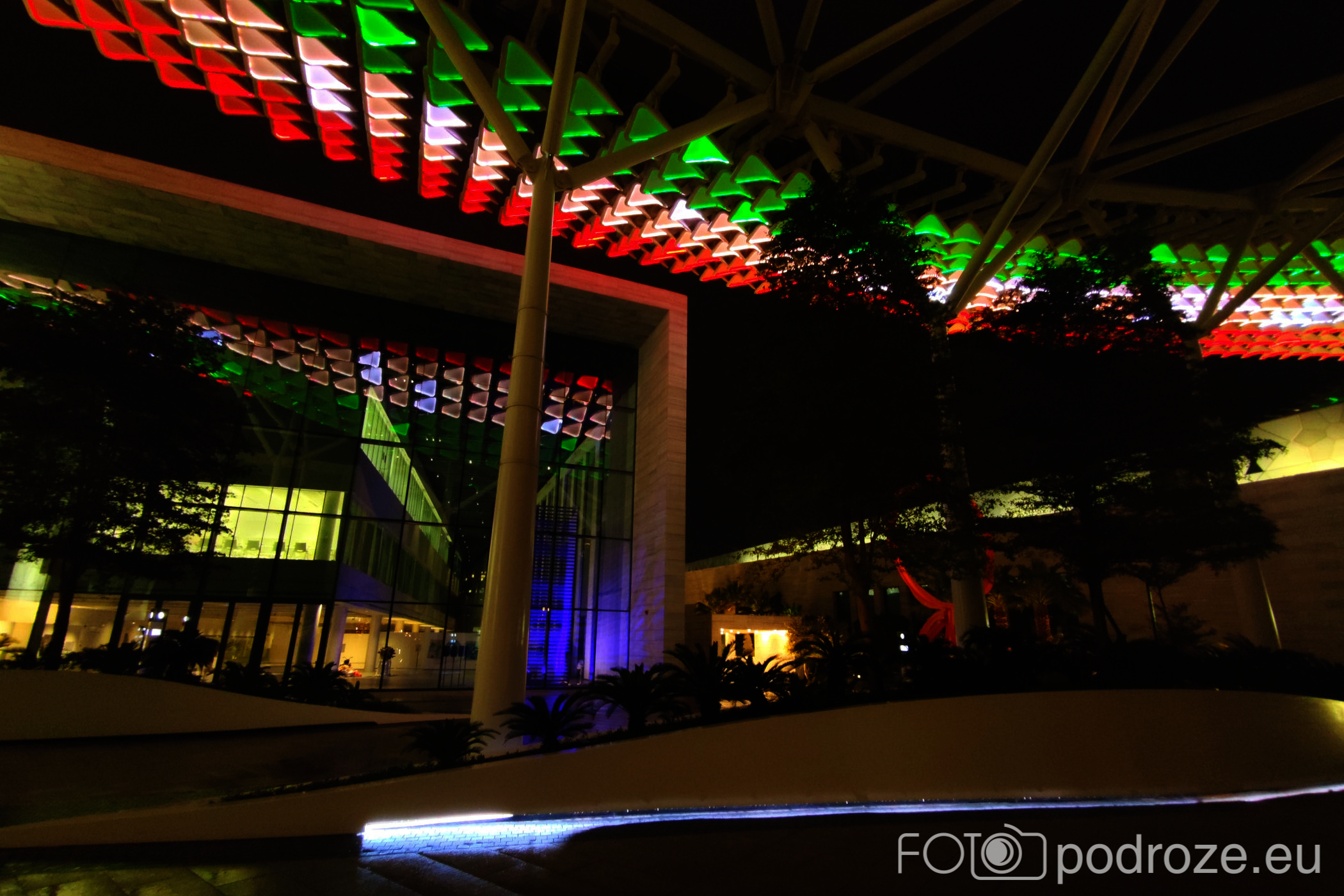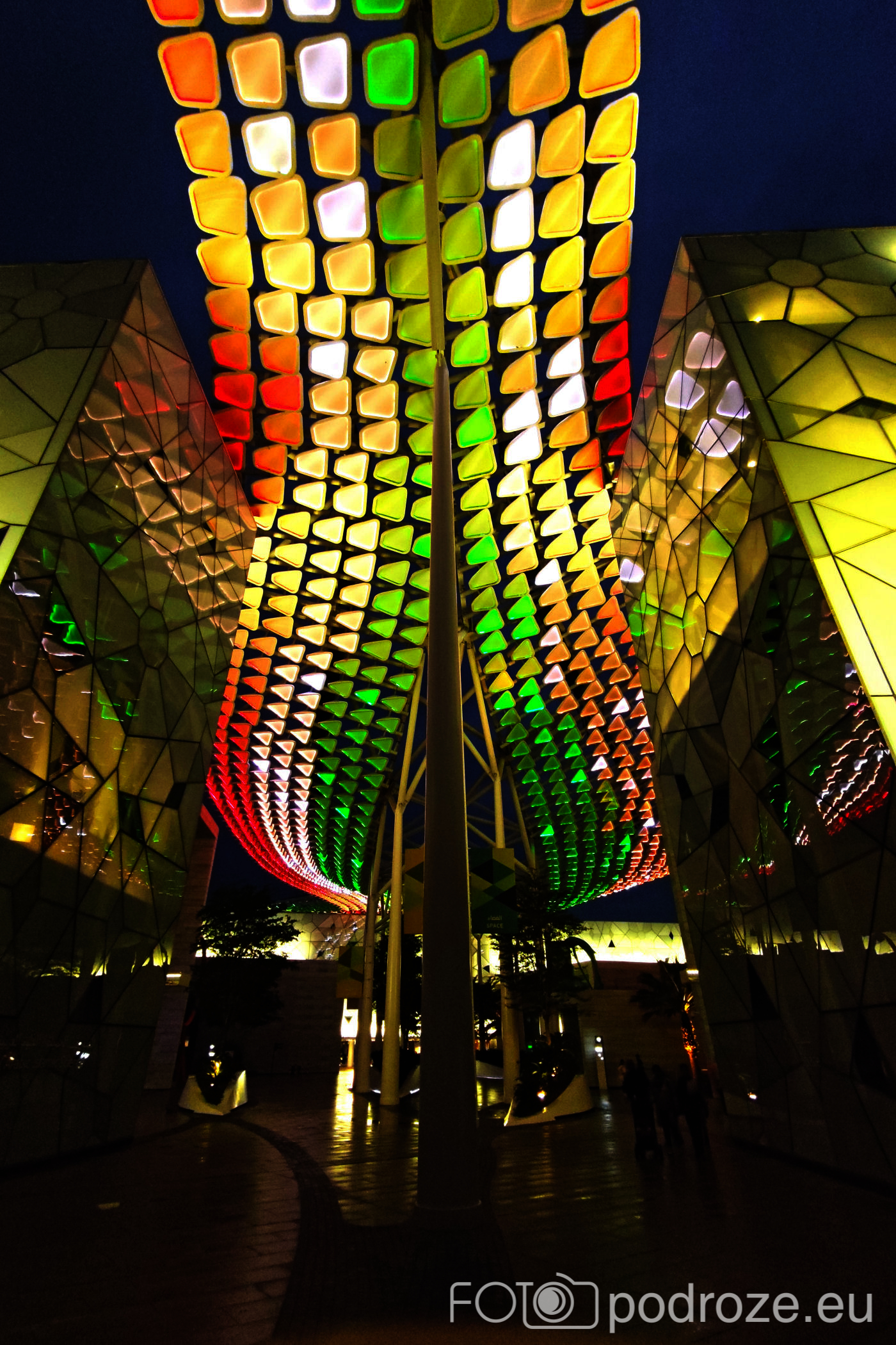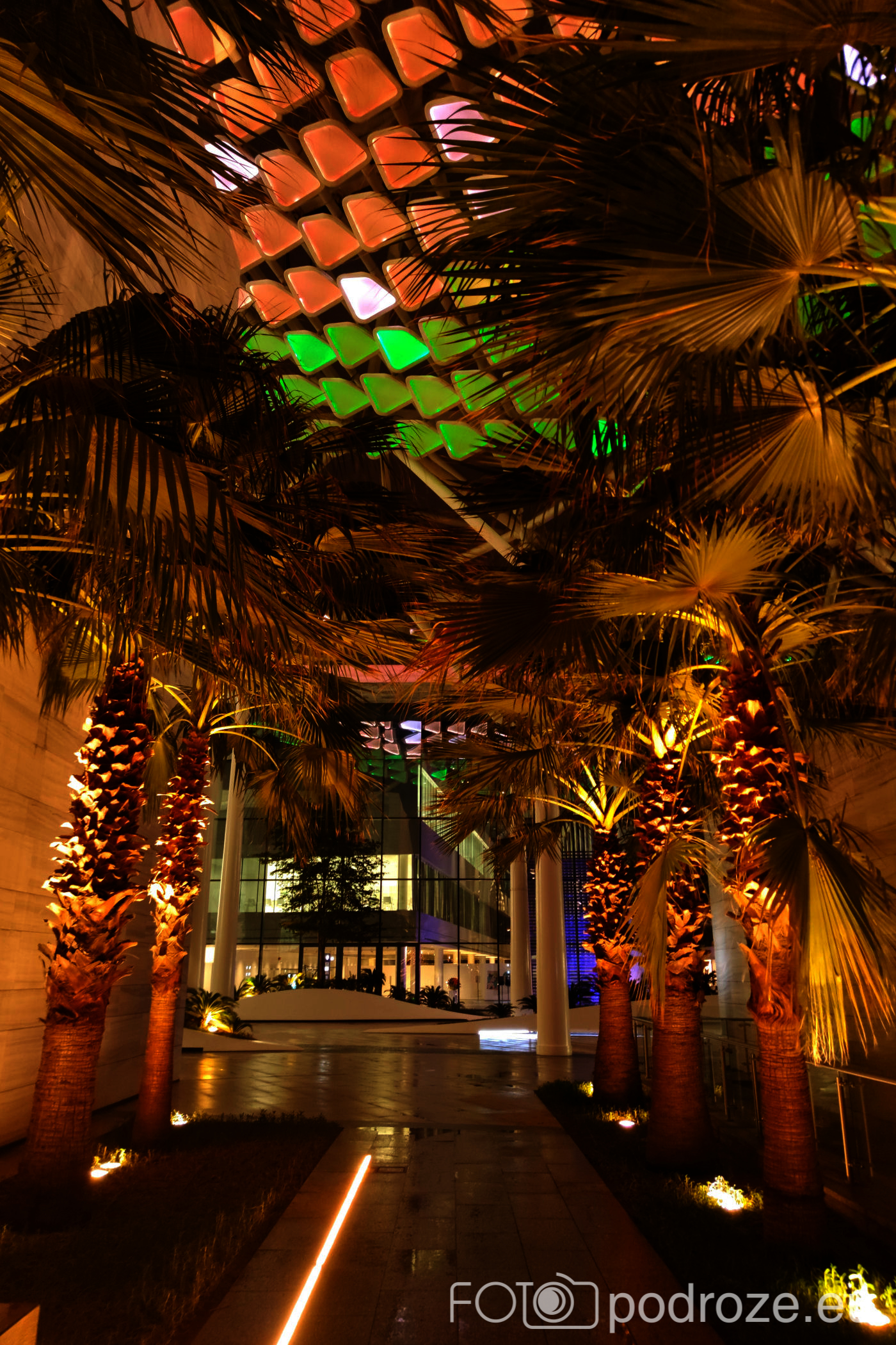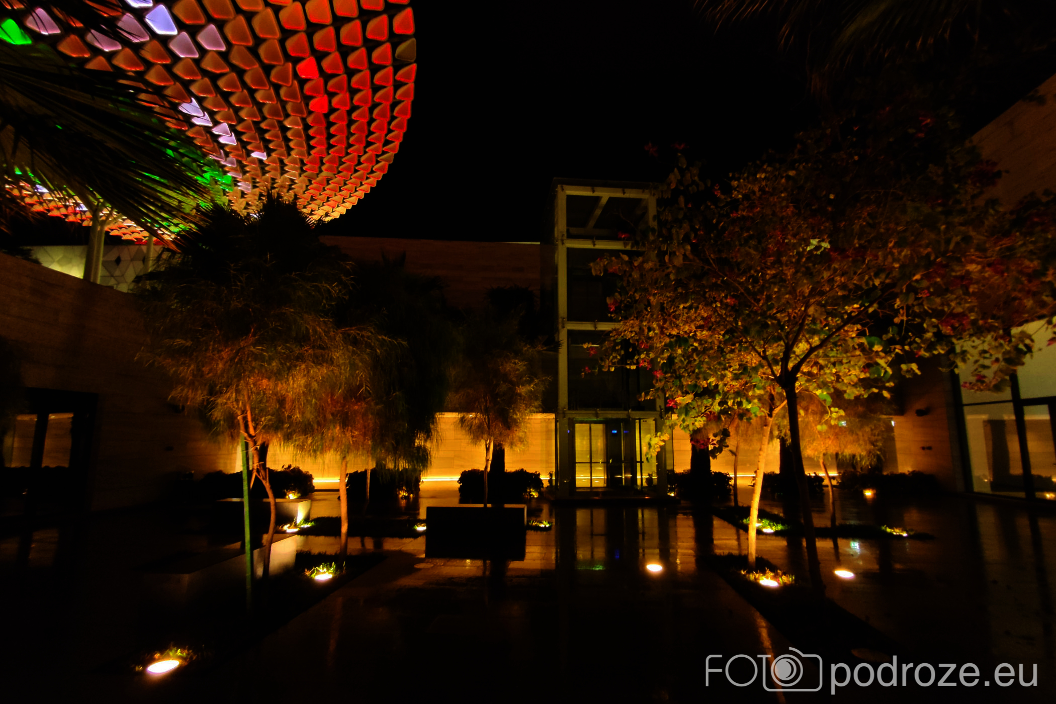 Wieczorem centrum jest fantastycznie oświetlone, zadaszenie ma kolory flagi Kuwejtu i generalnie robi ogromne wrażenie. Bardzo żałowaliśmy, że jesteśmy tu w deszczu i nie udało się obejrzeć wszystkich atrakcyjnych miejsc na zewnątrz.