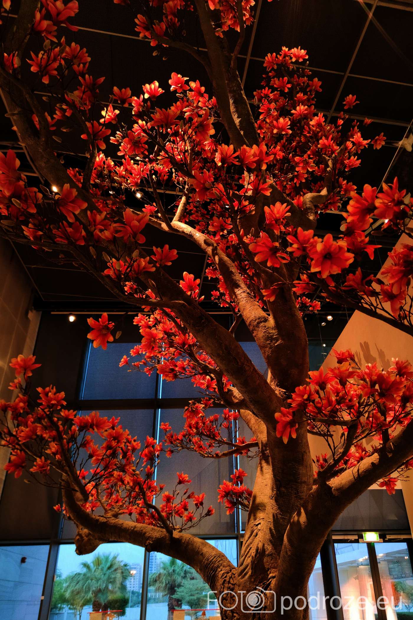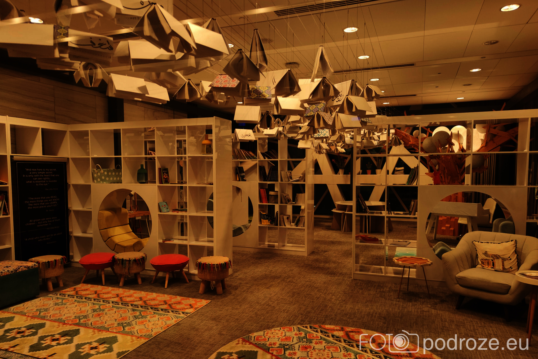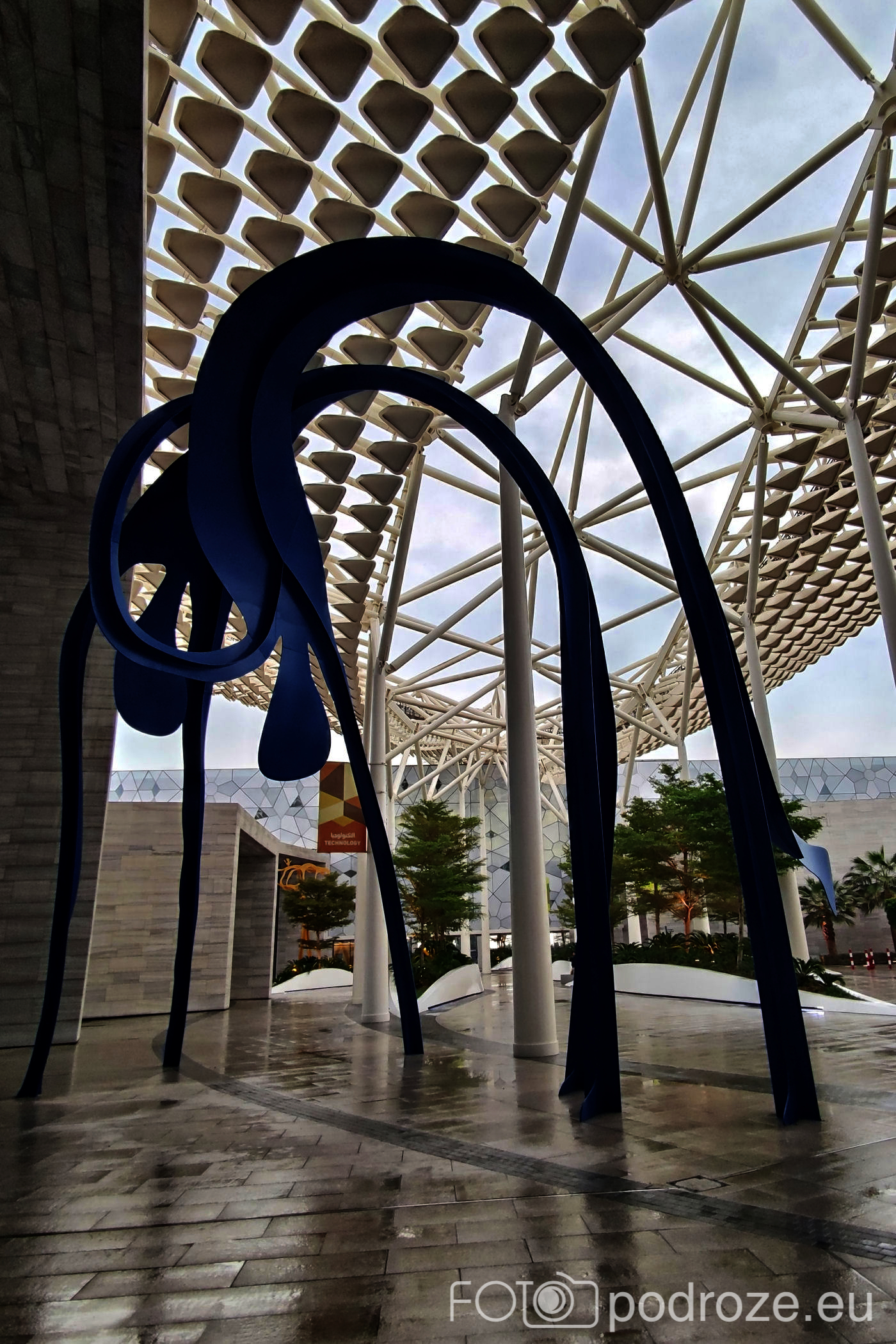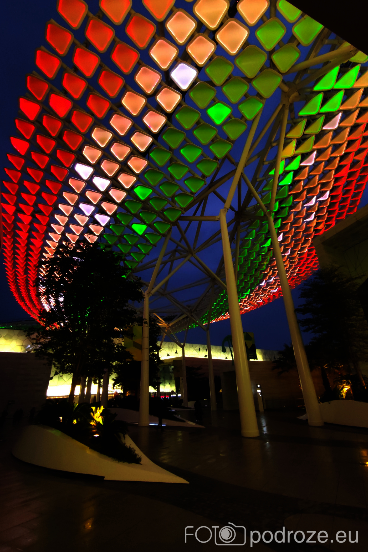 Wieczorem centrum jest fantastycznie oświetlone, zadaszenie ma kolory flagi Kuwejtu i generalnie robi ogromne wrażenie. Bardzo żałowaliśmy, że jesteśmy tu w deszczu i nie udało się obejrzeć wszystkich atrakcyjnych miejsc na zewnątrz.