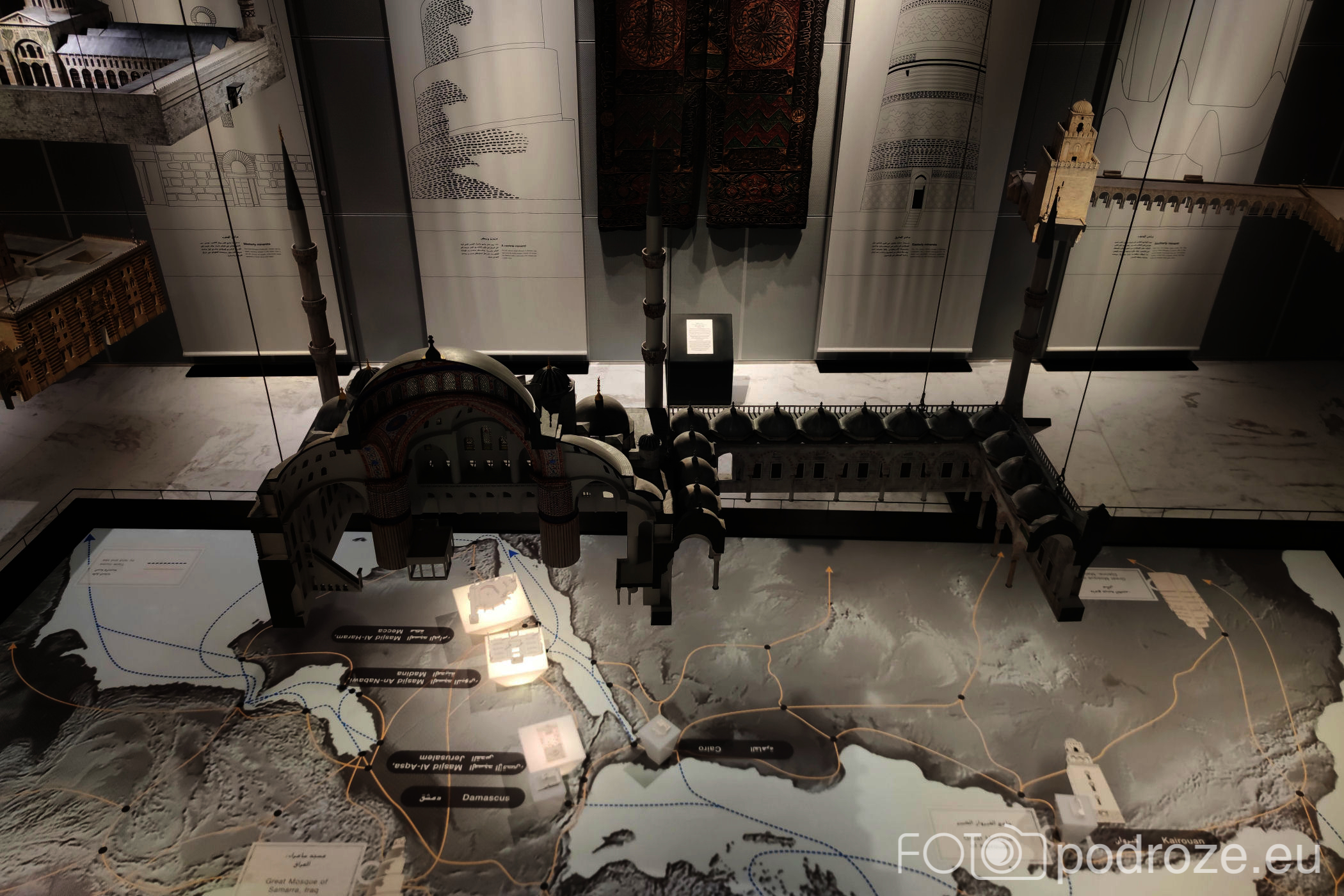 Na parterze jest wystawa makiet wszystkich najważniejszych i największych meczetów świata, czyli architektonicznych cudów świata islamu. To taka mała podróż przez cały arabski świat.