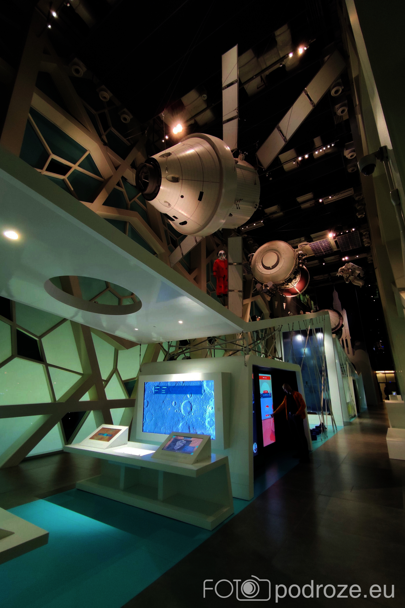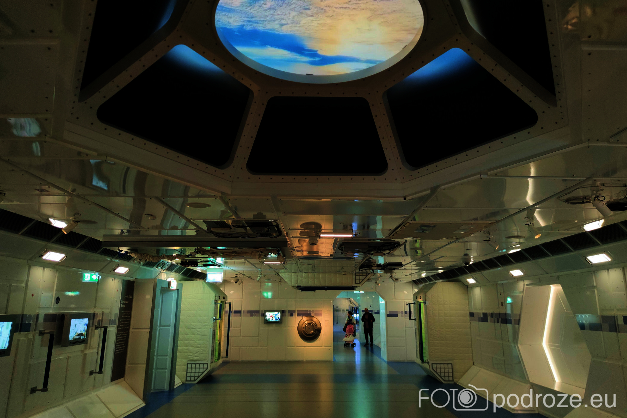 Już z parteru widać, że całe wnętrze tej części zostało zbudowane jak wielka stacja kosmiczna. Na piętrze znajdują się zaaranżowane z dużą dokładnością wnętrza stacji z pokazanym życiem codziennym kosmonautów. To chyba najbardziej zaskakująca część muzeum i zdecydowanie najciekawsza.