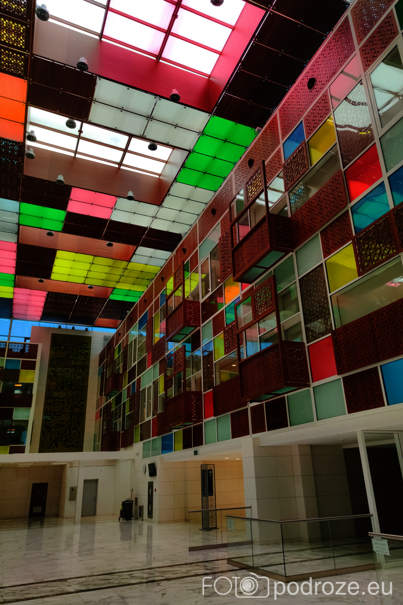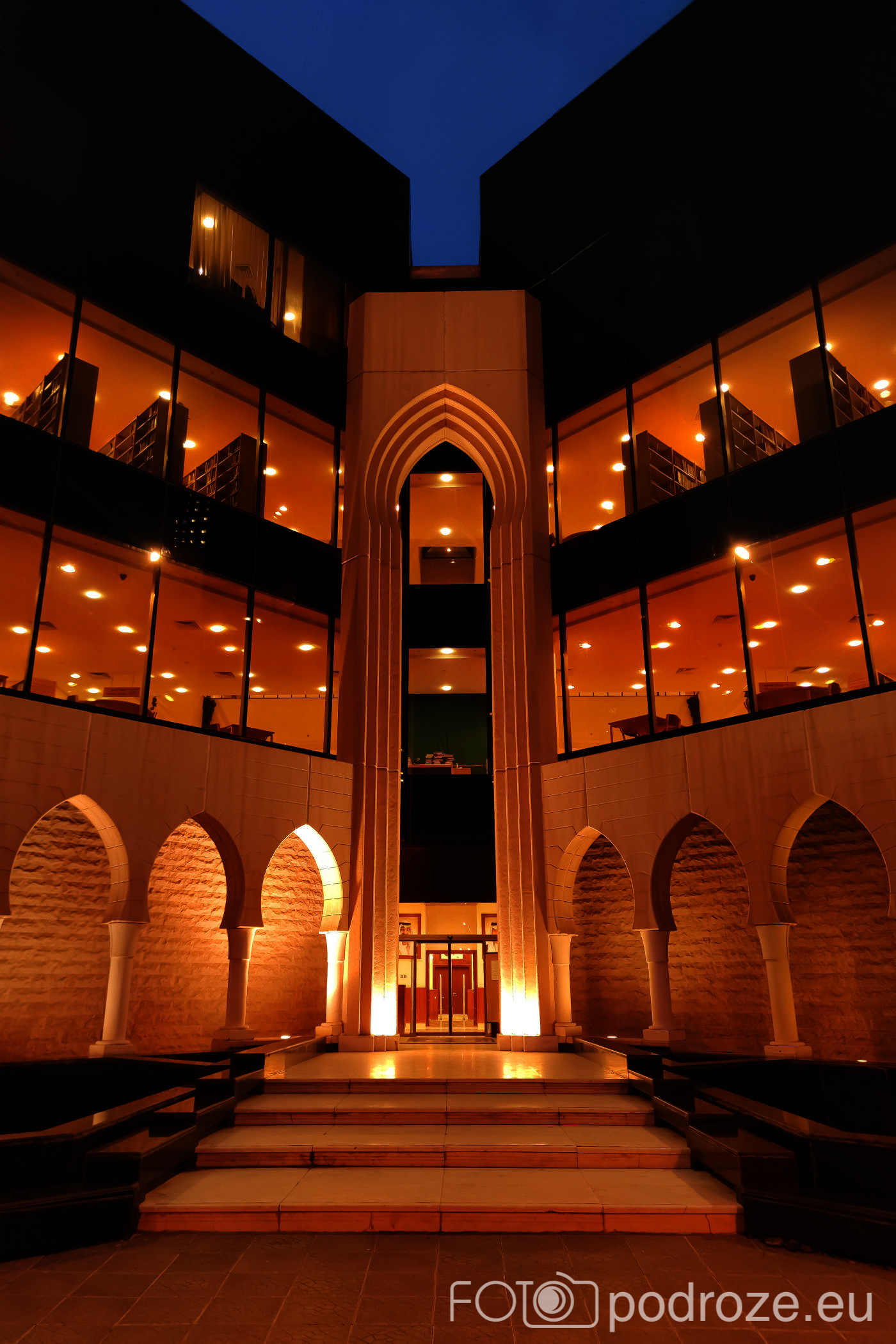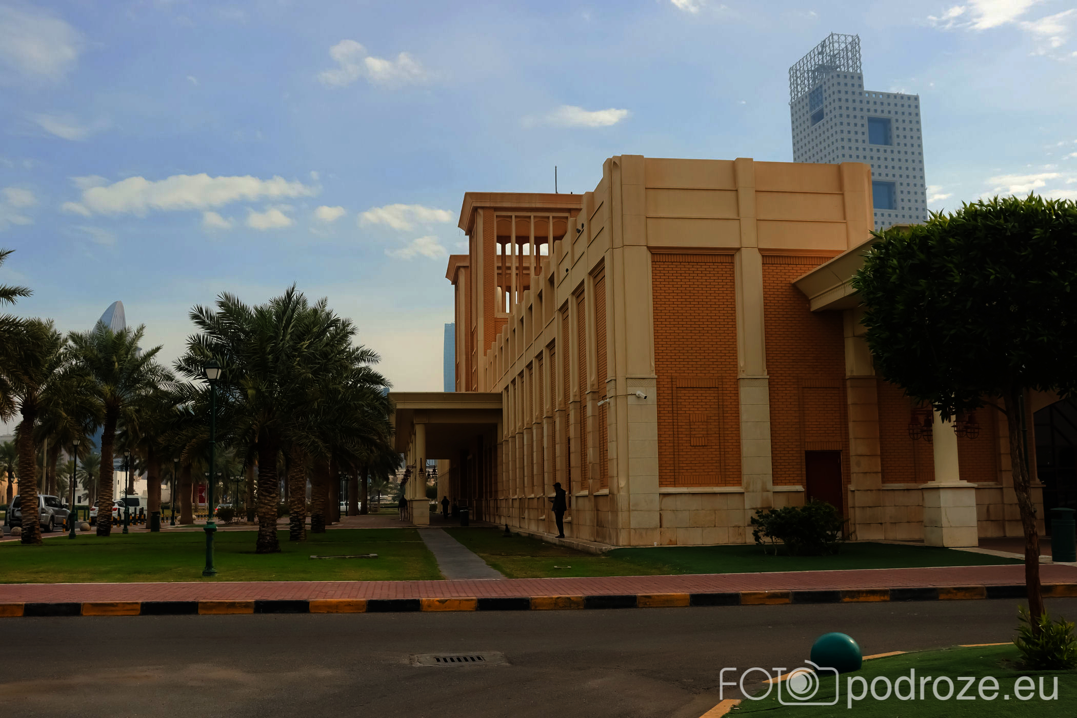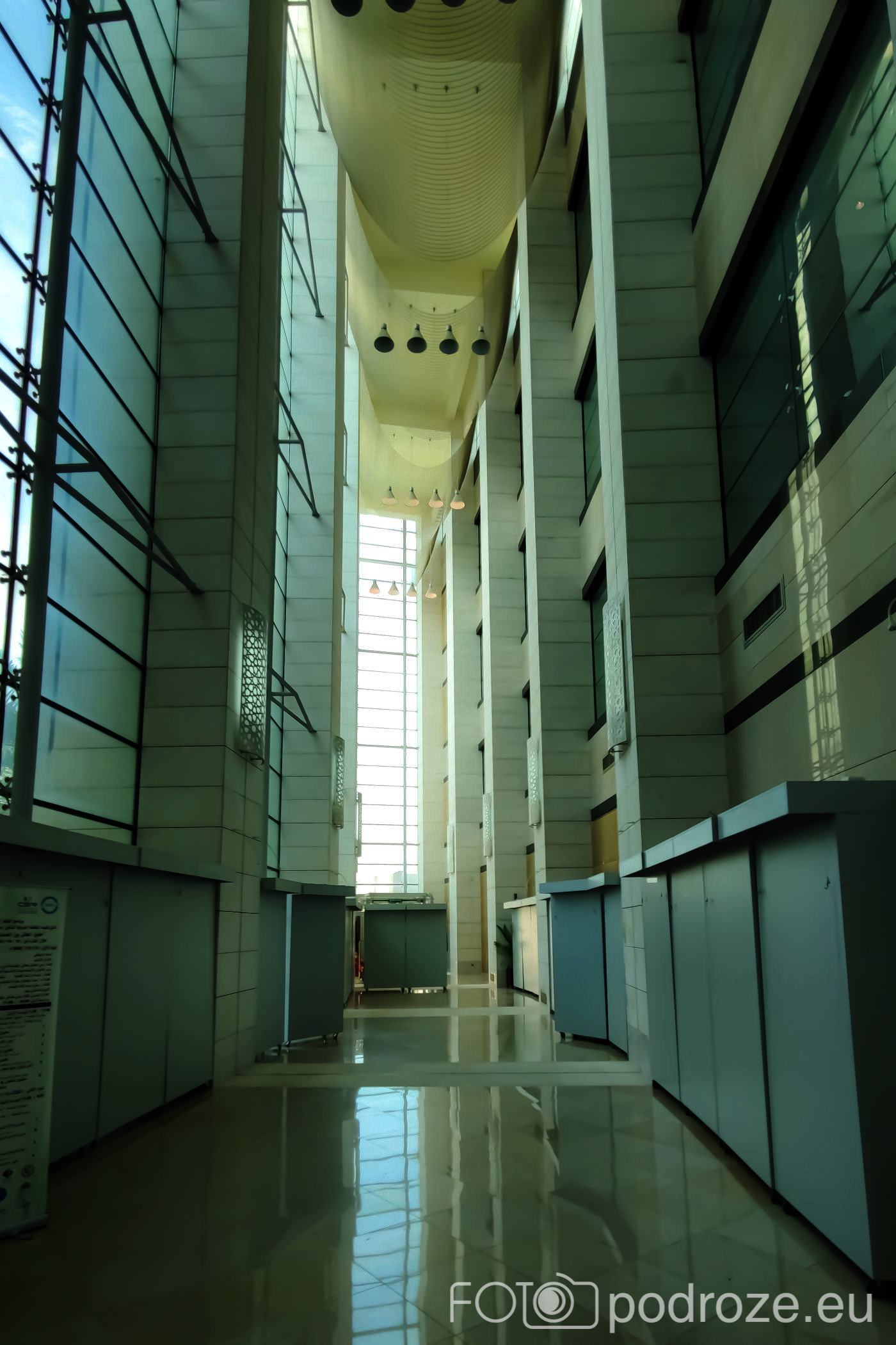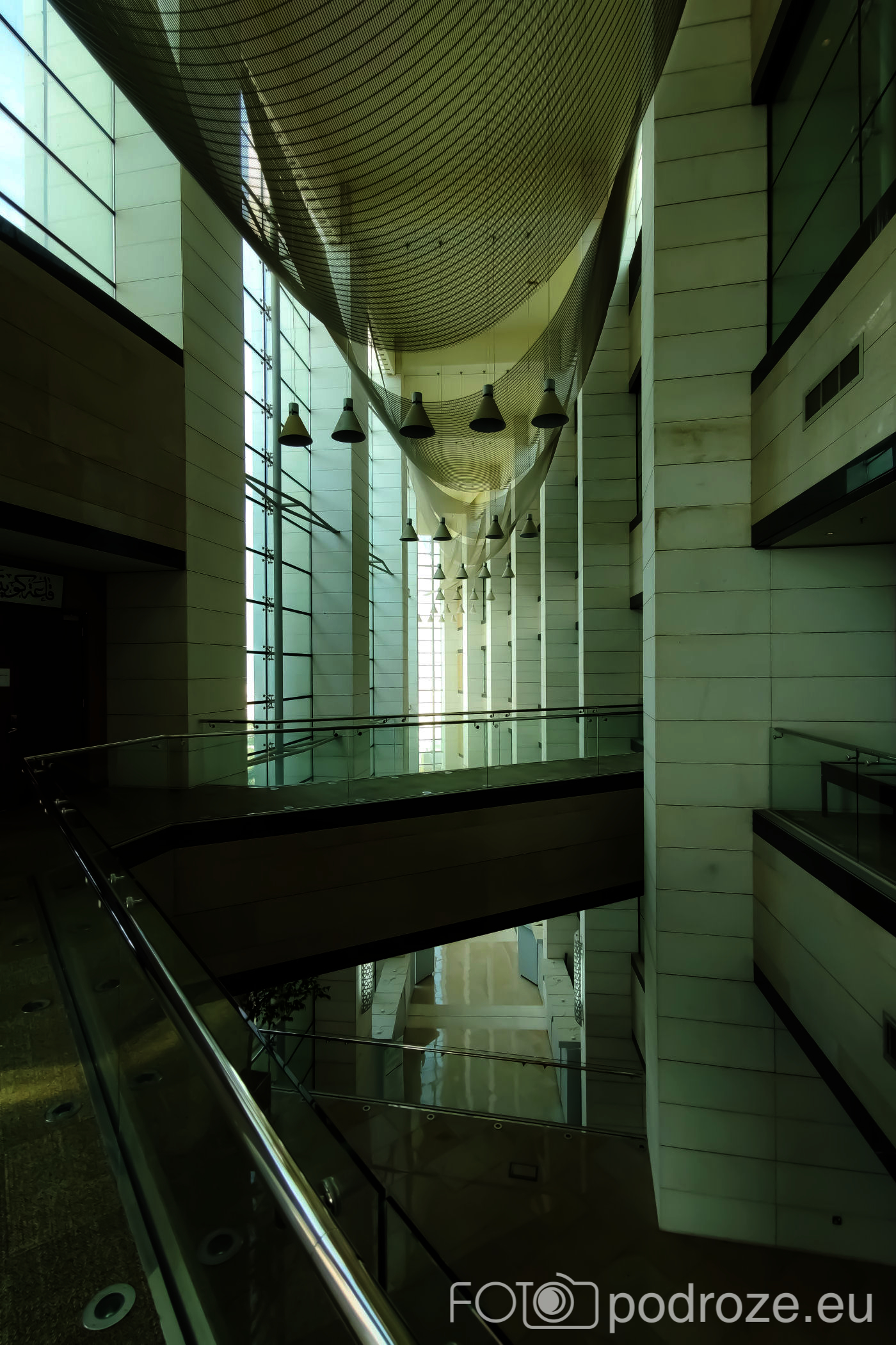 Jeśli będziecie zwiedzać WIELKI MECZET to koniecznie zajrzyjcie do znajdujące się tuż za nim Al-Babtain Library For Arabic Poetry . Wyjątkowo piękny architektonicznie budynek można nawet odwiedzić w środku. We wnętrzach już jednak jest zakaz fotografowania. Nad budynkiem biblioteki góruje wieża Banku Centralnego. Wszystkie obiekty znajdujące się w tym kwartale zasługują więc na uwagę.