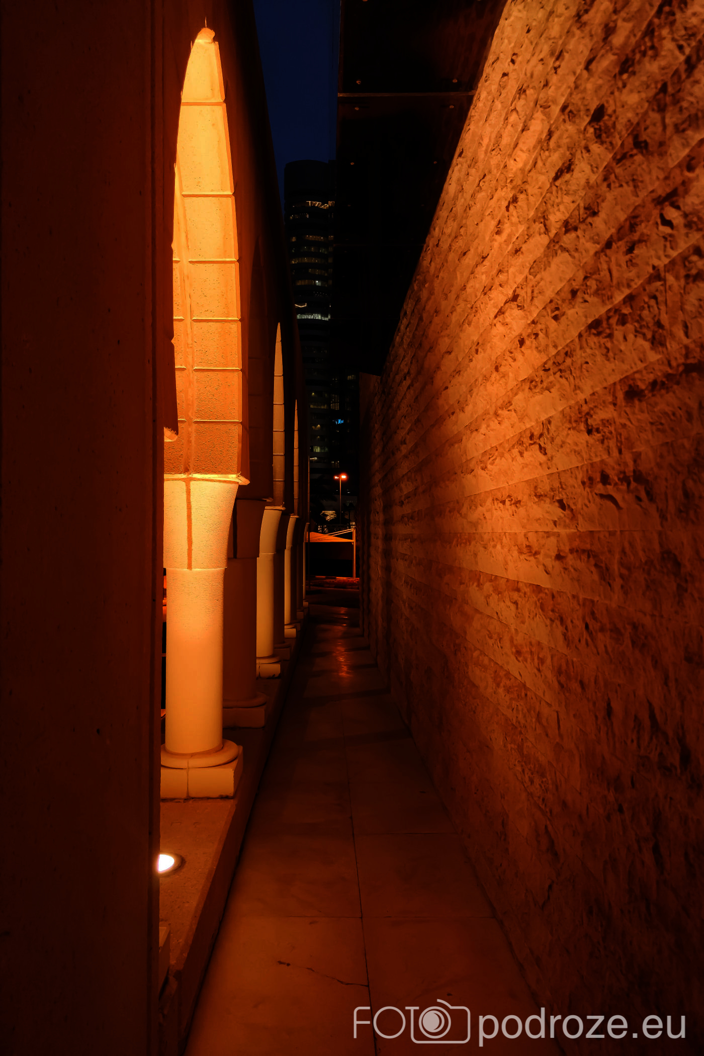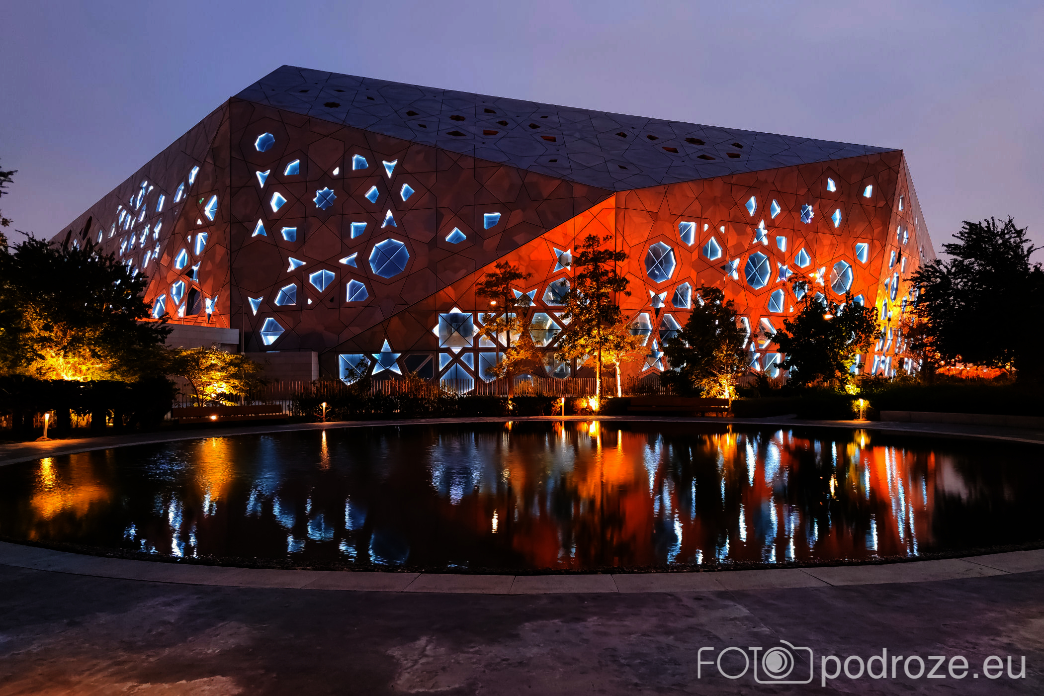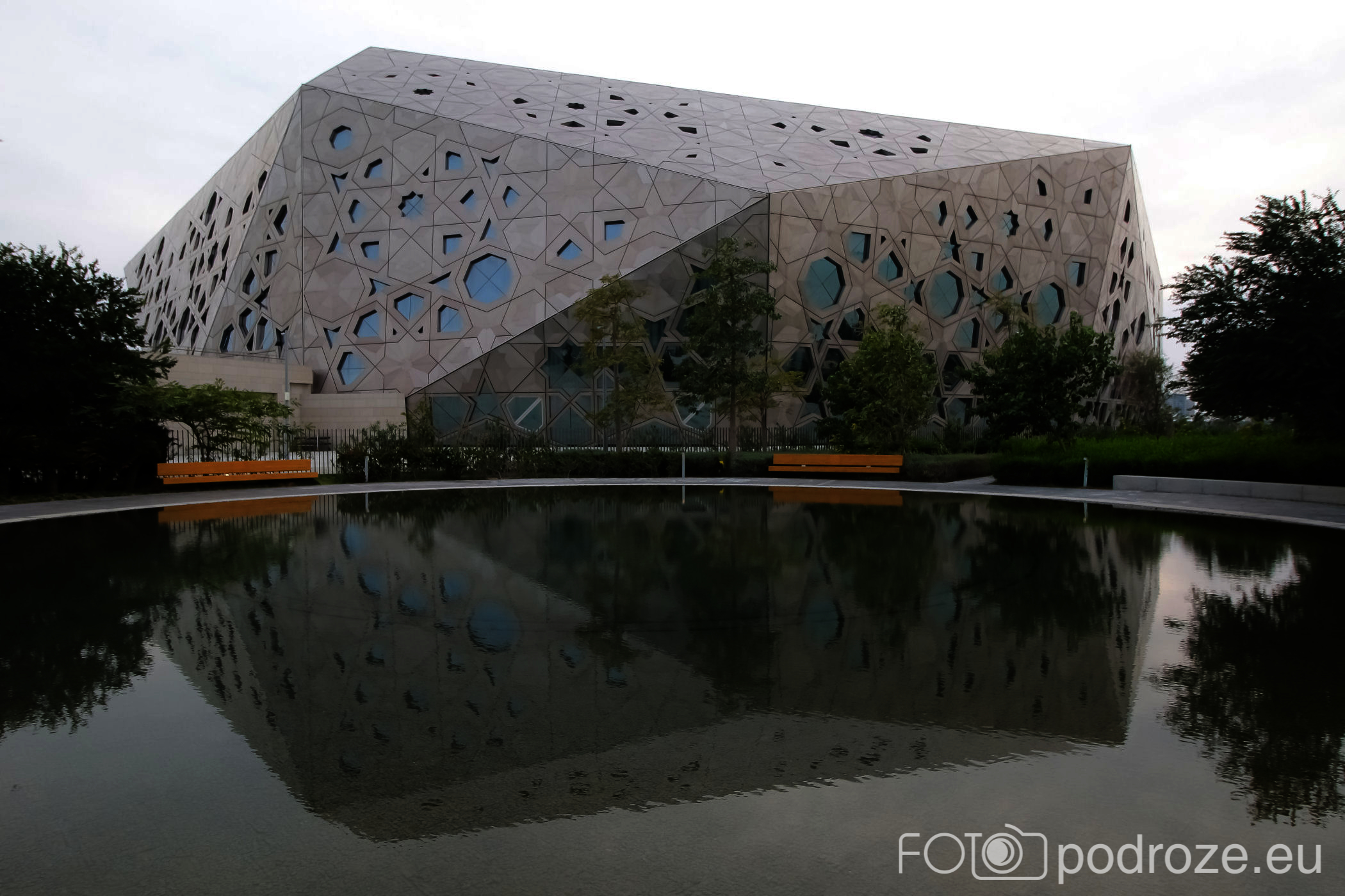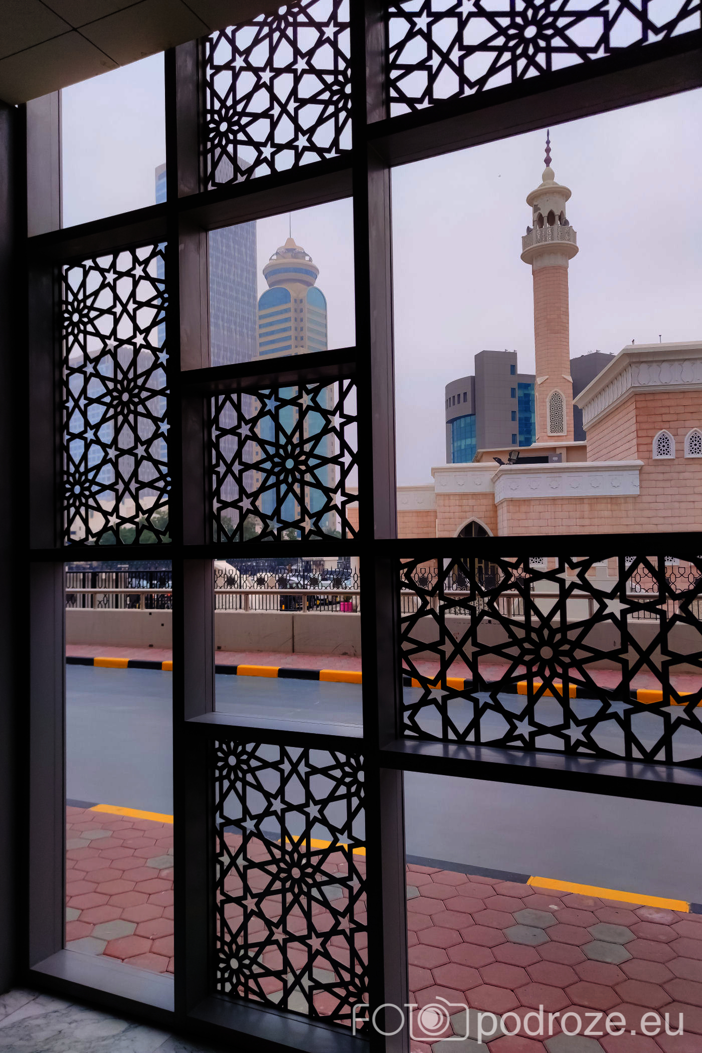 Jeśli będziecie zwiedzać WIELKI MECZET to koniecznie zajrzyjcie do znajdujące się tuż za nim Al-Babtain Library For Arabic Poetry . Wyjątkowo piękny architektonicznie budynek można nawet odwiedzić w środku. We wnętrzach już jednak jest zakaz fotografowania. Nad budynkiem biblioteki góruje wieża Banku Centralnego. Wszystkie obiekty znajdujące się w tym kwartale zasługują więc na uwagę.