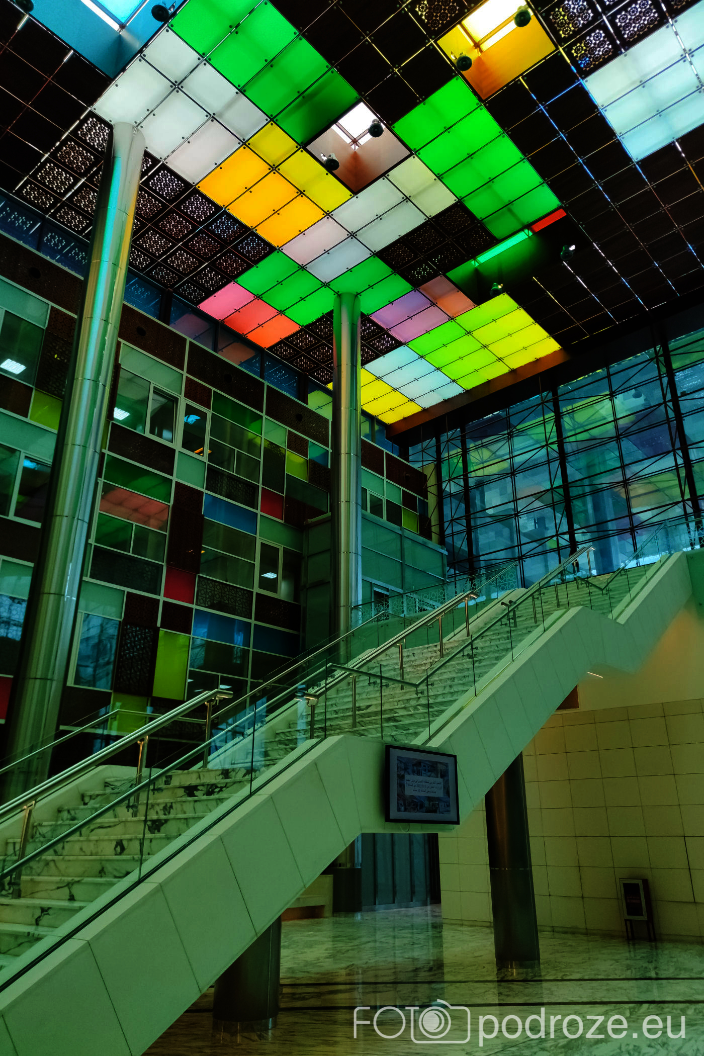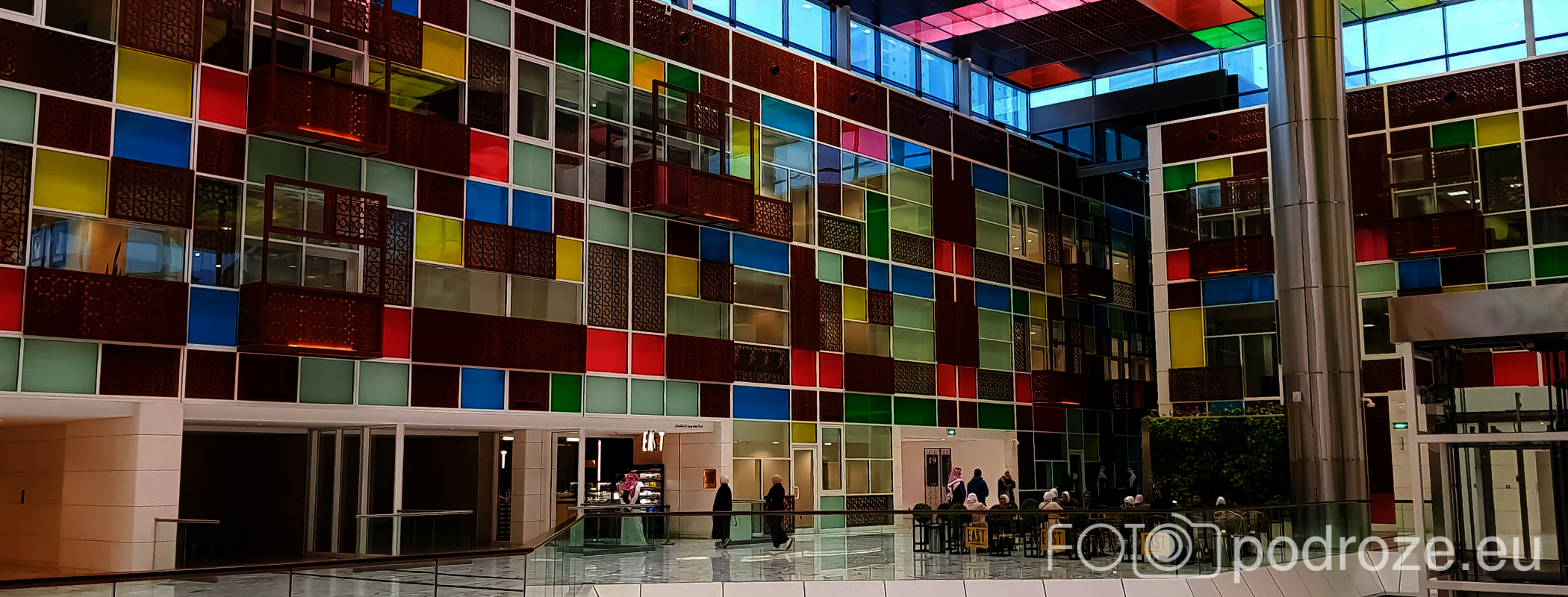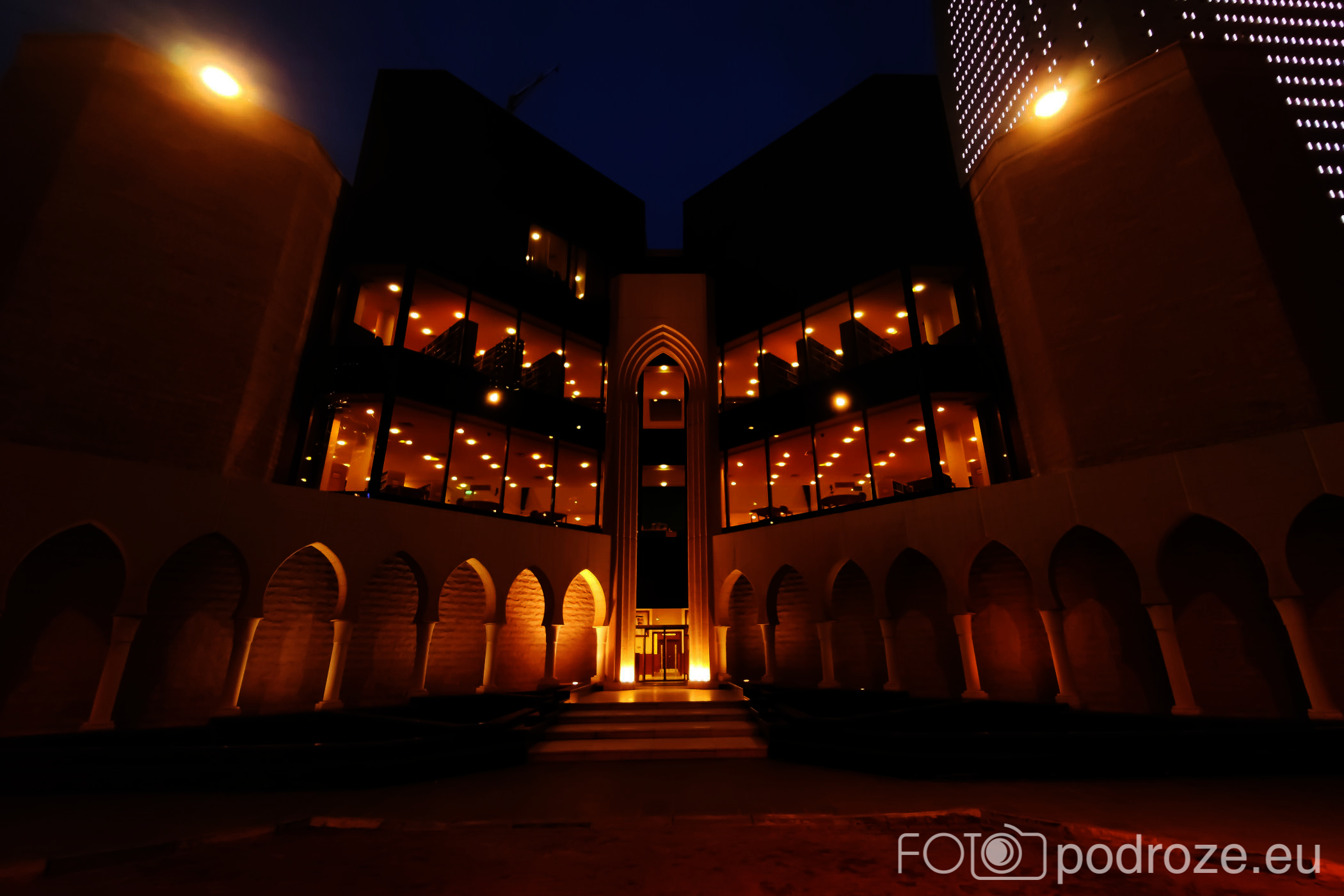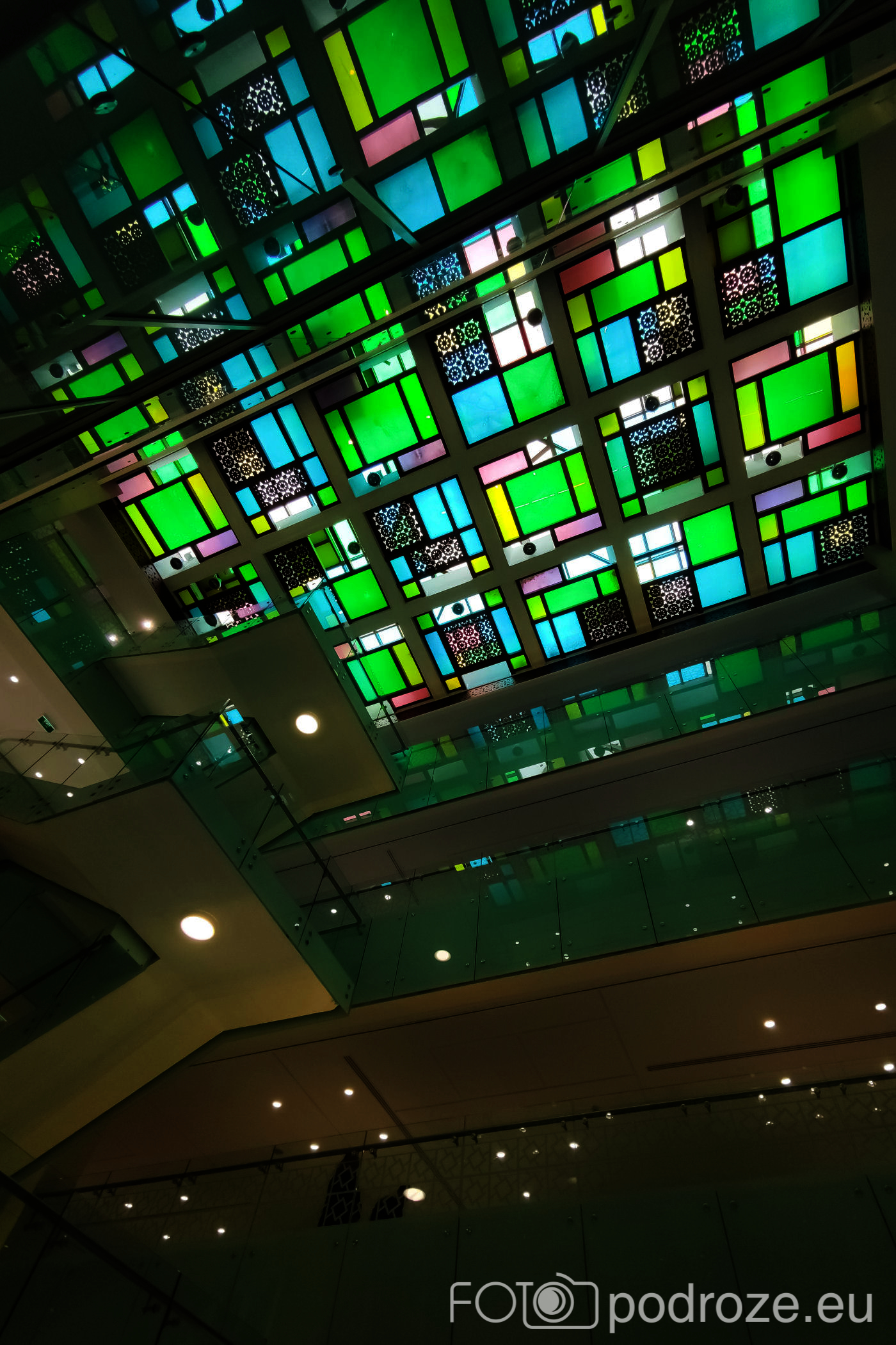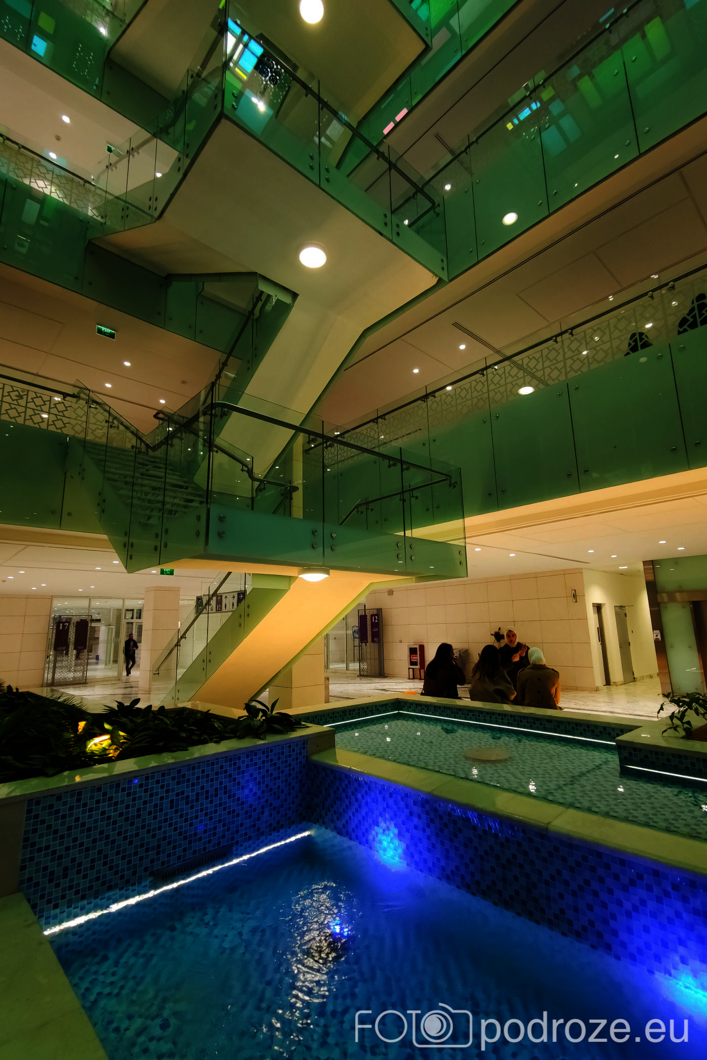 Jeśli będziecie zwiedzać WIELKI MECZET to koniecznie zajrzyjcie do znajdujące się tuż za nim Al-Babtain Library For Arabic Poetry . Wyjątkowo piękny architektonicznie budynek można nawet odwiedzić w środku. We wnętrzach już jednak jest zakaz fotografowania. Nad budynkiem biblioteki góruje wieża Banku Centralnego. Wszystkie obiekty znajdujące się w tym kwartale zasługują więc na uwagę.