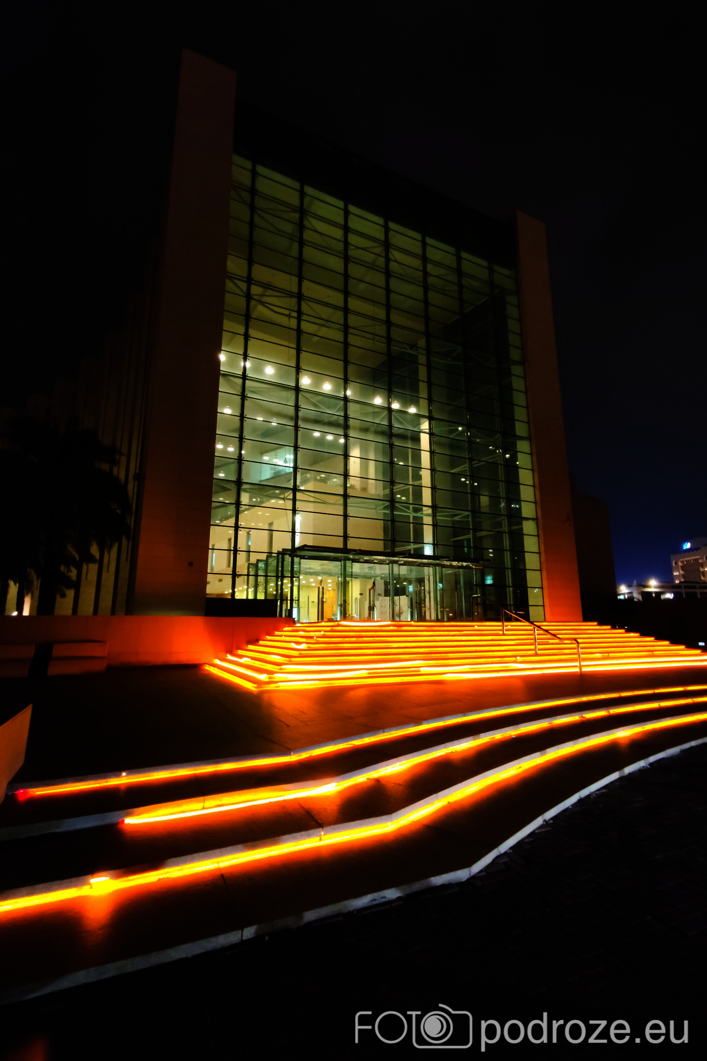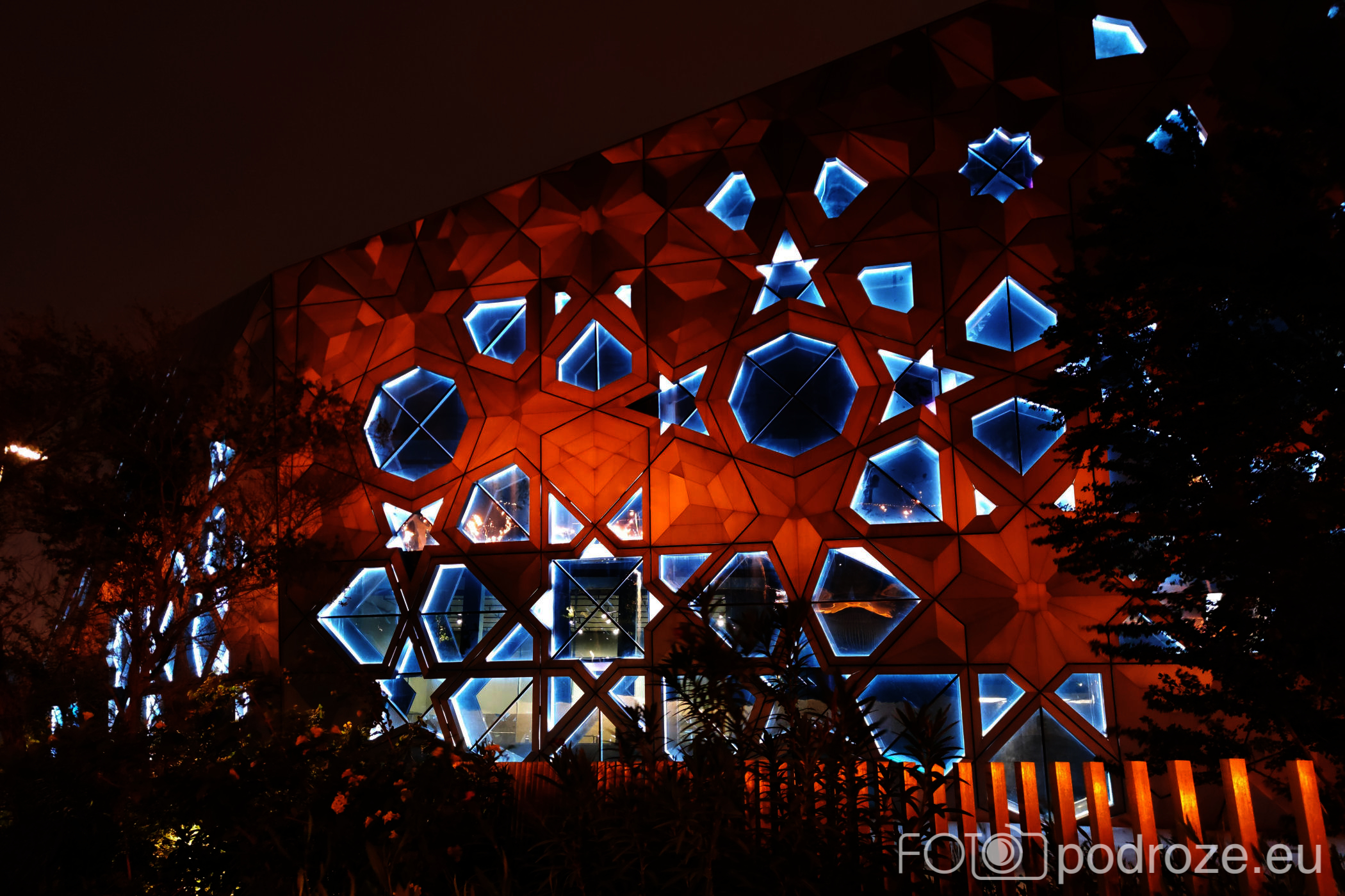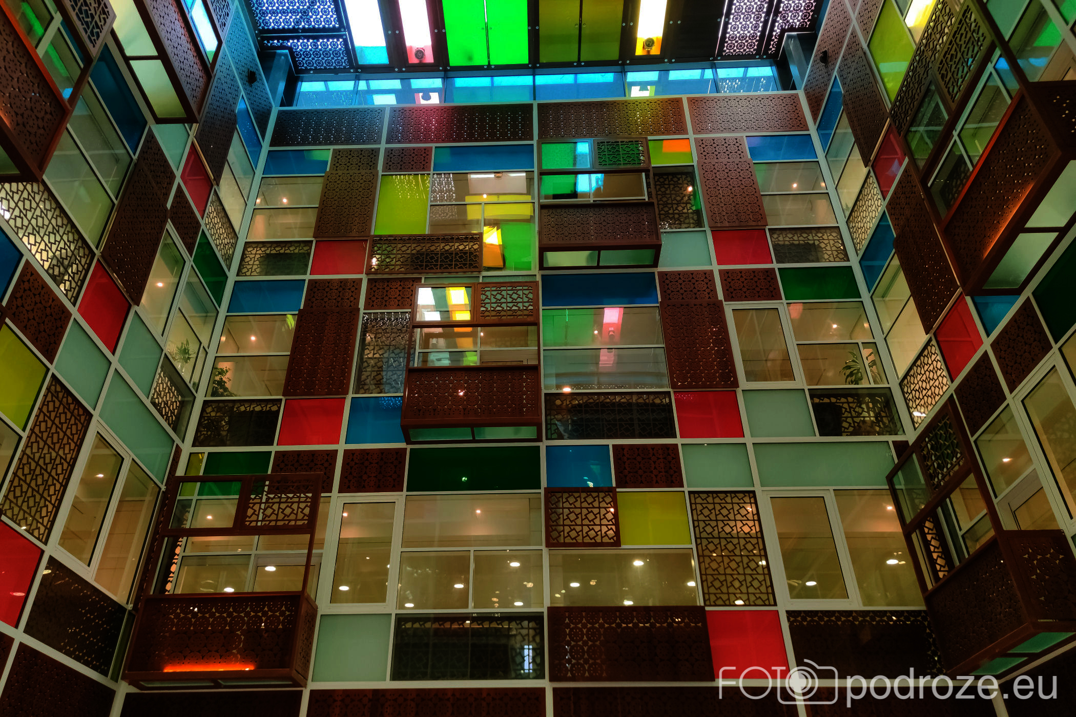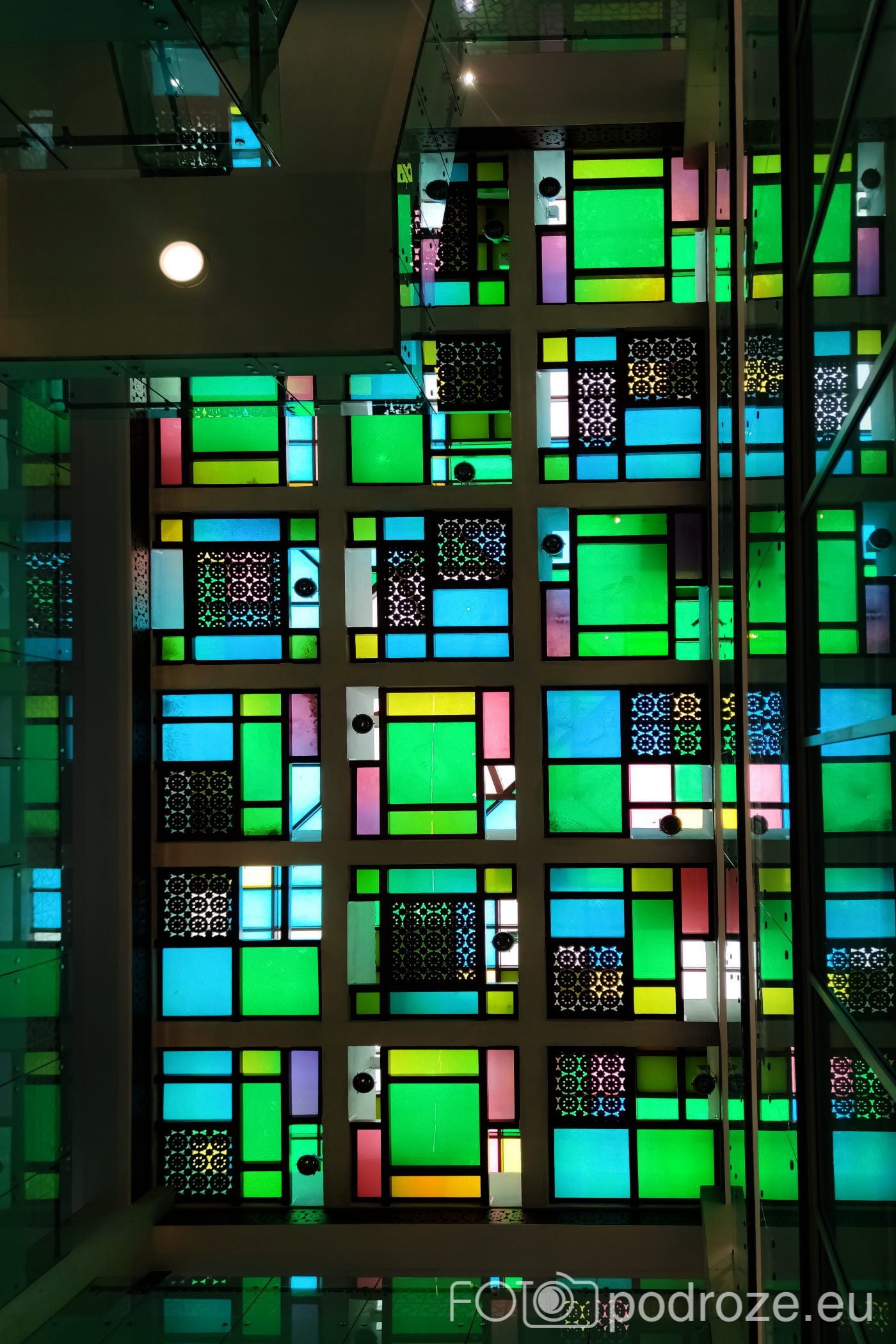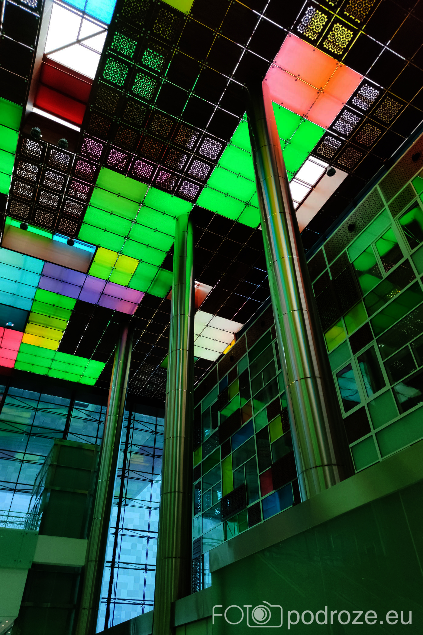 Jeśli będziecie zwiedzać WIELKI MECZET to koniecznie zajrzyjcie do znajdujące się tuż za nim Al-Babtain Library For Arabic Poetry . Wyjątkowo piękny architektonicznie budynek można nawet odwiedzić w środku. We wnętrzach już jednak jest zakaz fotografowania. Nad budynkiem biblioteki góruje wieża Banku Centralnego. Wszystkie obiekty znajdujące się w tym kwartale zasługują więc na uwagę.