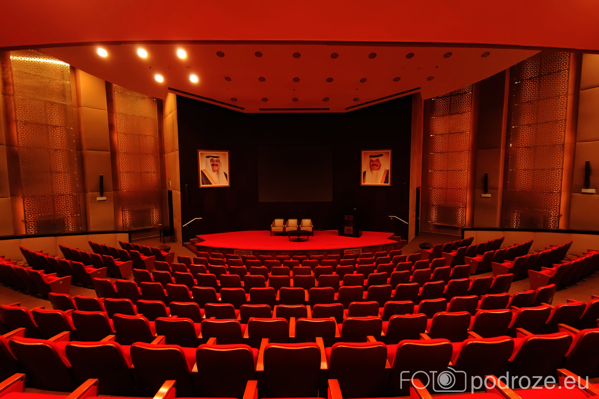 Na stronach centrum możemy poczytać : „Centrum Kultury Szejka Jabera Al-Ahmeda składa się z czterech budynków, pokrytych stalowym szkieletem, otoczonym tytanowo-szklaną powłoką, która przechwytuje światło. Złożone formy geometryczne inspirowane architekturą islamu tworzą bogatą teksturę zewnętrznej powłoki każdego budynku … W foyer znajdują się dekoracyjne kaligrafie w czterech pawilonach, gdzie ponad 8 000 m2 kaligrafii zaprojektowano jako okładziny teatrów, sal koncertowych i bibliotek” . Niestety mimo usilnych prób nie udało nam się tego zobaczyć .