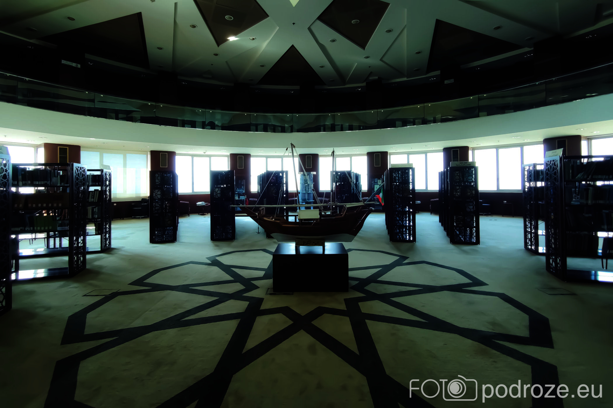 Chodząc po wnętrzach biblioteki w pewnym momencie trafiliśmy na ochroniarza, który zachęcił nas do wejścia do jednej sali w której znajdował się model łodzi. Okazało się, że w sali jest kilka osób, w tym Pan Profesor, który był głównym motywatorem i założycielem biblioteki. Poznaliśmy też jego sympatyczną żonę i dwie pracujące w bibliotece Kuwejtki . Wyszliśmy stamtąd po godzinie ciekawej rozmowy.