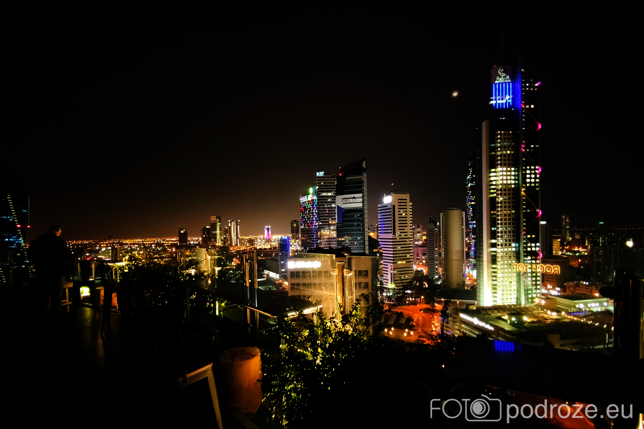 Kuwejcka stolica nie ma ogólnodostępnych punktów widokowych po za WIEŻAMI KUWEJCKIMI . Mieliśmy jednak to szczęście, że na dachu naszego hotelu Ramada Encore by Wyndham Kuwait Downtown znajdowała się kawiarnia z takimi widokami :