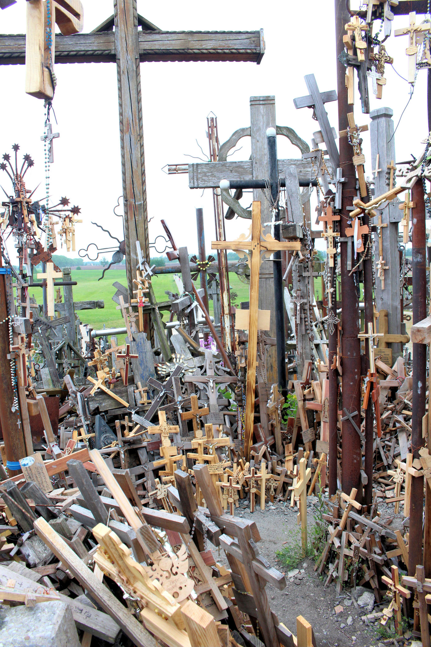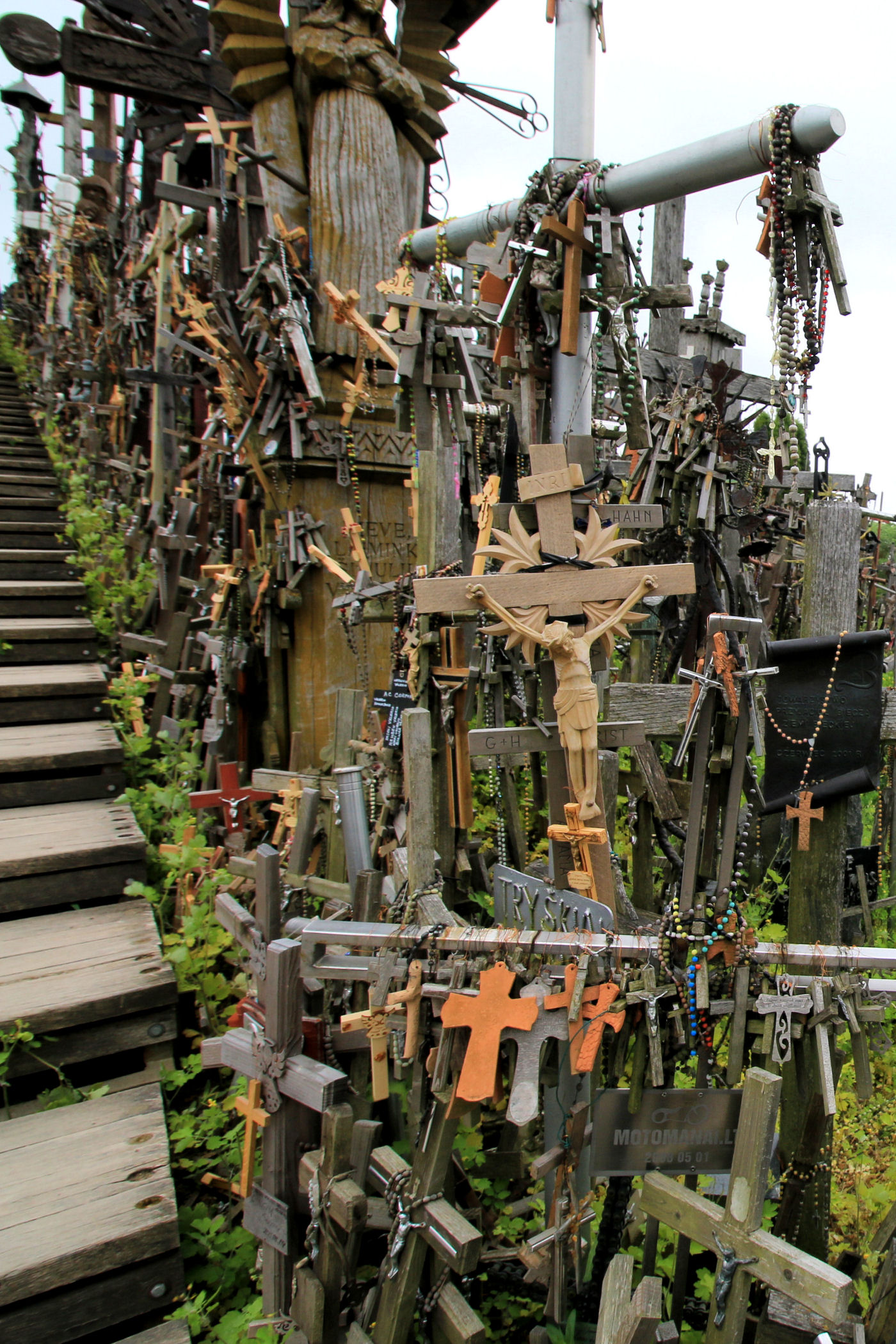 Góra Krzyży Szawle to niewielkie wzgórze położone kilkanaście kilometrów na północ od Szawli na Litwie. My trafiamy tu w drodze z Łotwy podczas deszczu lodowatego wiatru. Niesprzyjająca zwiedzaniu aura sprawia, że miejsce to robi na nas dziwne wrażenie i wzbudza mieszane uczucia. Jest troszkę dziwnie, trochę kiczowato, ciężko określić te mieszane uczucia.