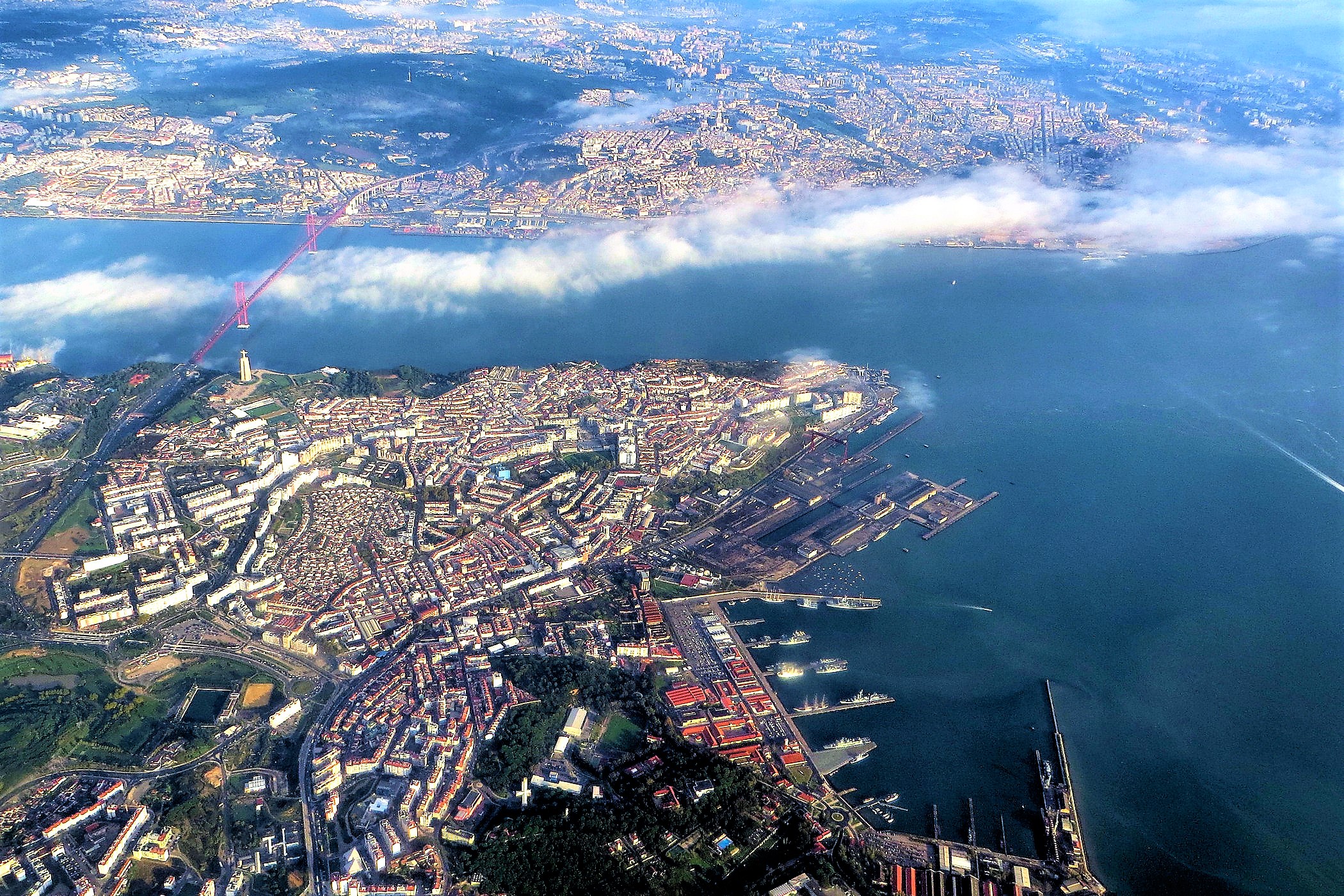 Z góry Lizbona odsłania swoje prawdziwe oblicze – miasto światła, wzgórz i kolorowych dachów. Rozciągnięta nad brzegiem Tagu, pełna kontrastów i rytmu, zachwyca harmonią między historią a nowoczesnością. Z lotu ptaka widać wijące się wąskie uliczki Alfamy, elegancką geometrię Baixy, majestatyczny Most 25 Kwietnia przypominający Golden Gate i futurystyczne linie Parque das Nações.