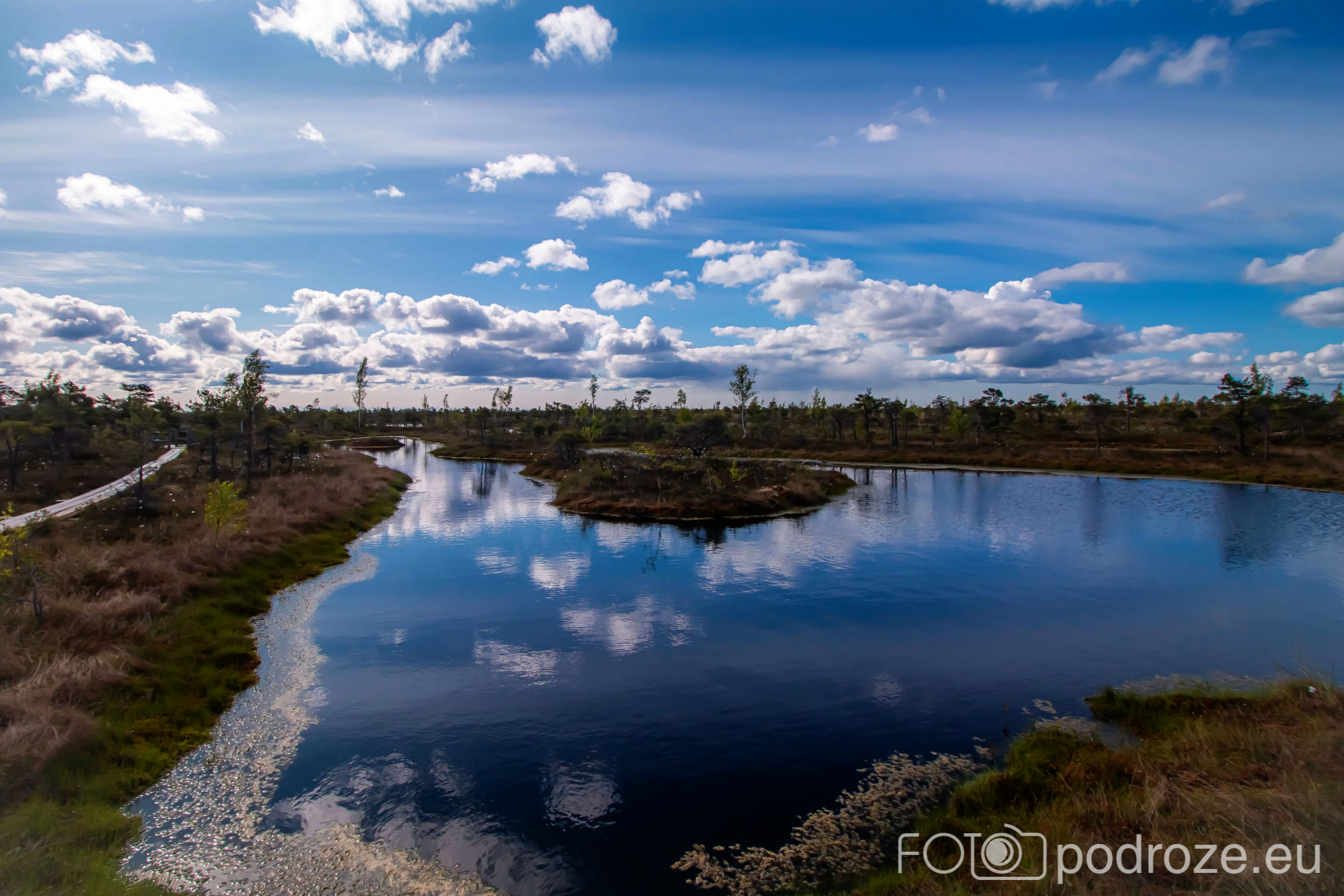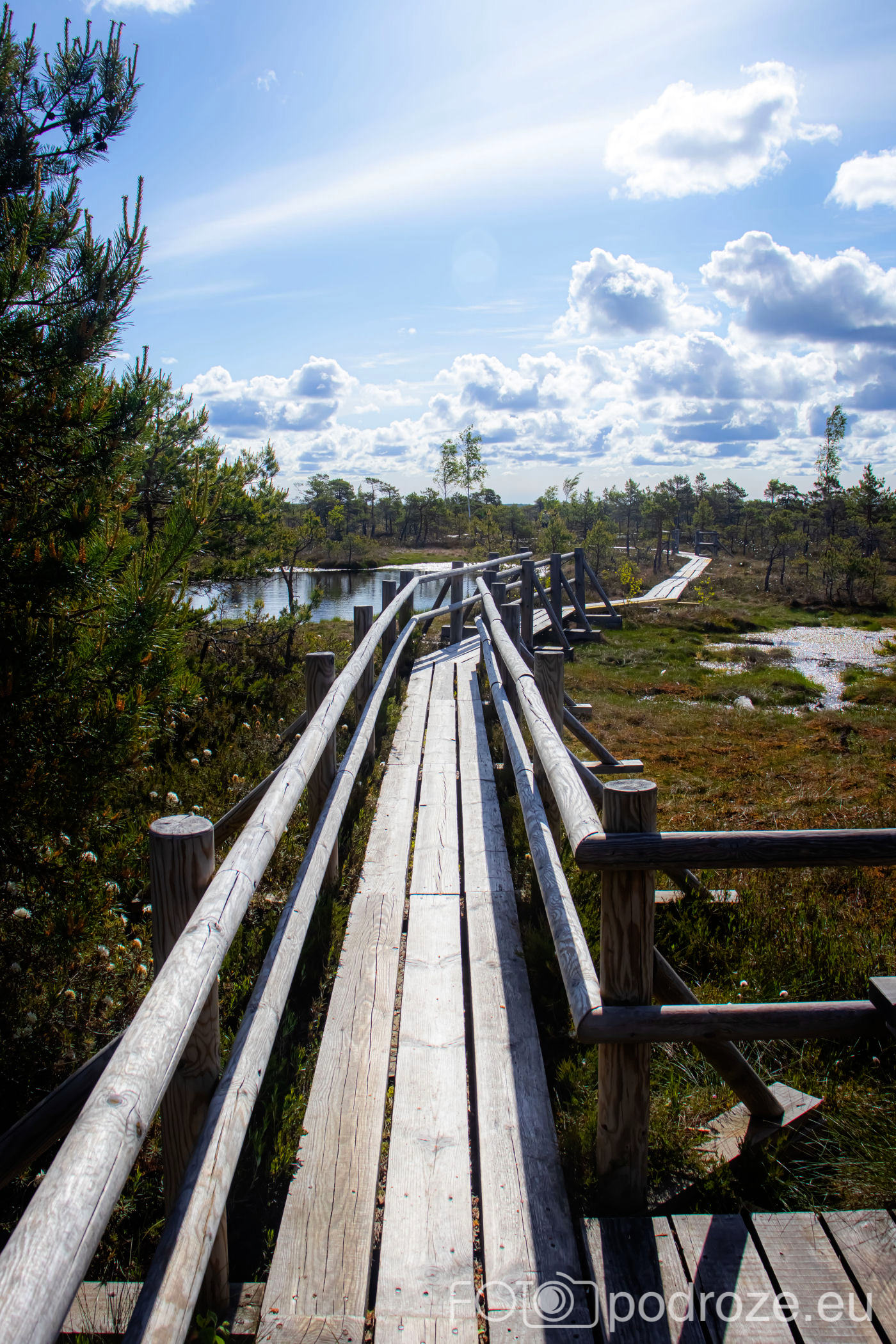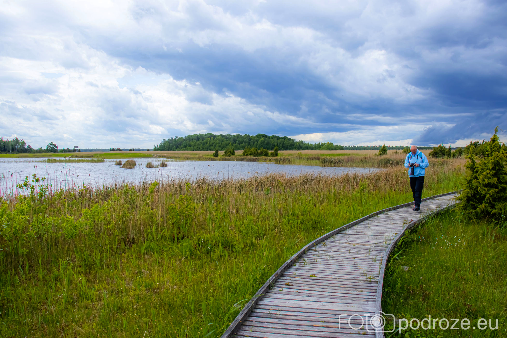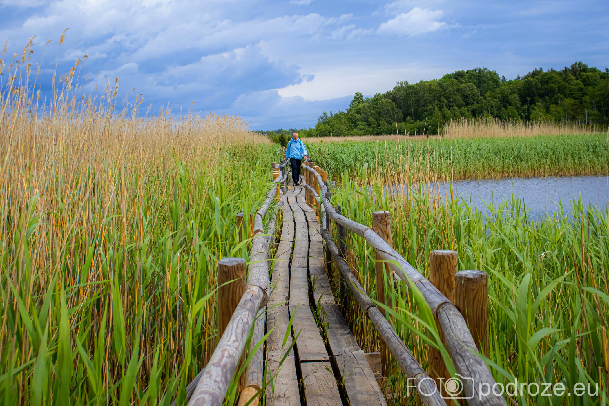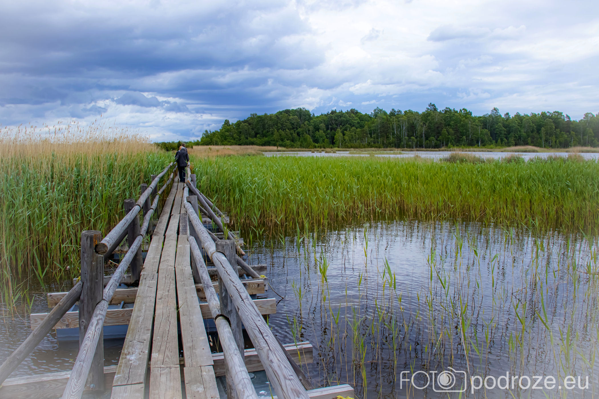 Tuż za parkingiem zaczyna się szlak, początkowo prowadzi przez las, by kilkaset metrów dalej wprowadzić nas na otwarta przestrzeń i drewnianą promenadę. Początkowo stabilna, ale jak wchodzimy na otwartą wodę zaczyna się kołysząca kładka oparta na pływających pontonach. Kładka ta łączy dwie wyspy, możemy dzięki niej dotrzeć w miejsca niedostępne suchą nogą. Długość tej promenady wynosi około 600m, i prowadzi przez wysokie zarośla, a krajobraz jest wręcz bajkowy.