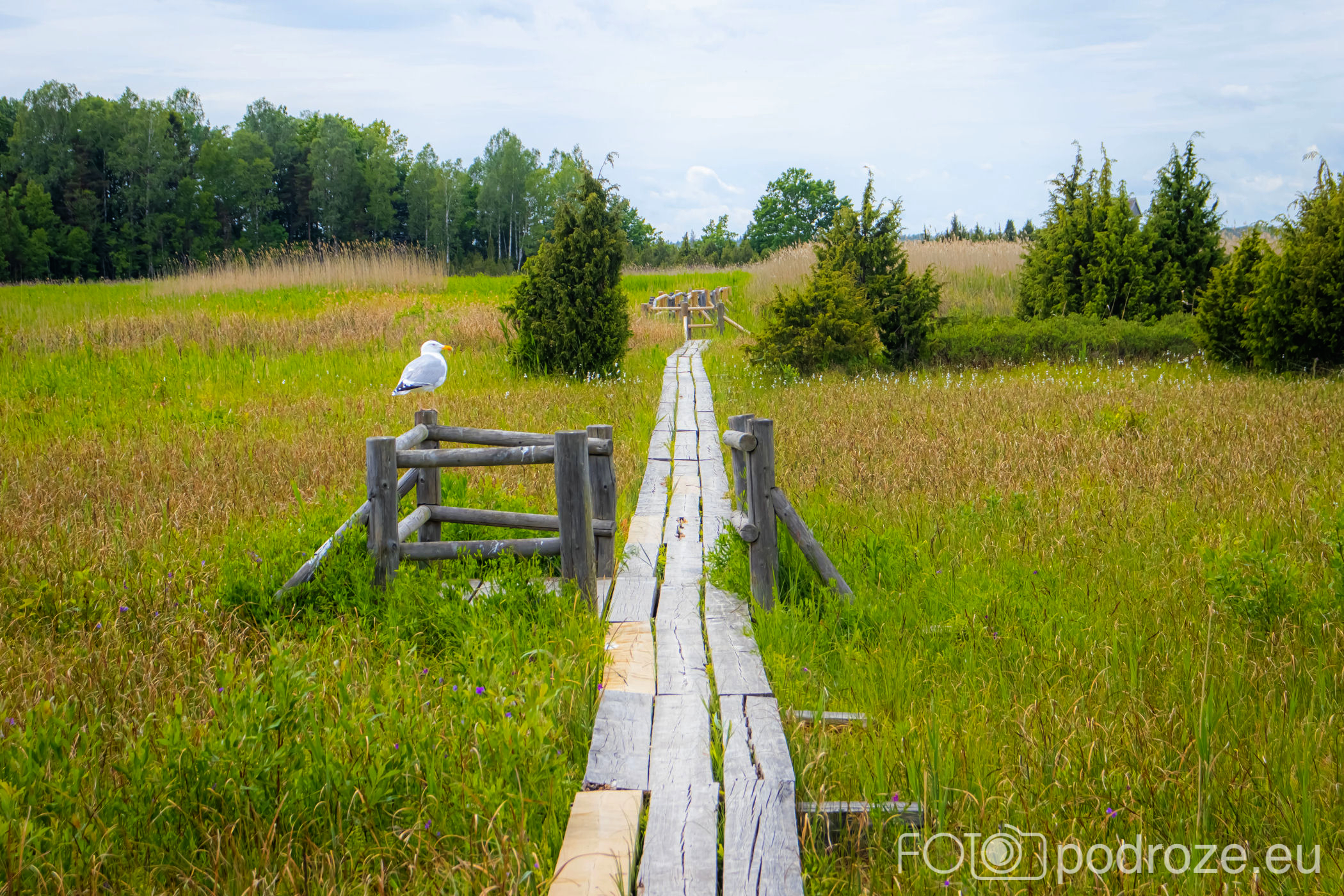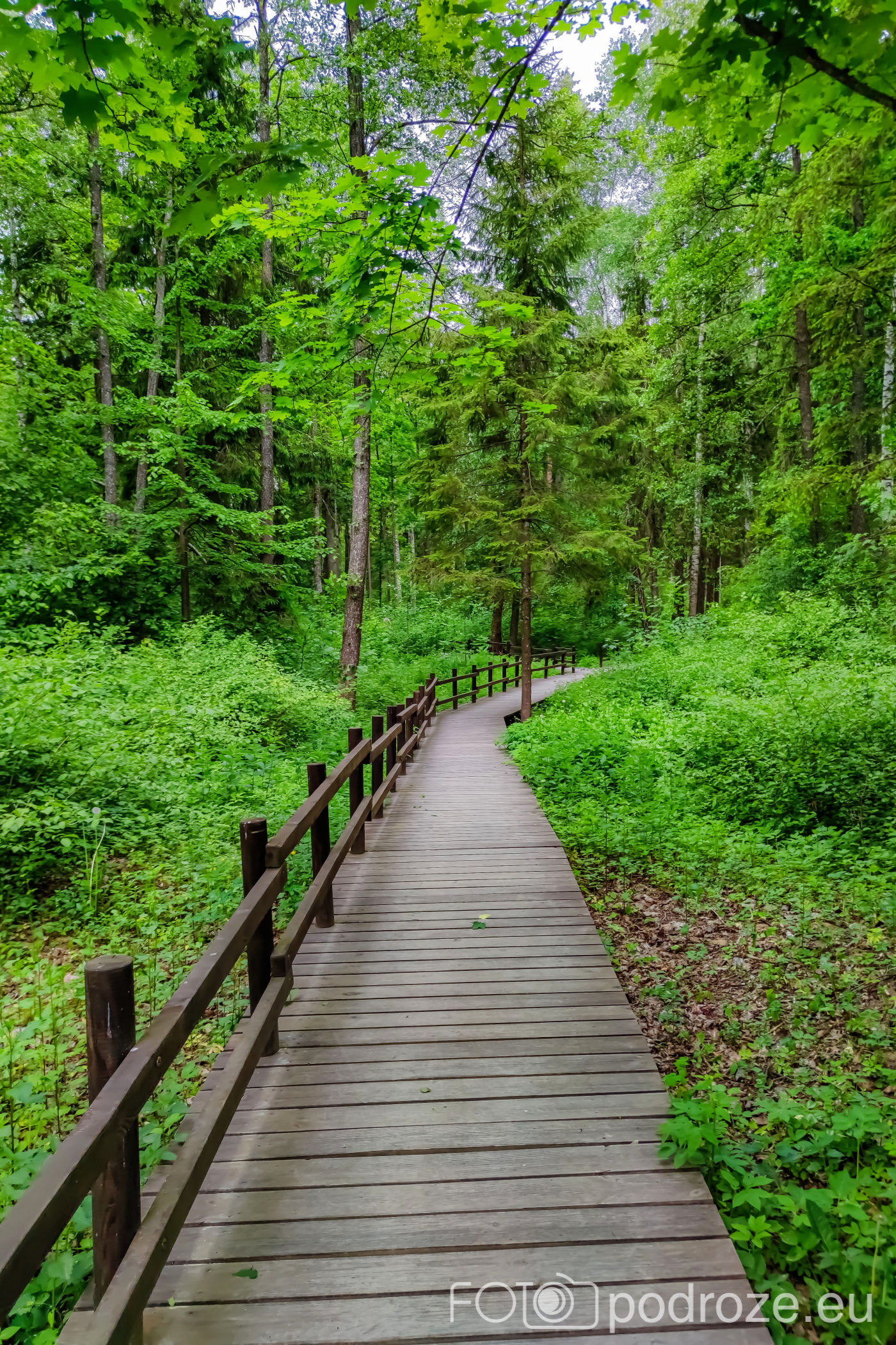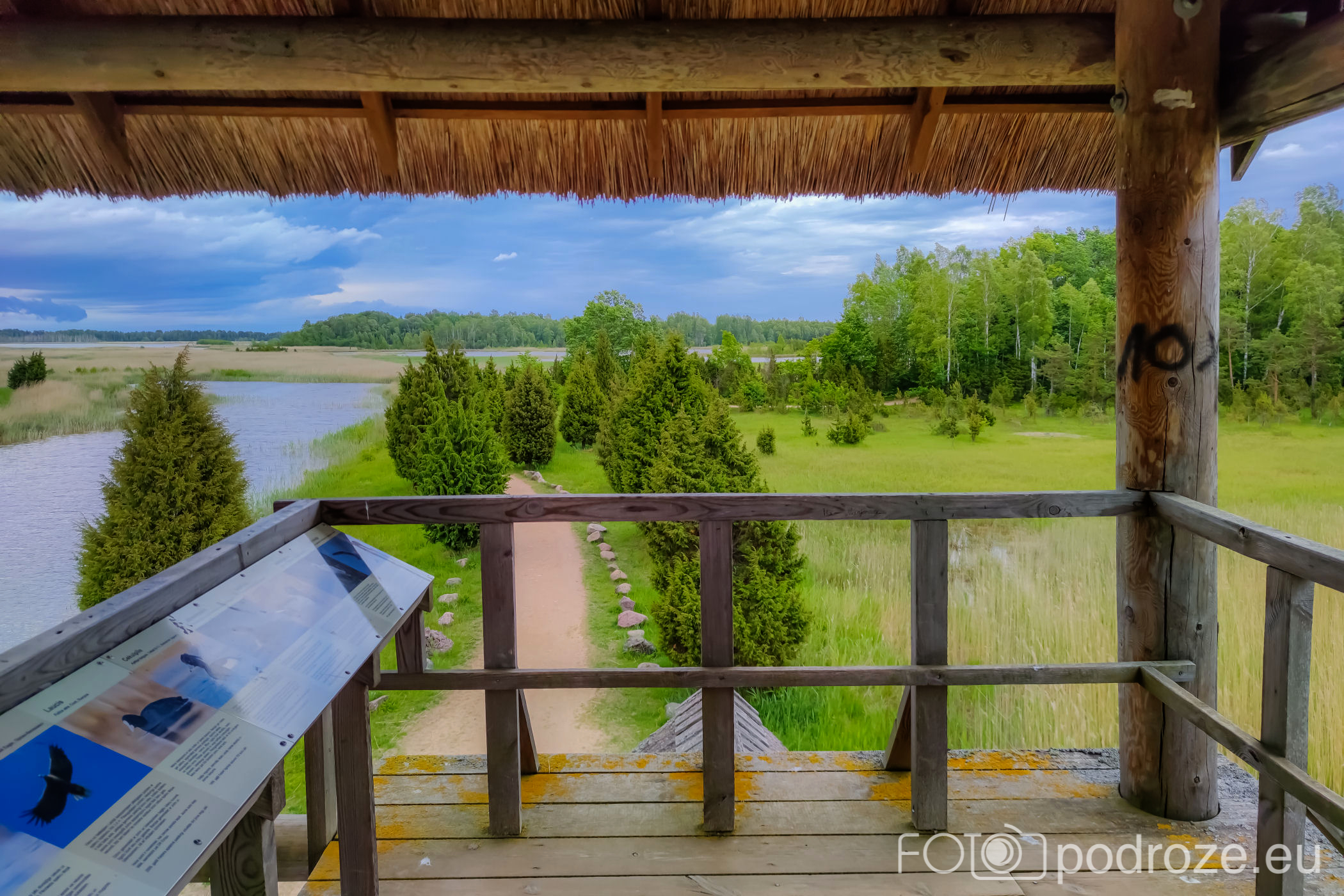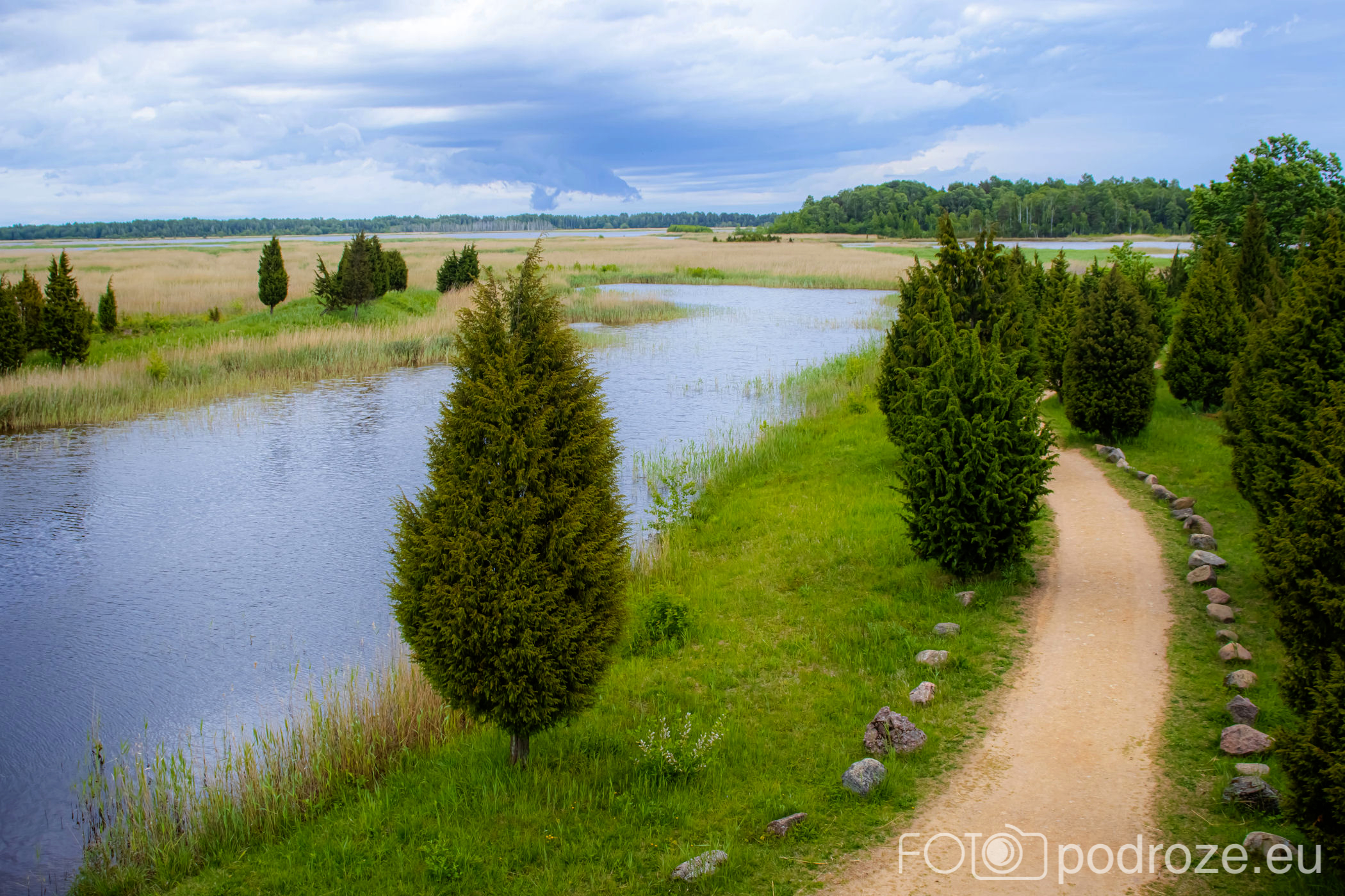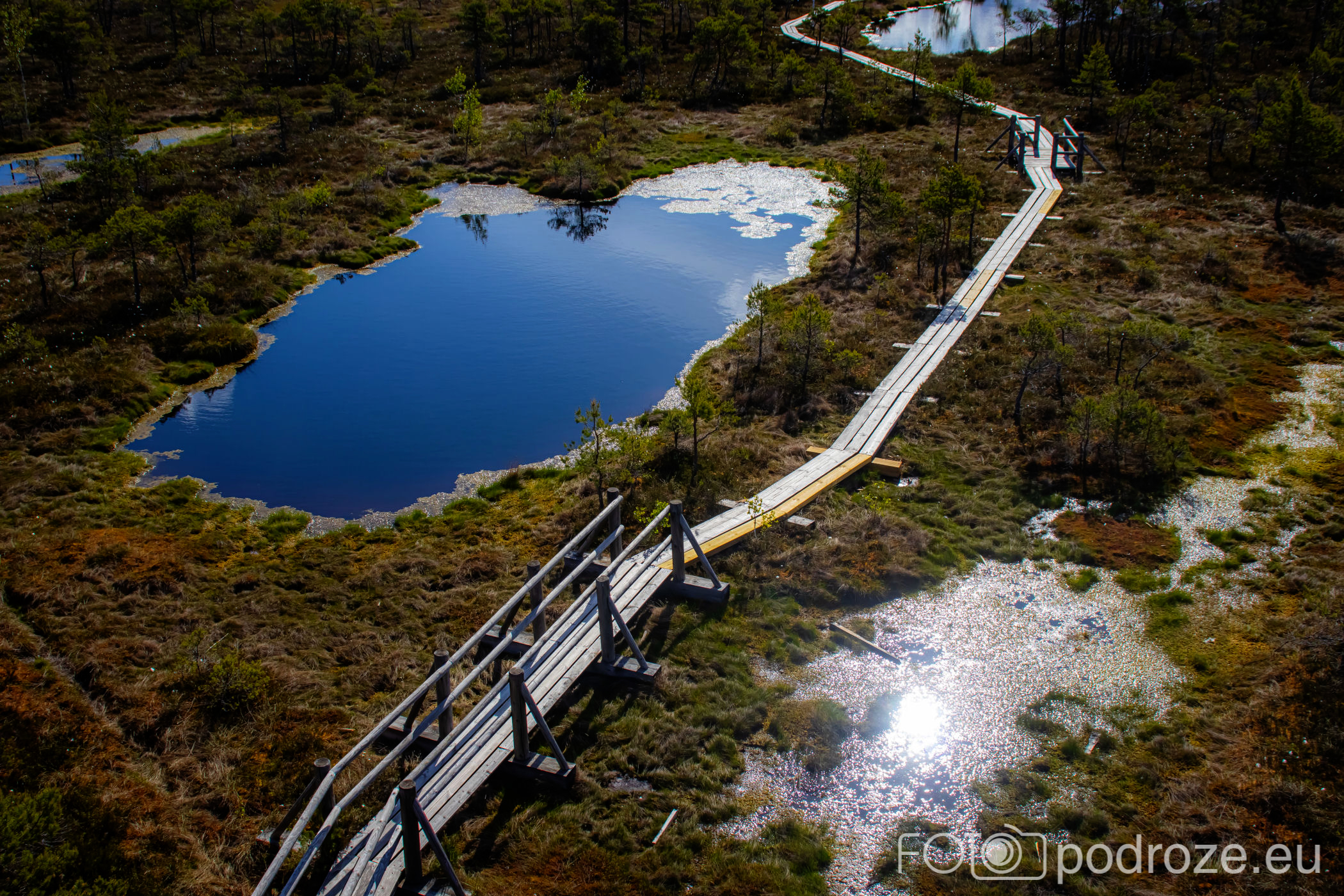 Tuż za parkingiem zaczyna się szlak, początkowo prowadzi przez las, by kilkaset metrów dalej wprowadzić nas na otwarta przestrzeń i drewnianą promenadę. Początkowo stabilna, ale jak wchodzimy na otwartą wodę zaczyna się kołysząca kładka oparta na pływających pontonach. Kładka ta łączy dwie wyspy, możemy dzięki niej dotrzeć w miejsca niedostępne suchą nogą. Długość tej promenady wynosi około 600m, i prowadzi przez wysokie zarośla, a krajobraz jest wręcz bajkowy.