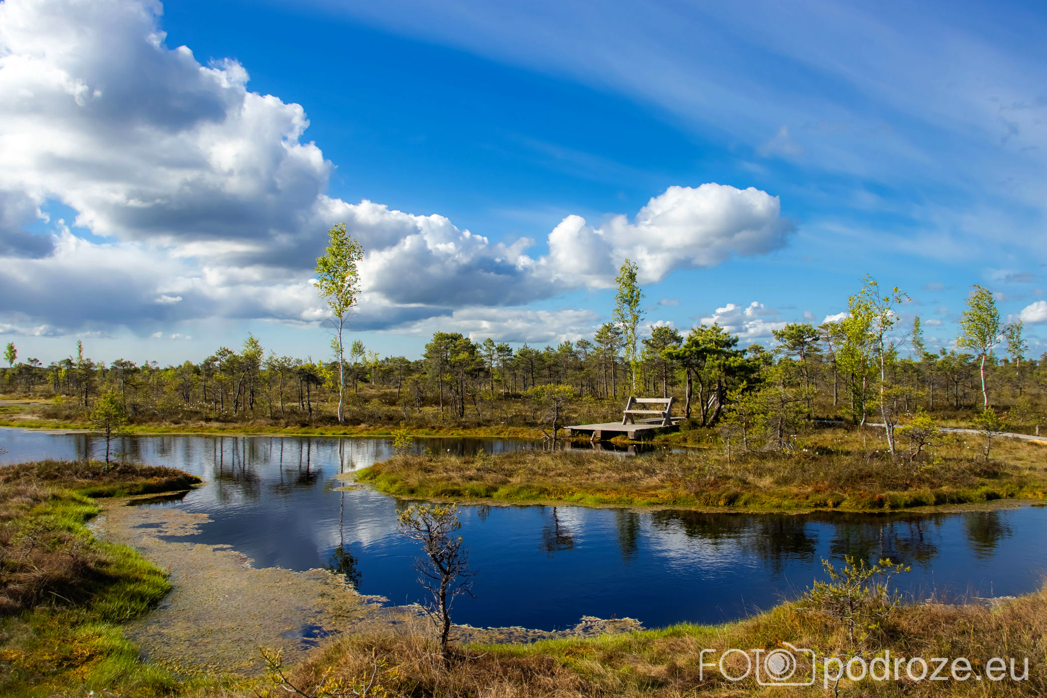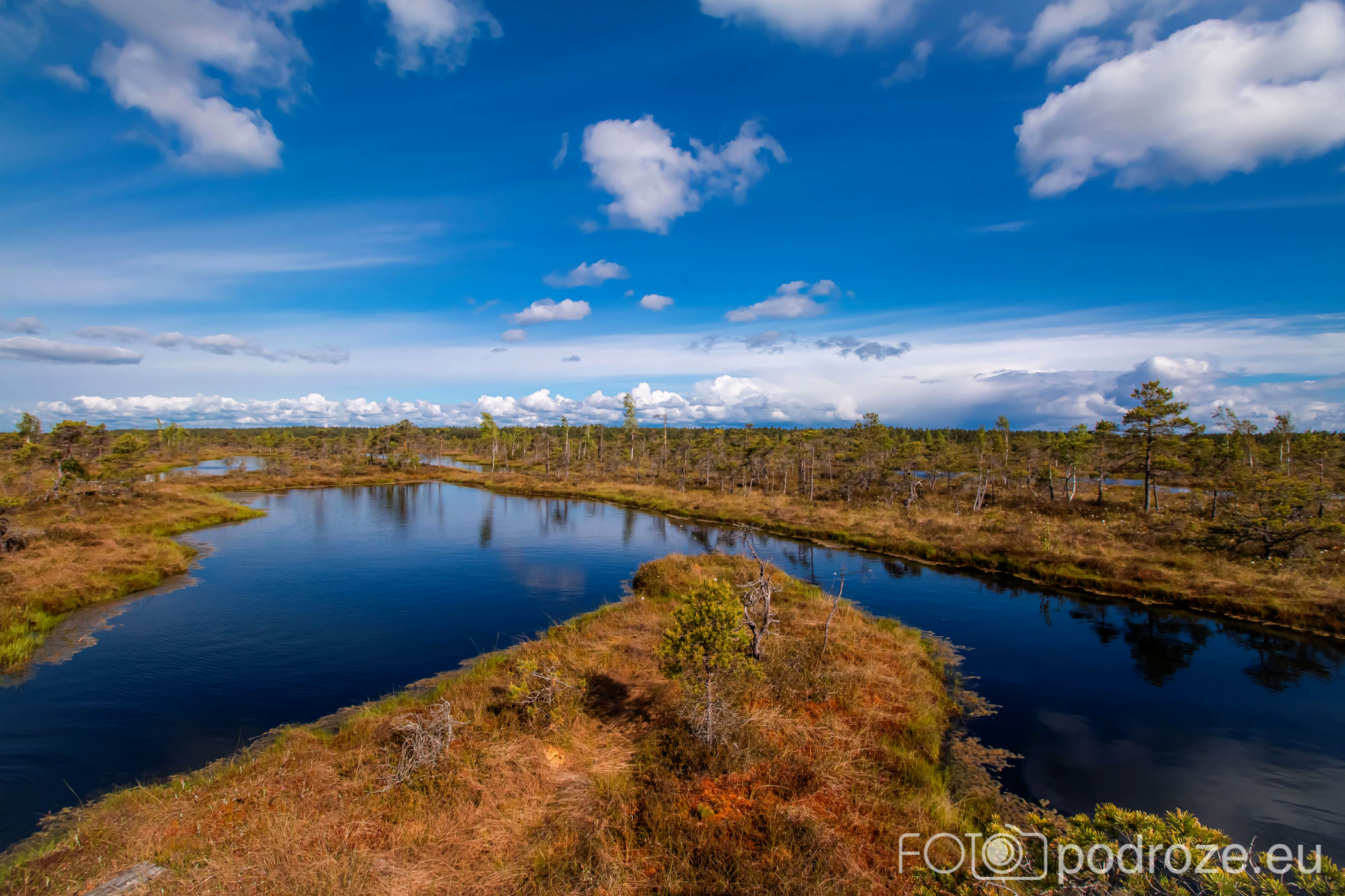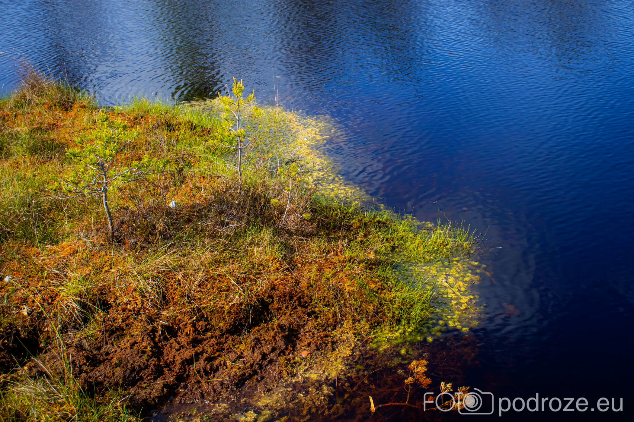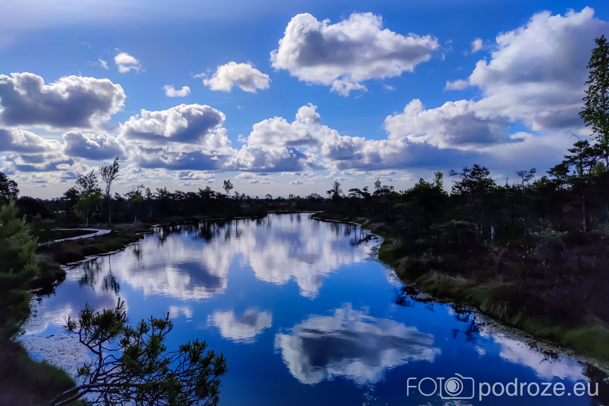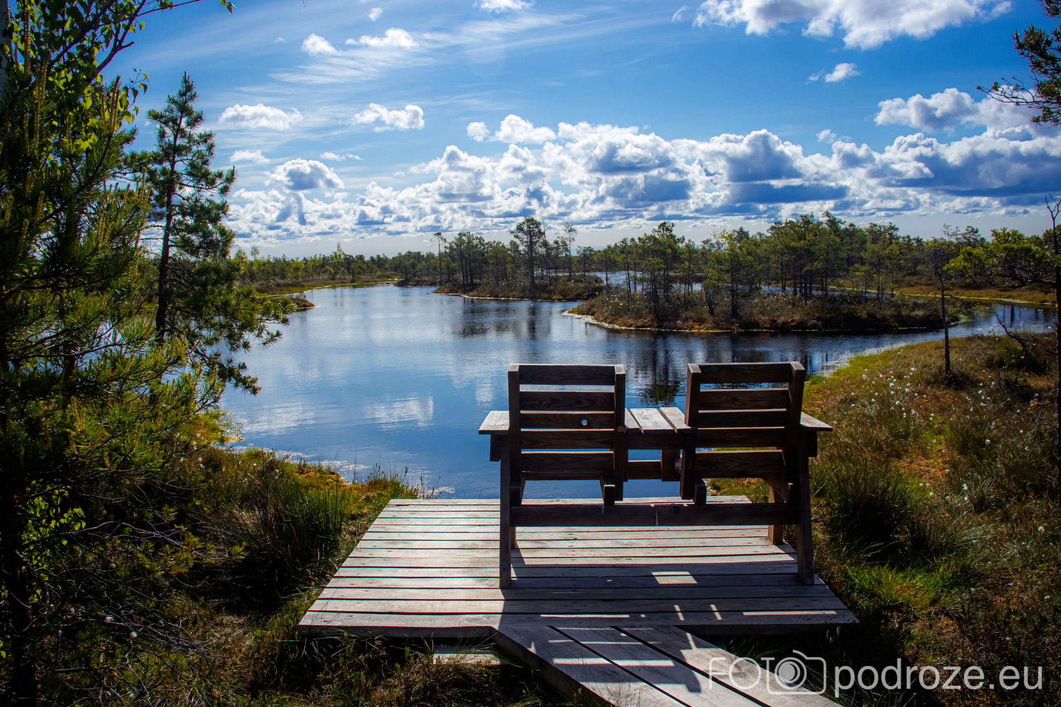 Tuż za parkingiem zaczyna się szlak, początkowo prowadzi przez las, by kilkaset metrów dalej wprowadzić nas na otwarta przestrzeń i drewnianą promenadę. Początkowo stabilna, ale jak wchodzimy na otwartą wodę zaczyna się kołysząca kładka oparta na pływających pontonach. Kładka ta łączy dwie wyspy, możemy dzięki niej dotrzeć w miejsca niedostępne suchą nogą. Długość tej promenady wynosi około 600m, i prowadzi przez wysokie zarośla, a krajobraz jest wręcz bajkowy.