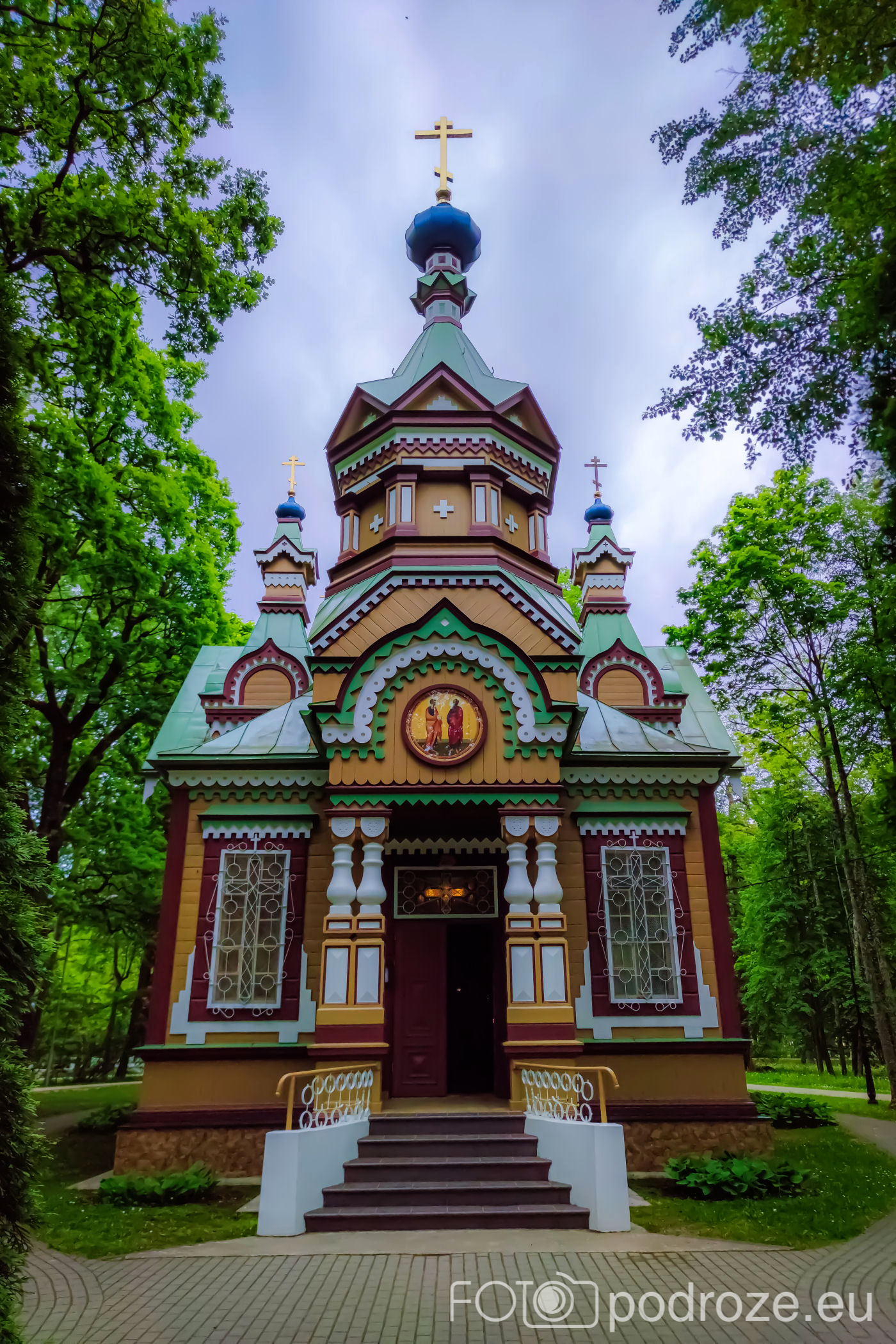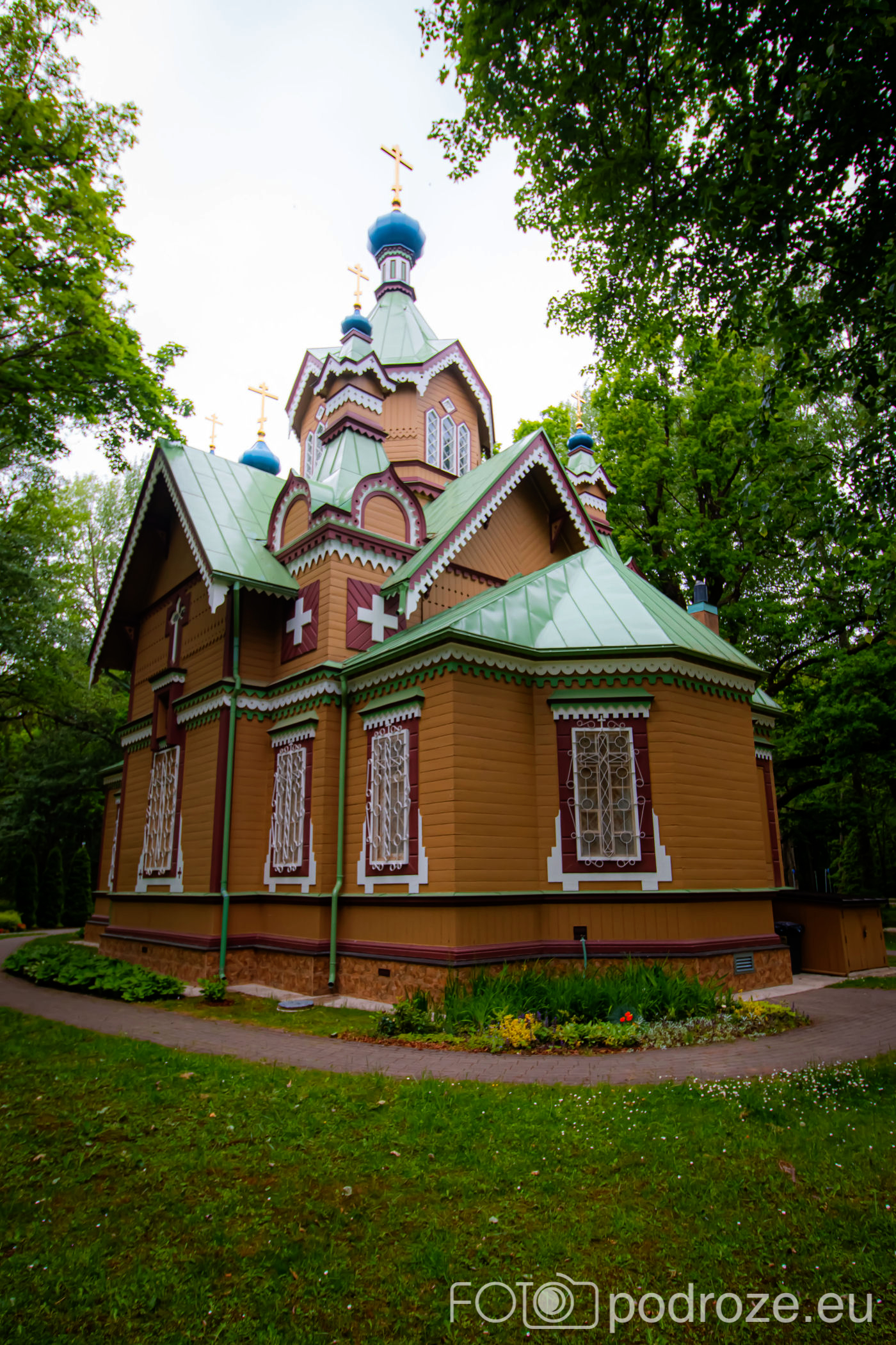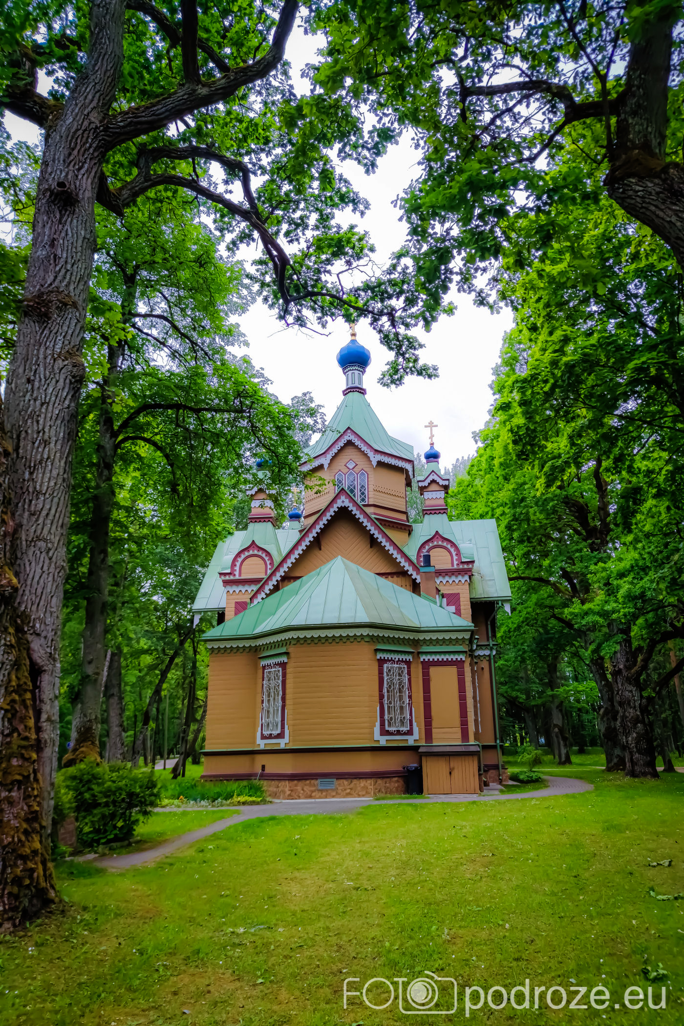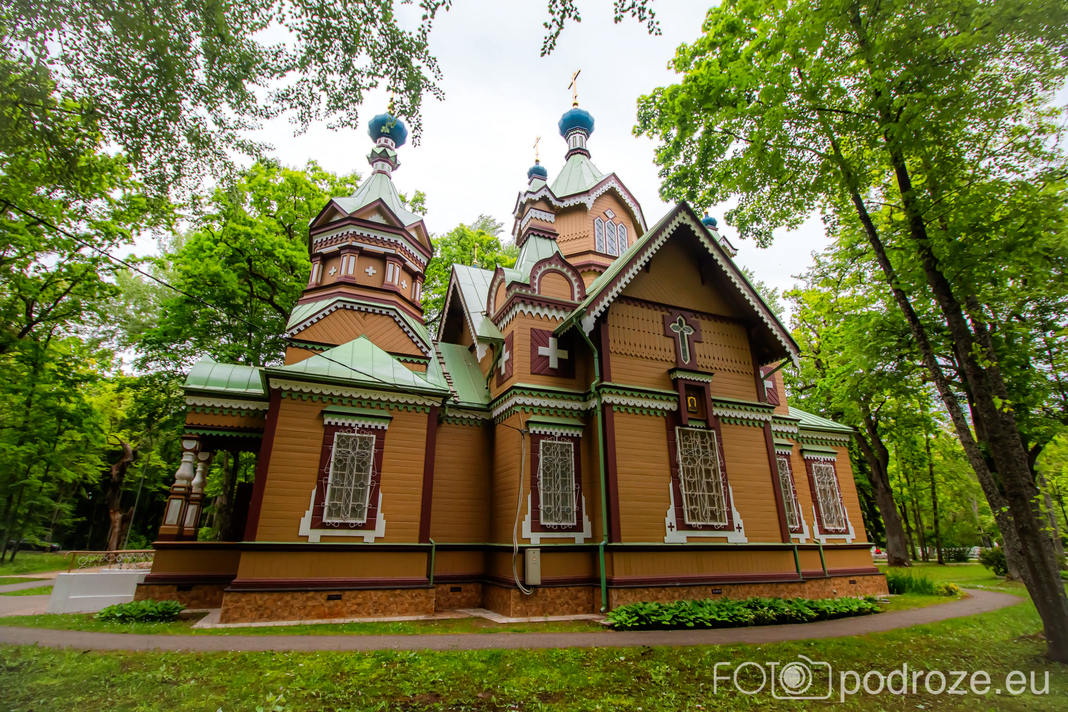 Kawałek za wysepką miłości znajduje się rosyjska cerkiew prawosławna Świętych Apostołów Piotra i Pawła. To najstarsza z cerkwi w Kemeri, zbudowana w 1893 roku, w stylu drewnianych cerkwi typowych dla północnej Rosji tych czasów. Jest wyjątkowo kolorowa zarówno z zewnątrz, jak i wewnątrz, do tego cudownie wpisana w zieleń otaczającego ją parku.