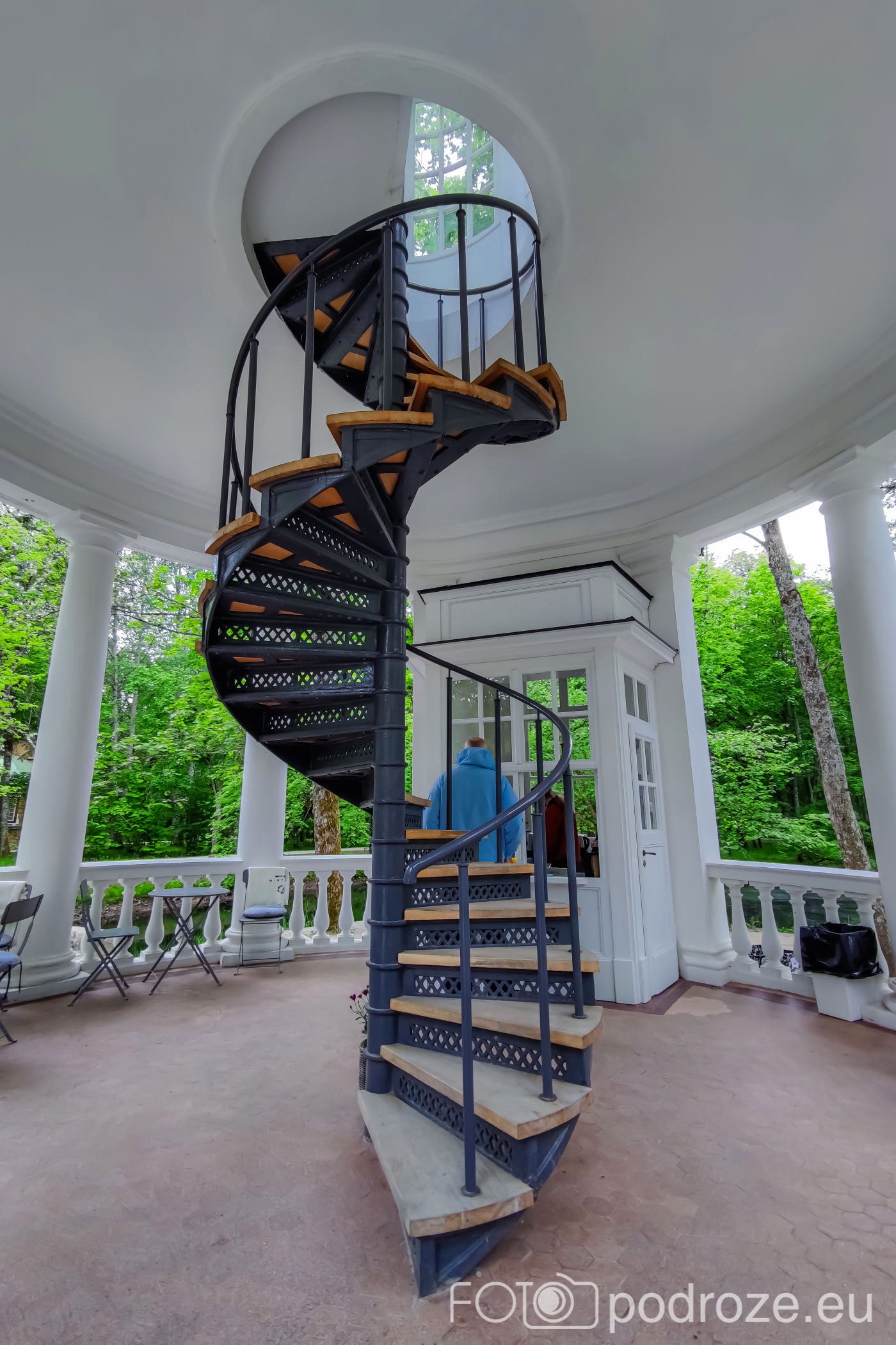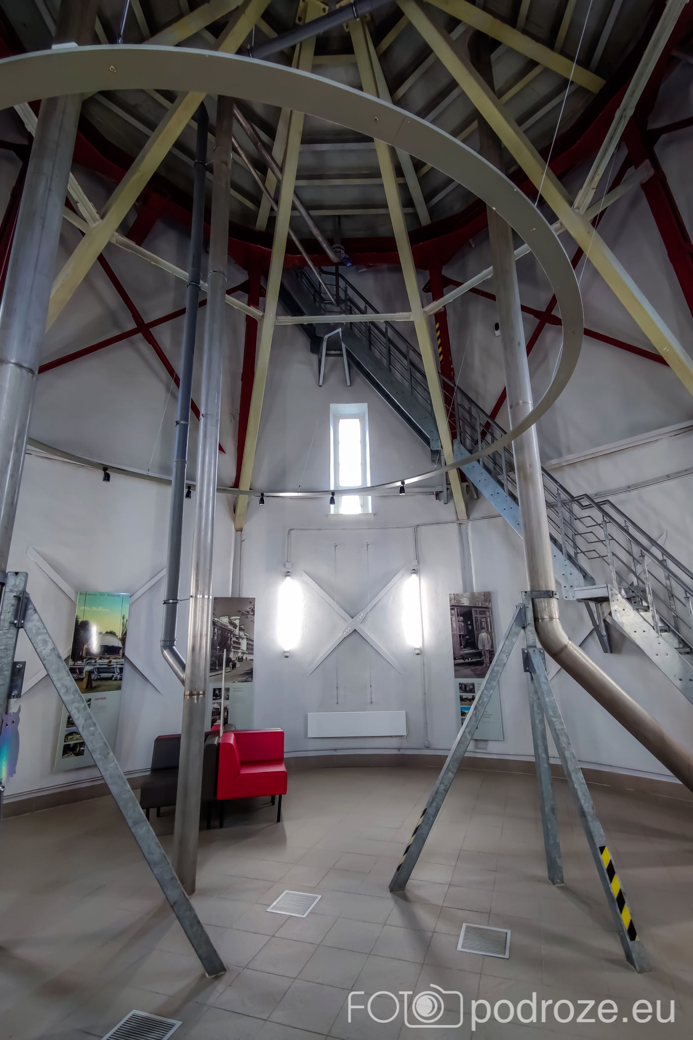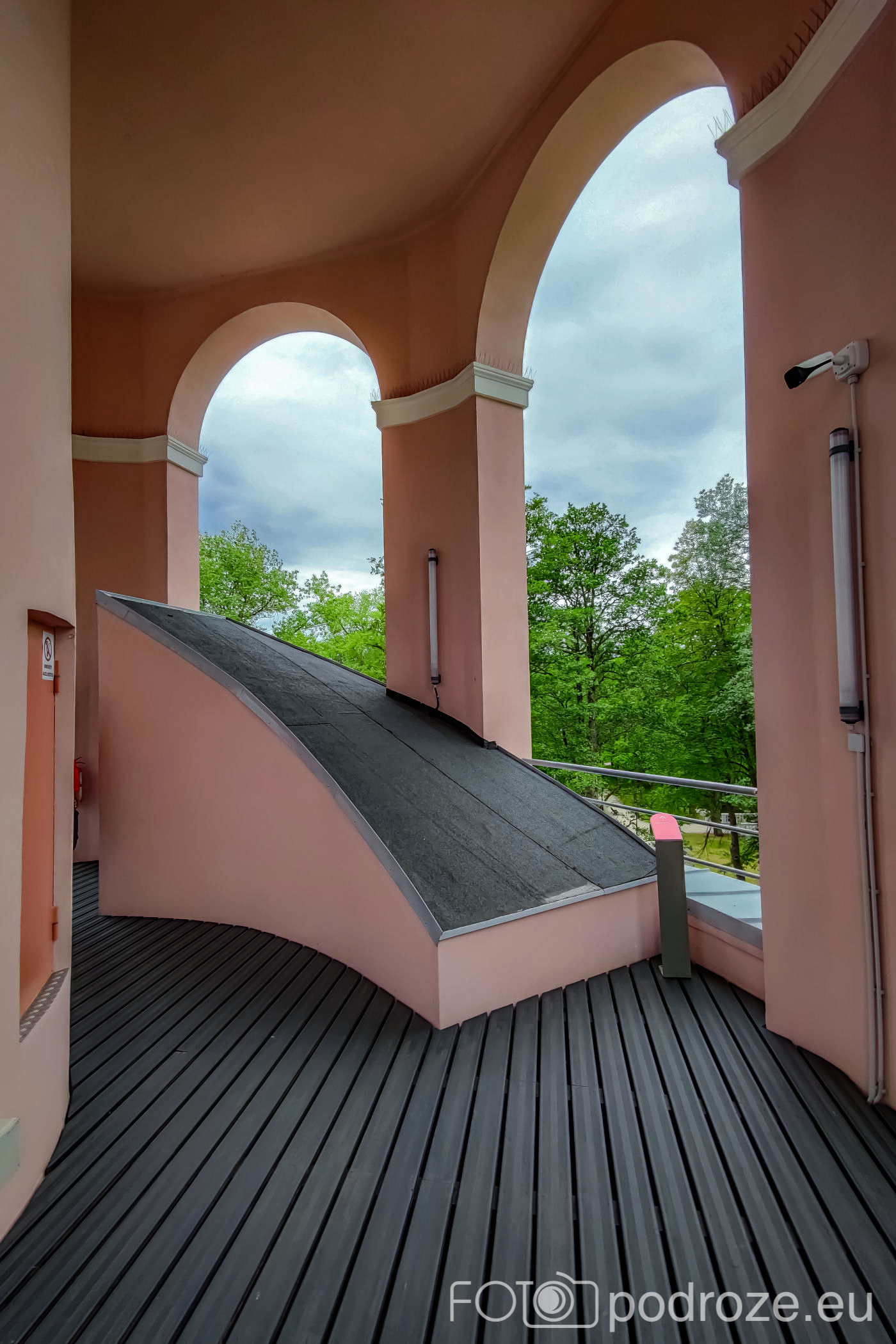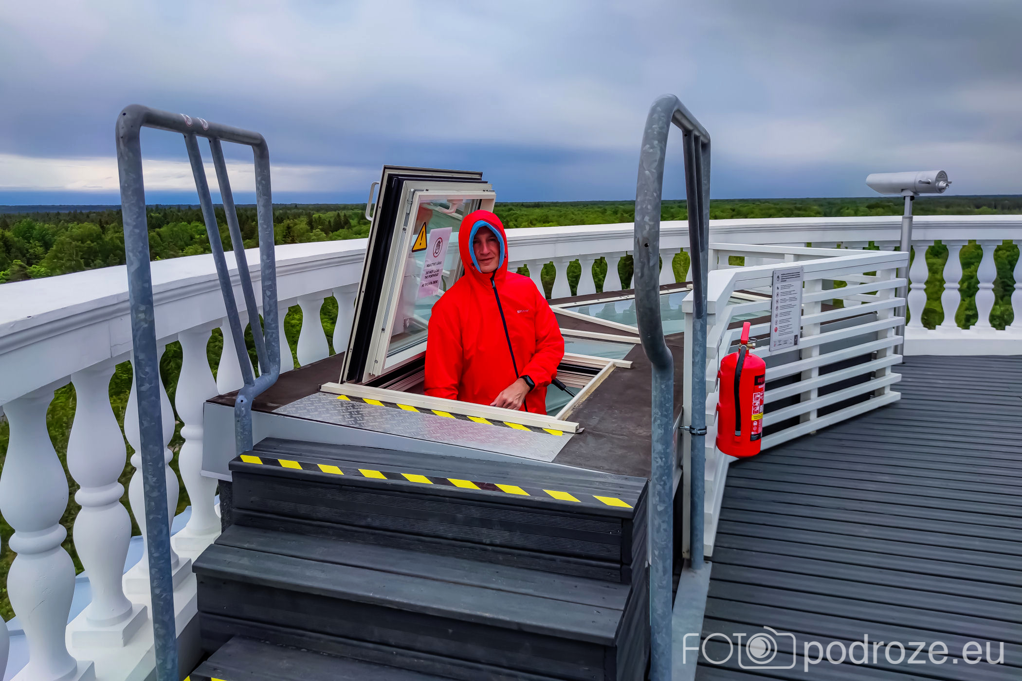 - wejście jest po stromych metalowych schodkach (bardzo wąskich, wyjście na taras górny przez drabinkę i wyłaz dachowy), nie jest to więc wieża dla każdego.