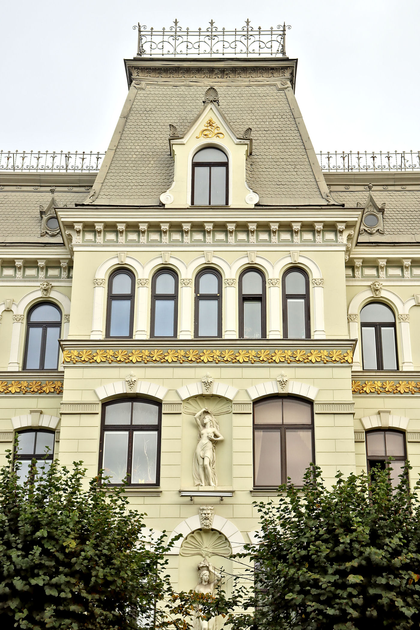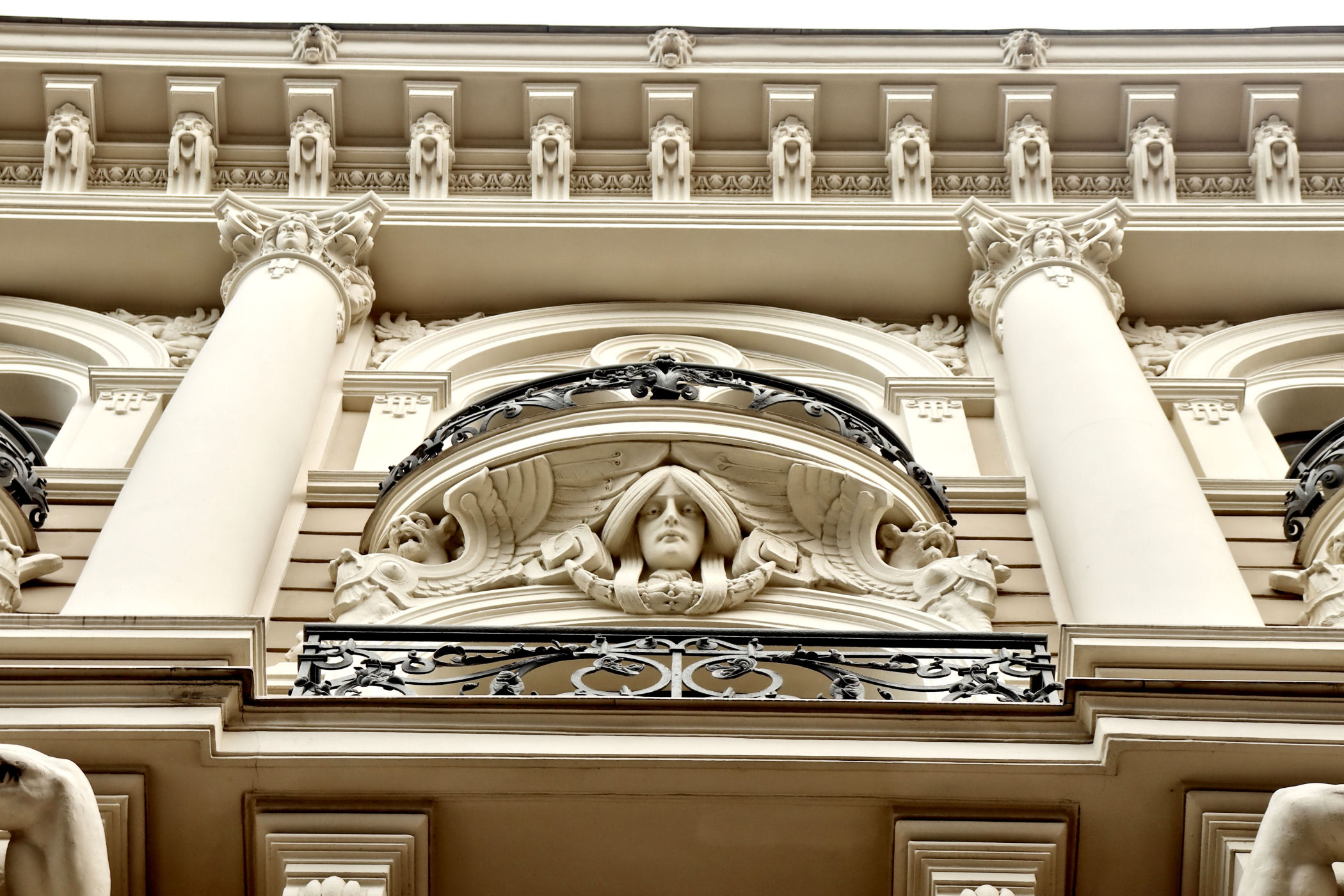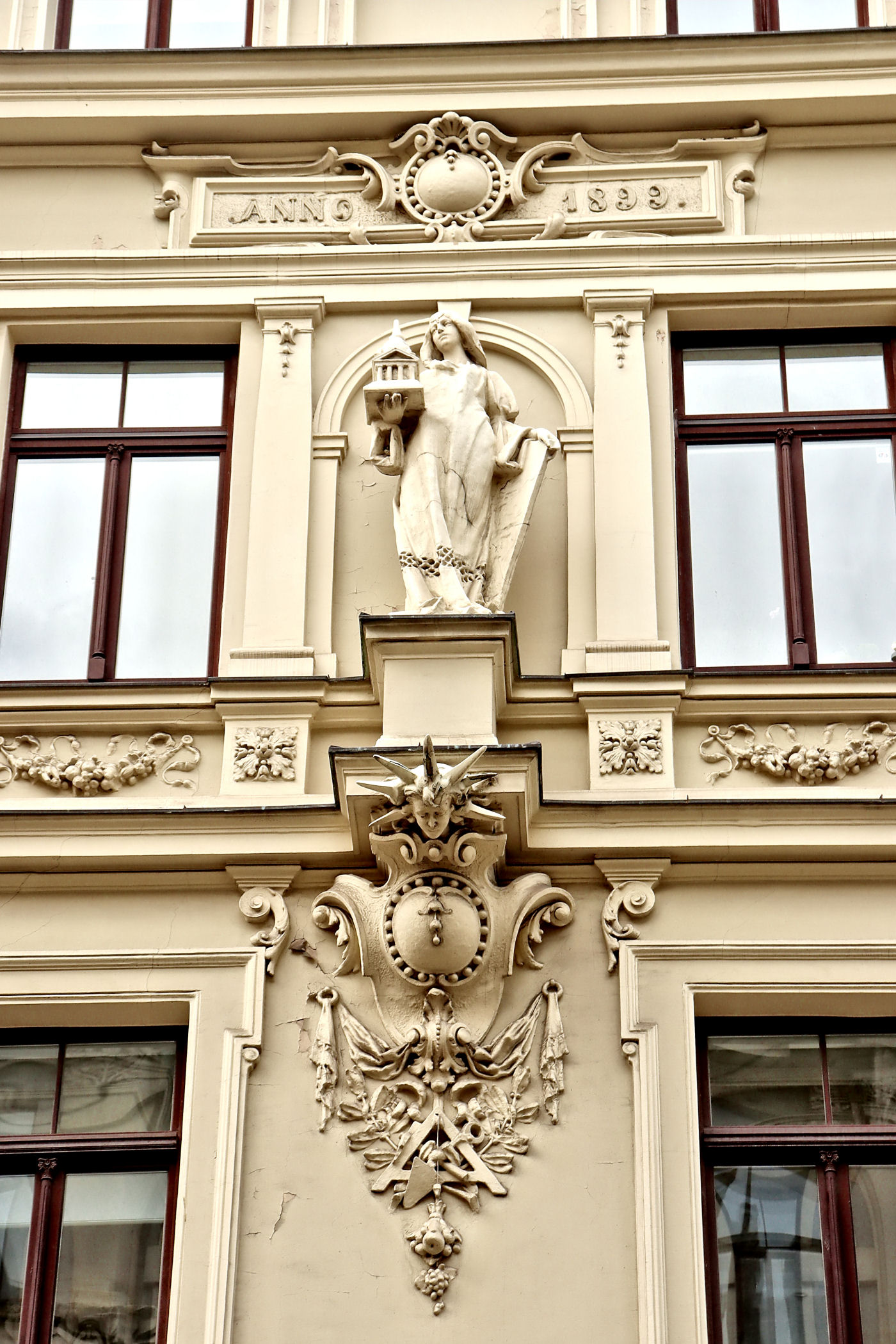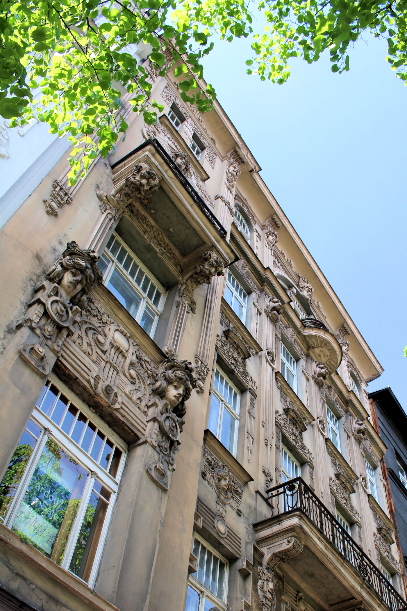 Naprzeciwko nich mamy kolejne cudo – to kamienica z 1901 roku, projektu Michaela Eisensteina Pełna postaci i głów ludzkich podtrzymujących gzymsy i balkony.