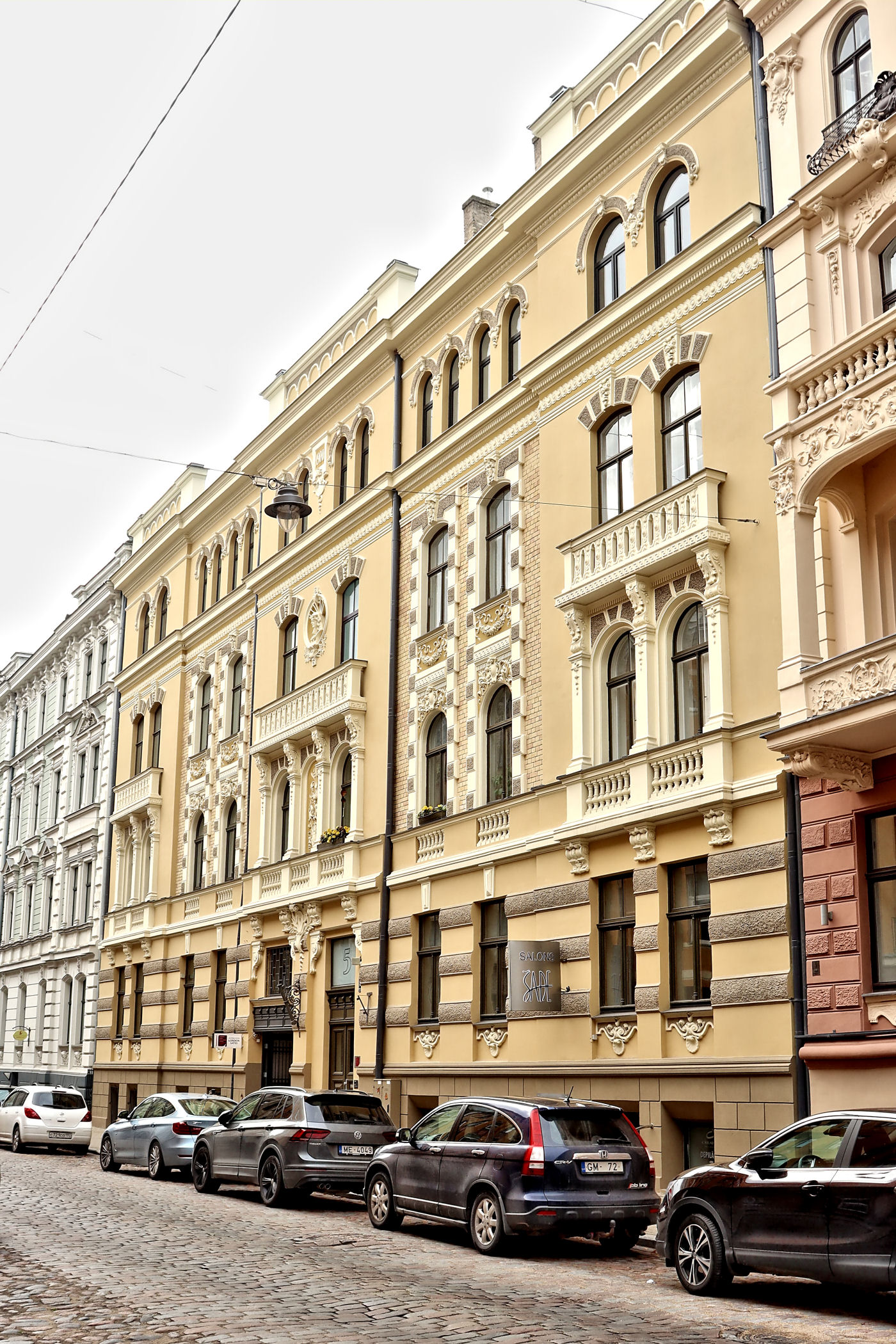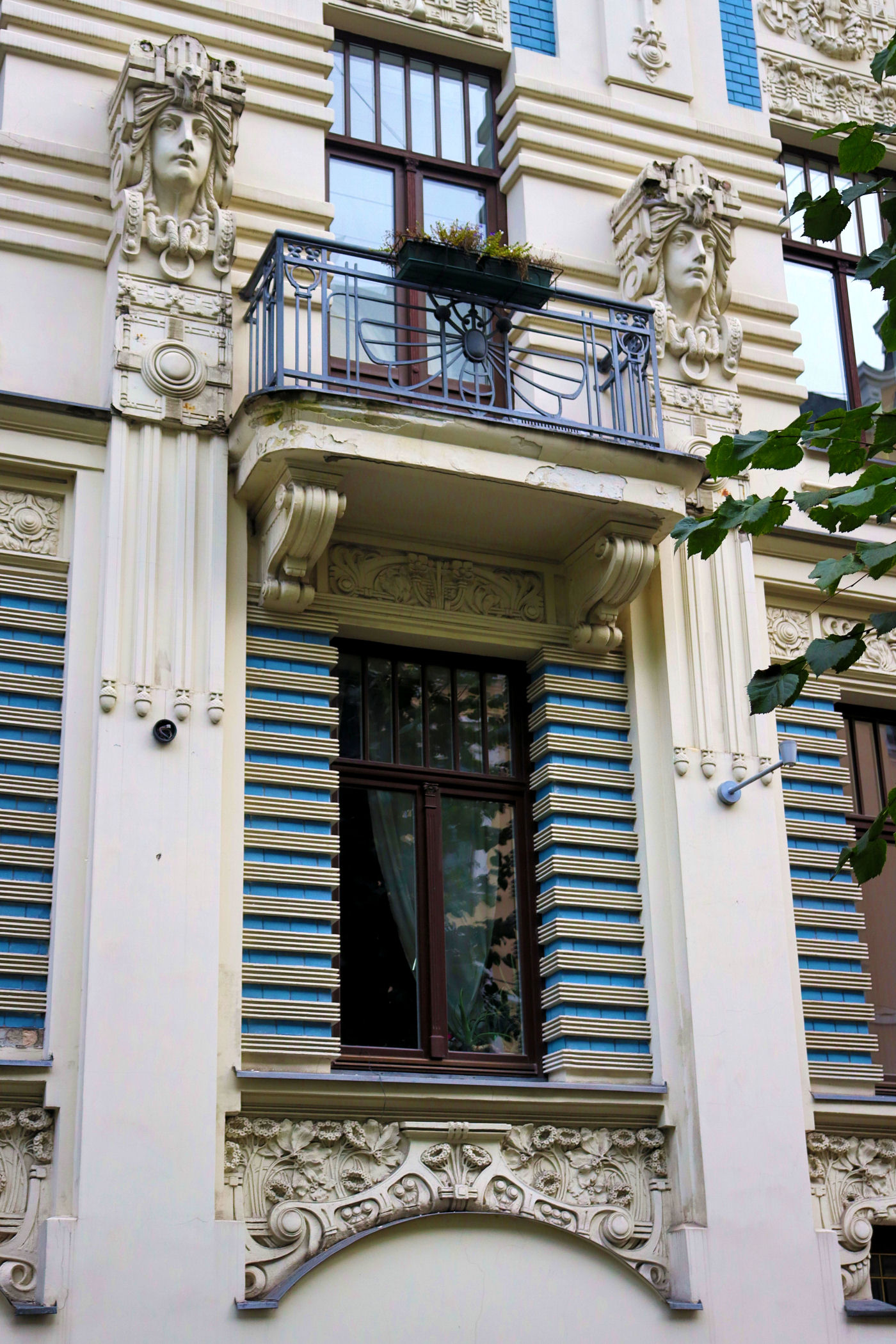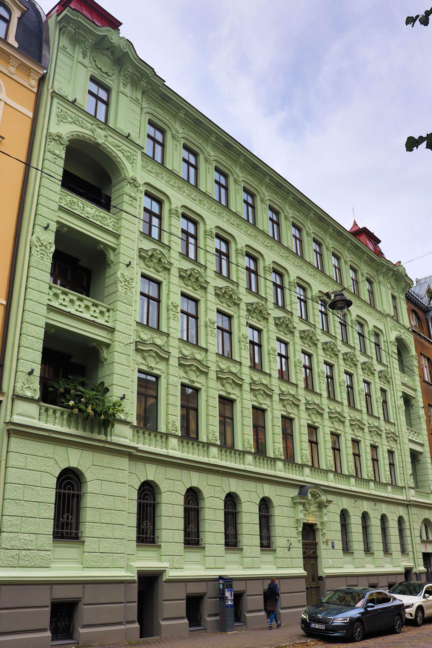 Na końcu ulicy Elizabetes skręcamy w prawo. Mijamy kilka skromniejszych kamienic, aby dotrzeć do kolejnych perełek.
