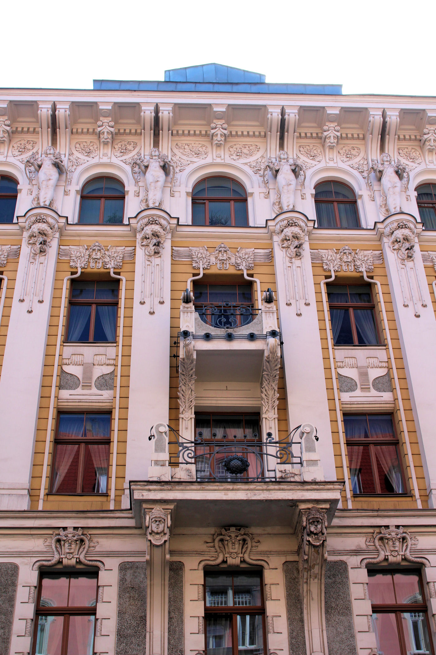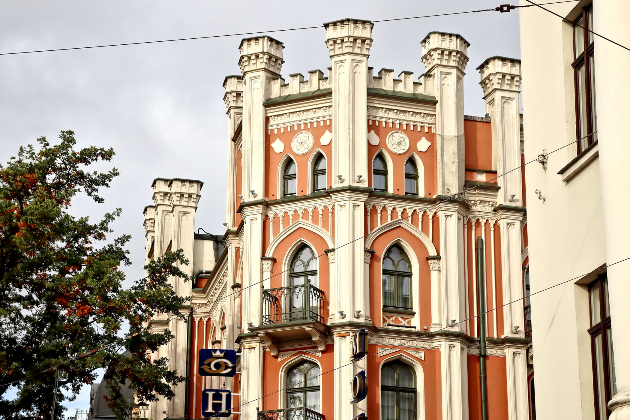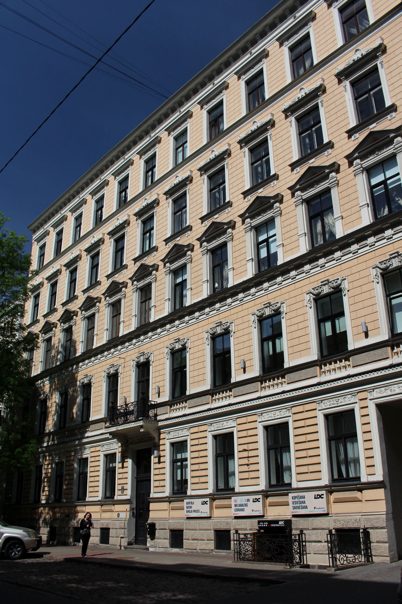 Na końcu ulicy Elizabetes skręcamy w prawo. Mijamy kilka skromniejszych kamienic, aby dotrzeć do kolejnych perełek.