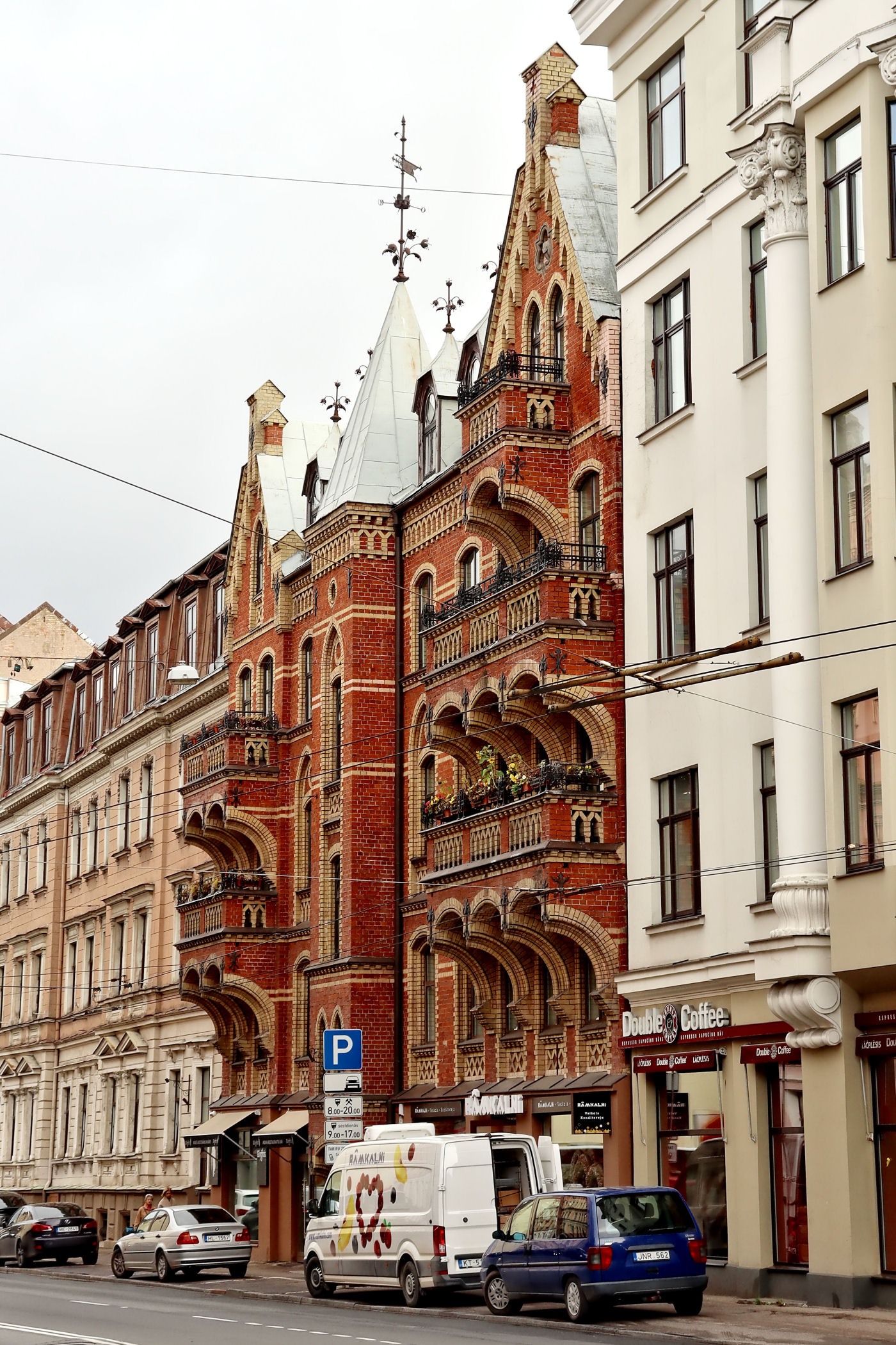 Ach, ależ petarda! Jak żałuję, że kilka lat temu podczas wizyty w Rydze byłem bardzo mało zainteresowany architekturą i podobnymi sprawami. A widzę, że dzisiaj byłbym zachwycony wyłapywaniem szczegółów wykończeń, całości elewacji. No piknie 🙂