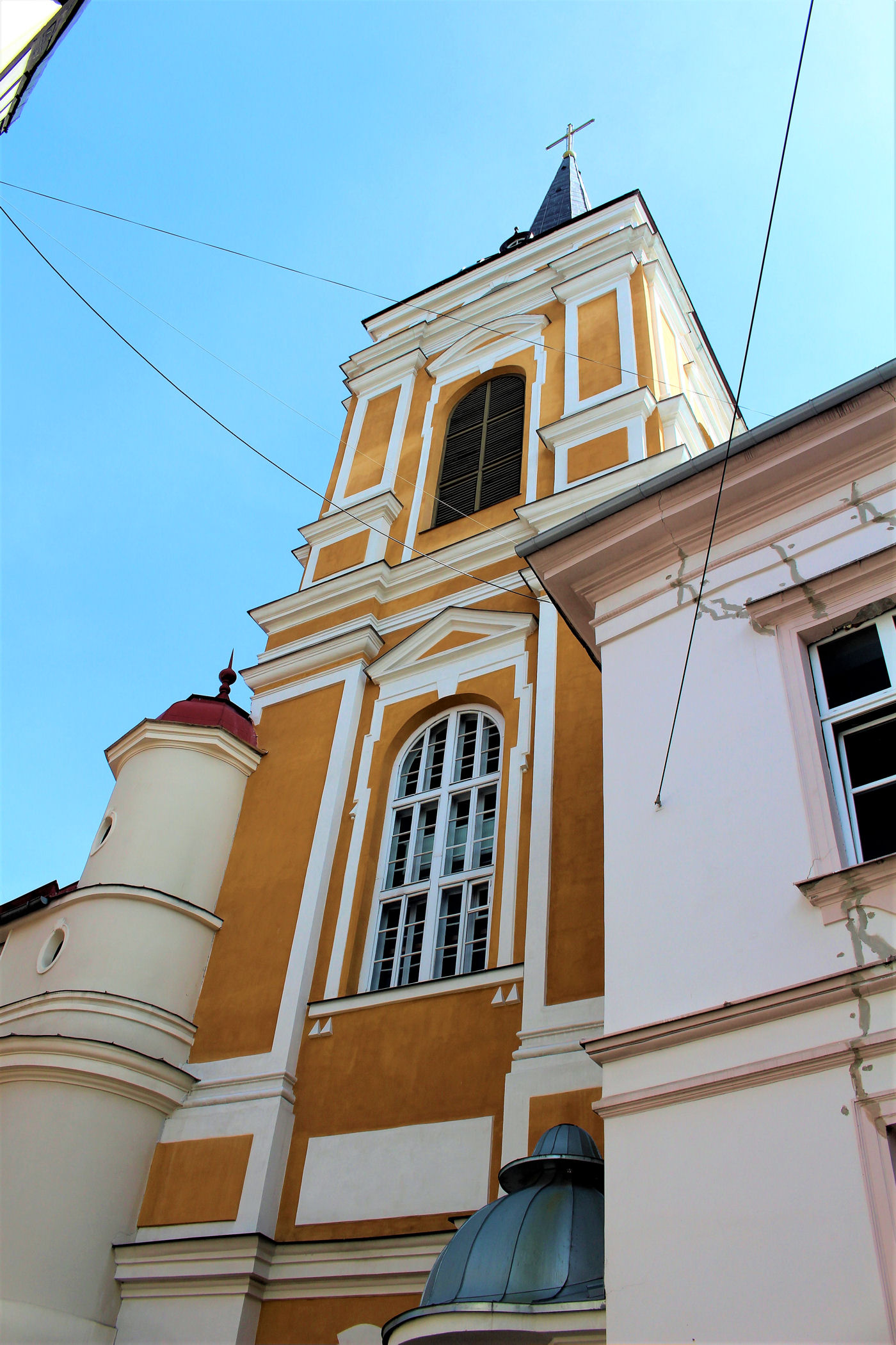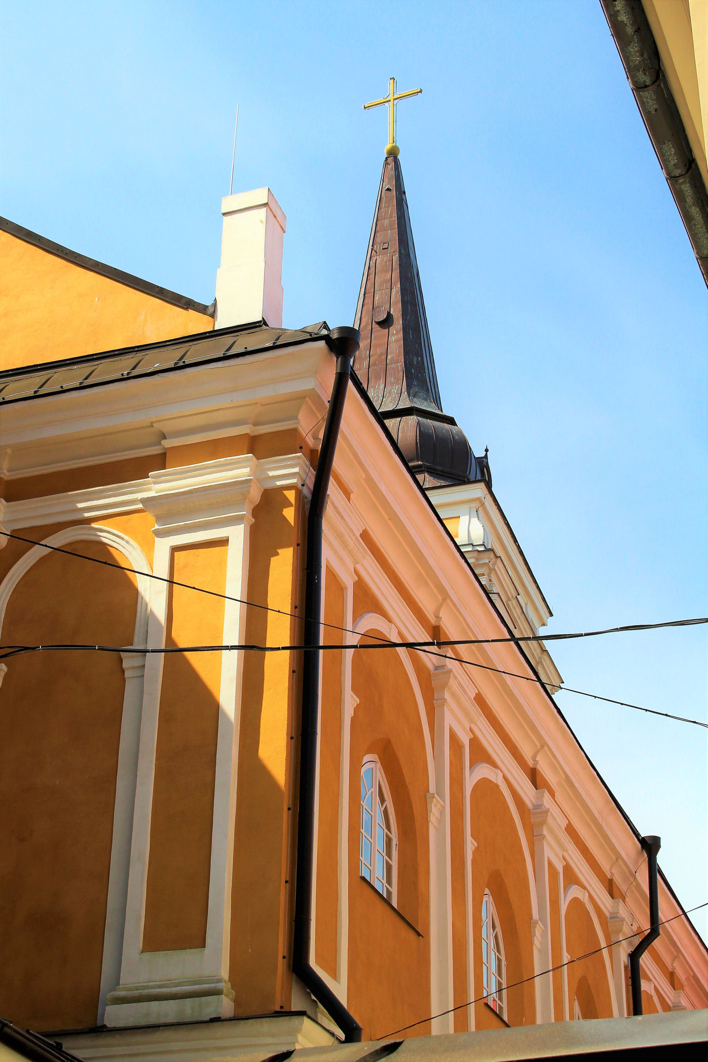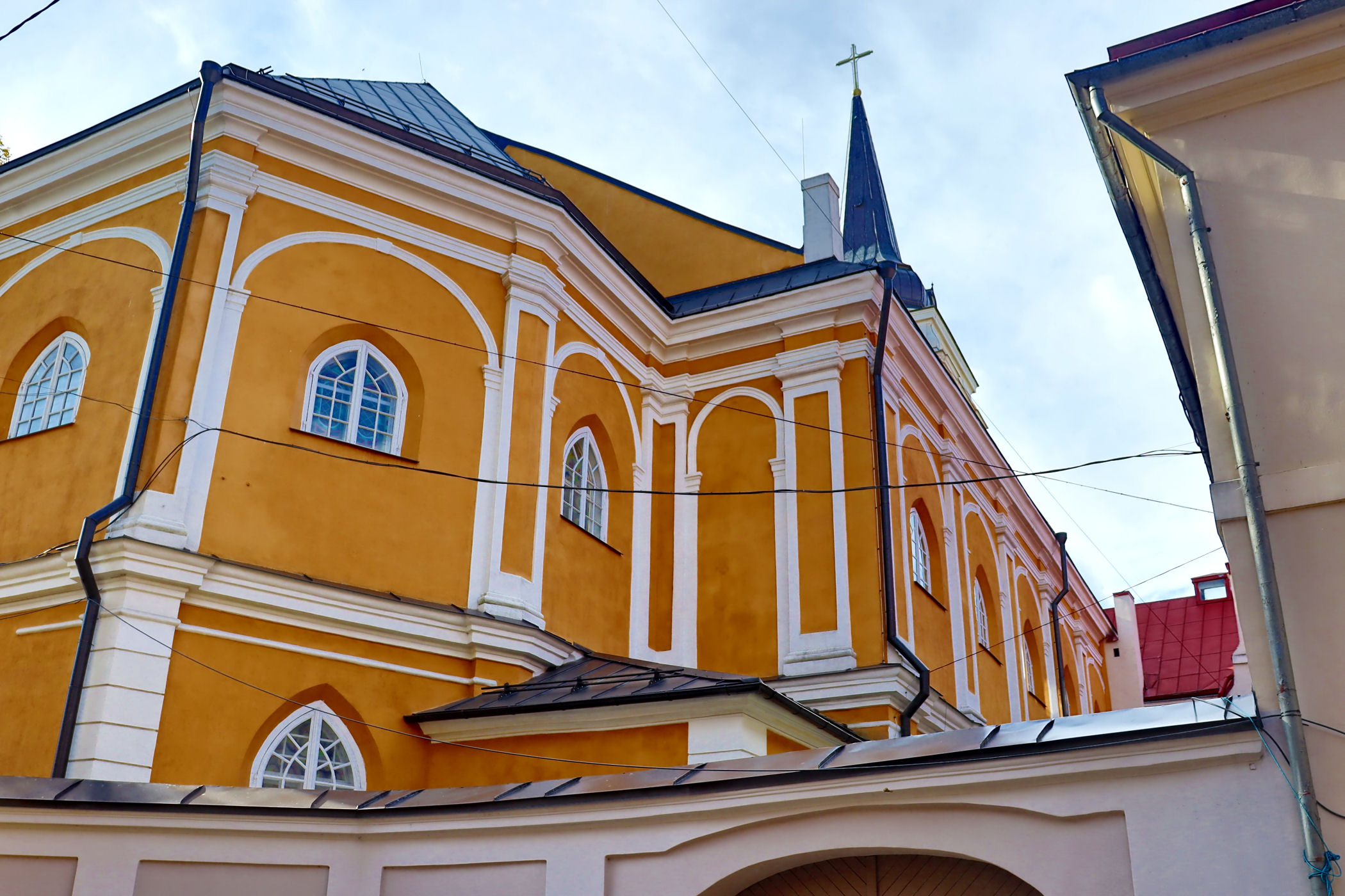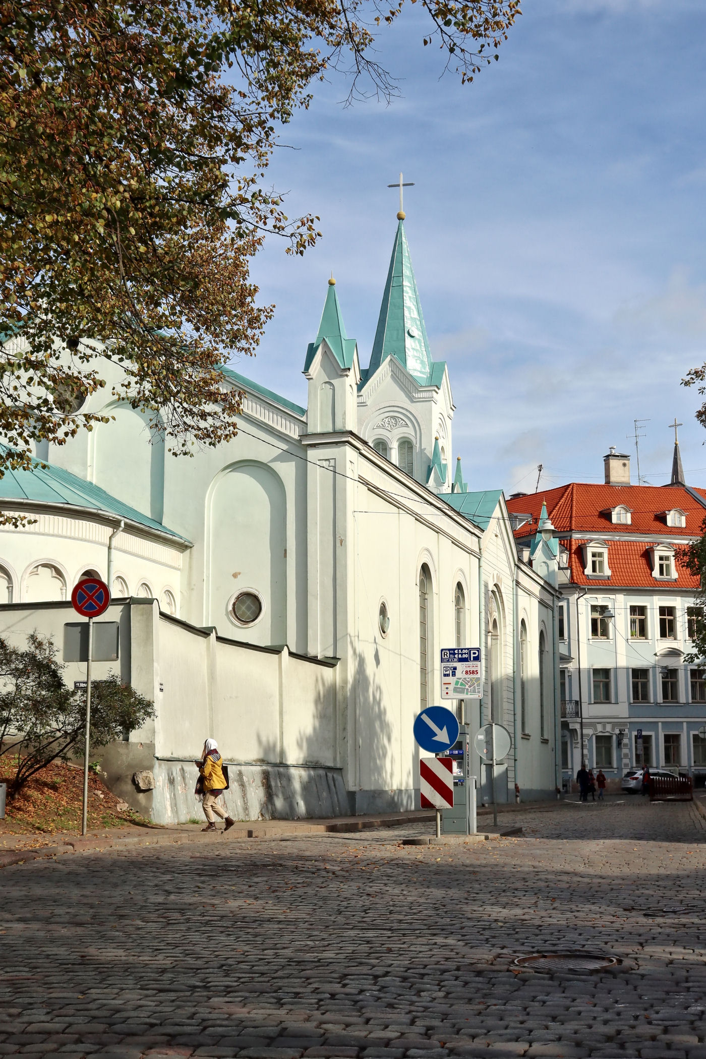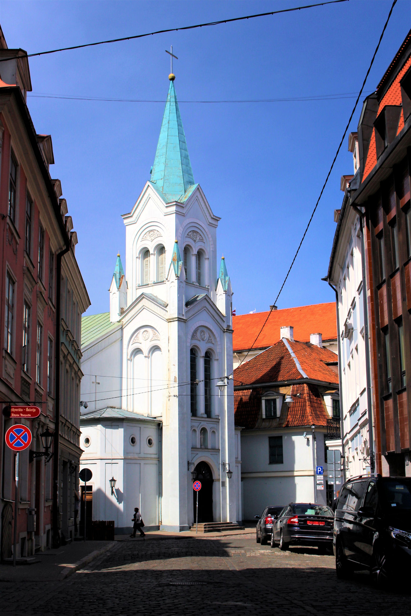 Teraz kieruję się na wschód wąską, pokręconą uliczką Klostera. Tu, wciśnięta między mury, stoi kolejna świątynia katolicka z pięknym wnętrzem, które zdecydowanie warto zobaczyć.