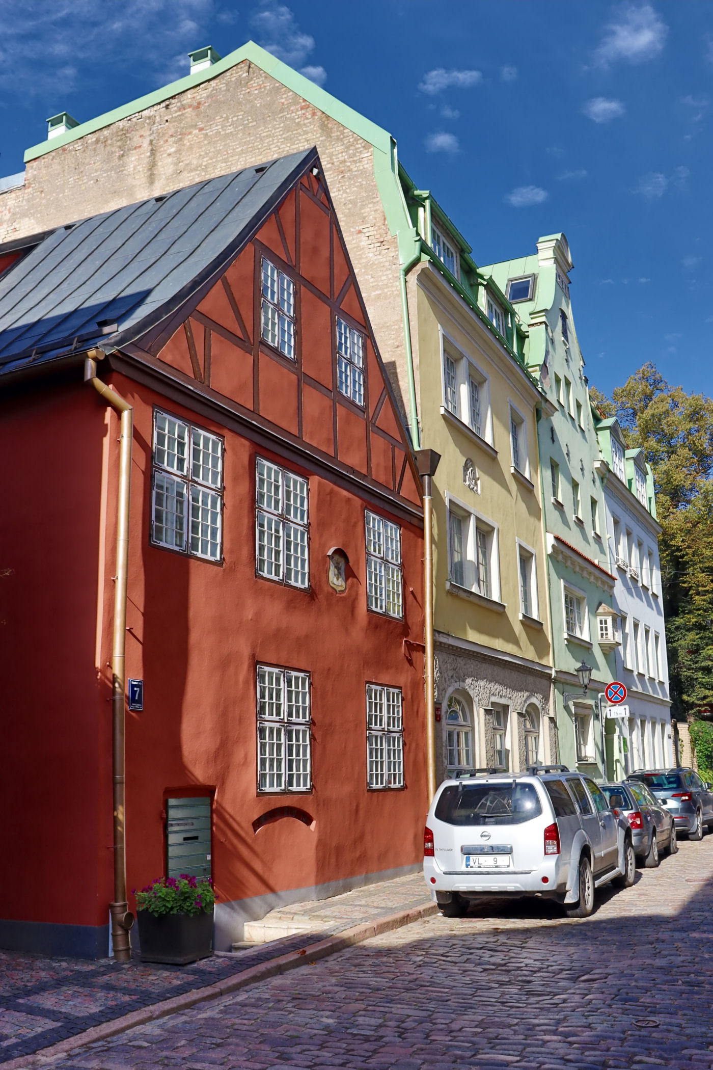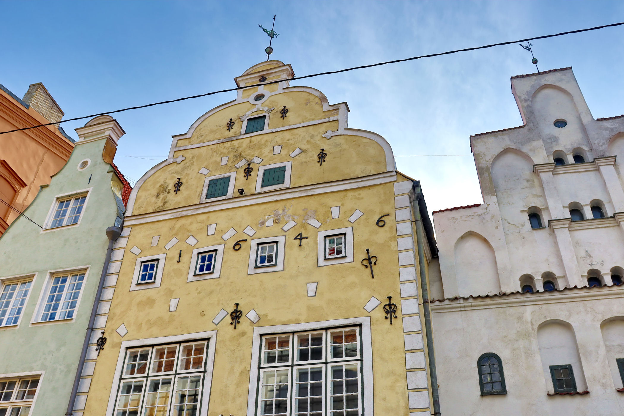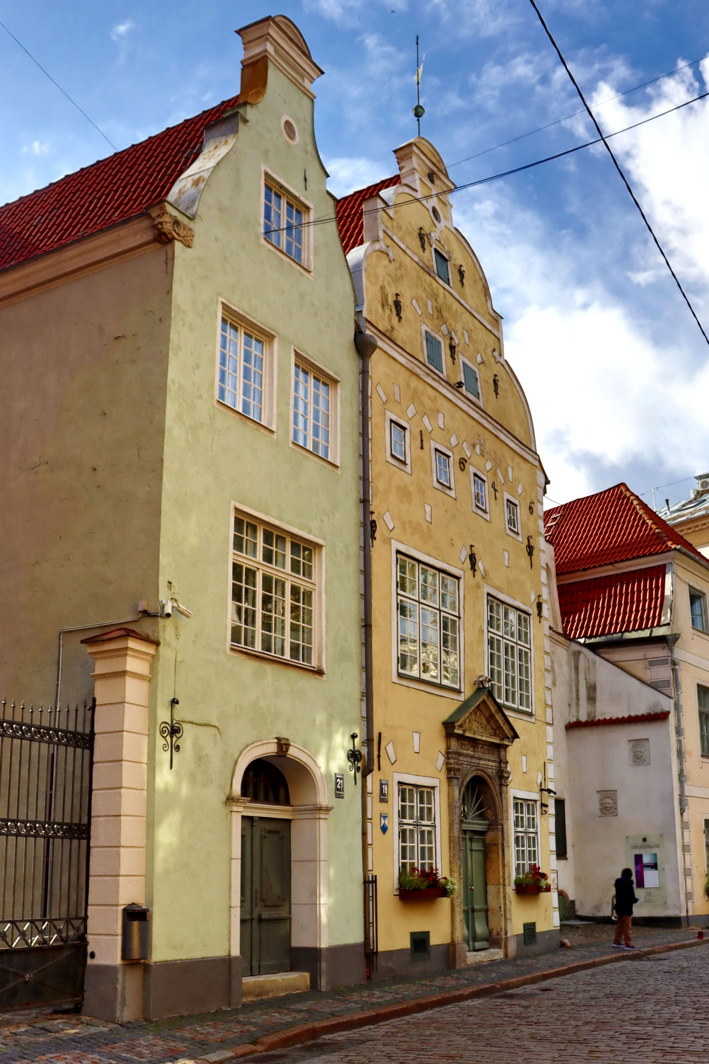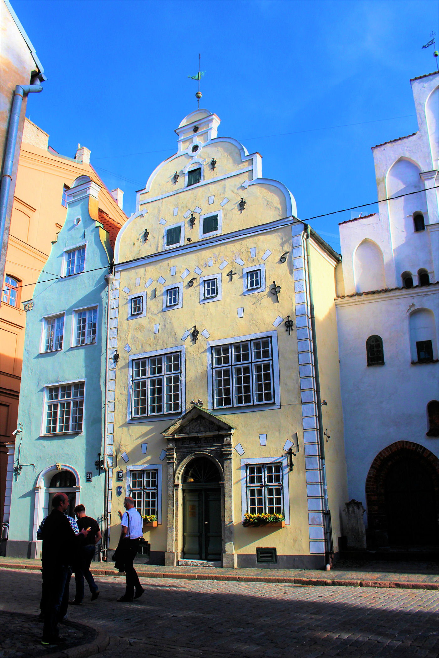 To najstarszy kompleks domów mieszkalnych z XV wieku. Według legendy, budynki powstały dzięki mężczyznom z jednej rodziny. Obecnie mieści się tu Łotewskie Muzeum Architektury oraz Państwowa Inspekcja Ochrony Dziedzictwa. Najstarszy z Trzech Braci (nr 17) służył produkcji i handlowi, został zbudowany około 1490 roku i jest pozbawiony ozdób — jedyną dekoracją są kamienne słupki przy drzwiach. Średni brat, najpiękniejszy z nich, pochodzi z 1646 roku, natomiast trzeci (nr 21), z małymi mieszkaniami, powstał w drugiej połowie XVII wieku. Na jego elewacji znajduje się ciekawy motyw maski, mającej chronić przed złymi mocami.