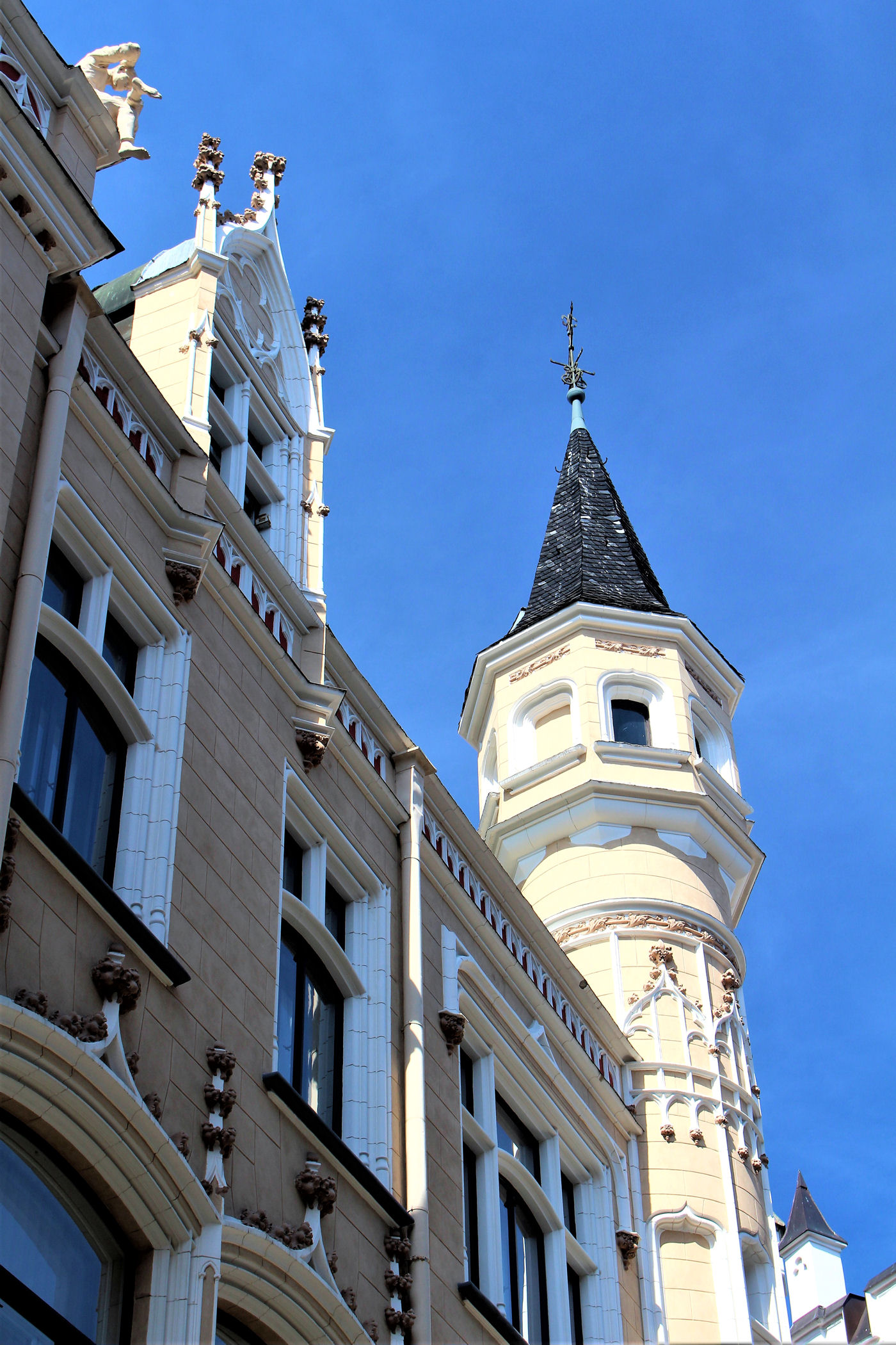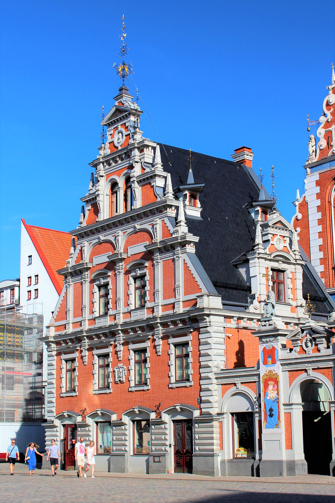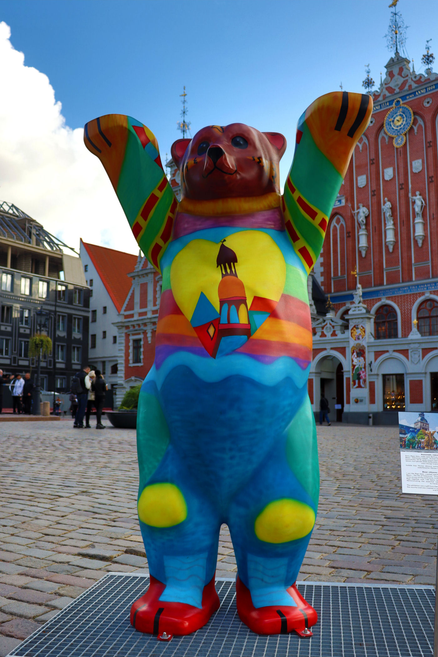 Teraz uliczką Meistaru kieruje się w stronę budynku, który stał się prawdziwą ikoną Rygi. Jego zwieńczenie w postaci figur kotów znajduje się bowiem na prawie wszystkich pamiątkach w tym mieście. Zbudowany został w 1909 roku według projektu Friedricha Scheffela. Jest to secesyjny budynek stylizowany na architekturę średniowieczną, a rzeźby kotów umieszczone są na dachu budynku.