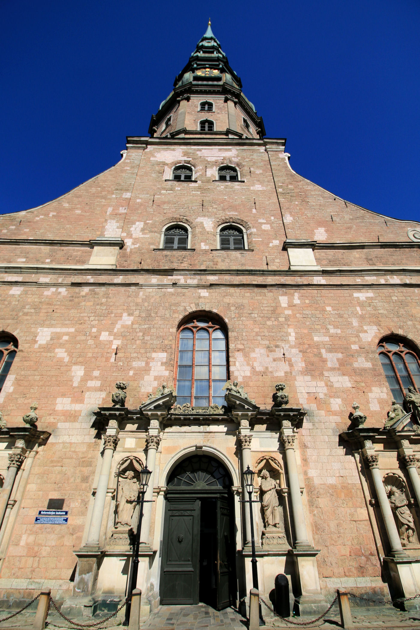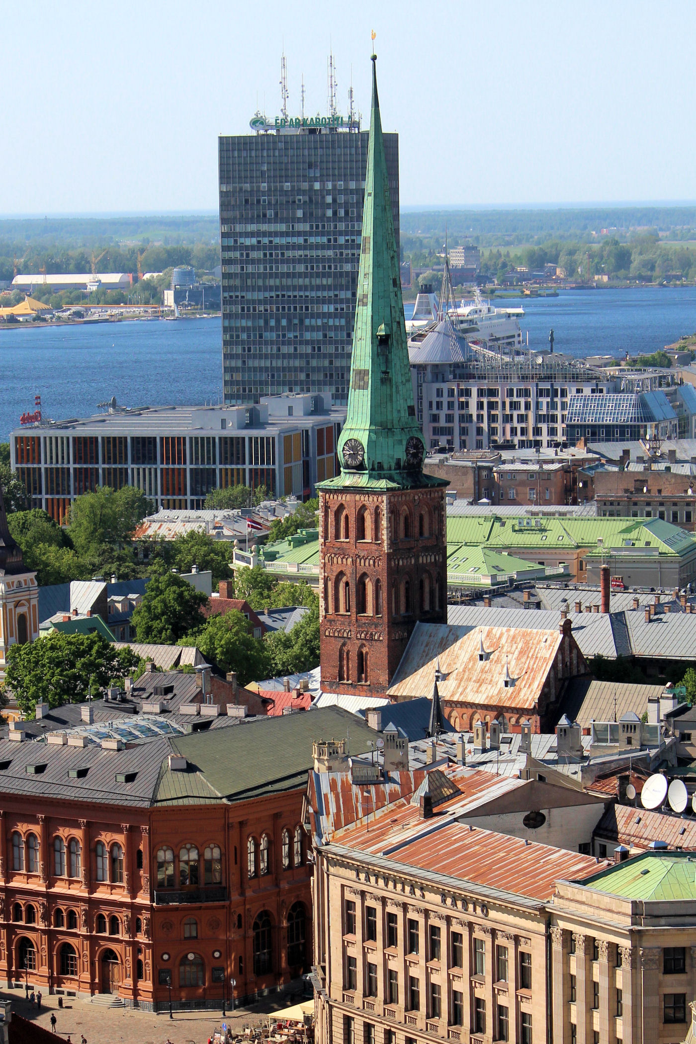 Najwyżej górującym nad starówką budynkiem, widocznym niemal z każdego punktu widokowego, jest Kościół św. Piotra. To zarazem jeden z najstarszych i najcenniejszych przykładów średniowiecznej monumentalnej architektury w krajach bałtyckich, wpisany od 1997 roku na listę Światowego Dziedzictwa UNESCO.