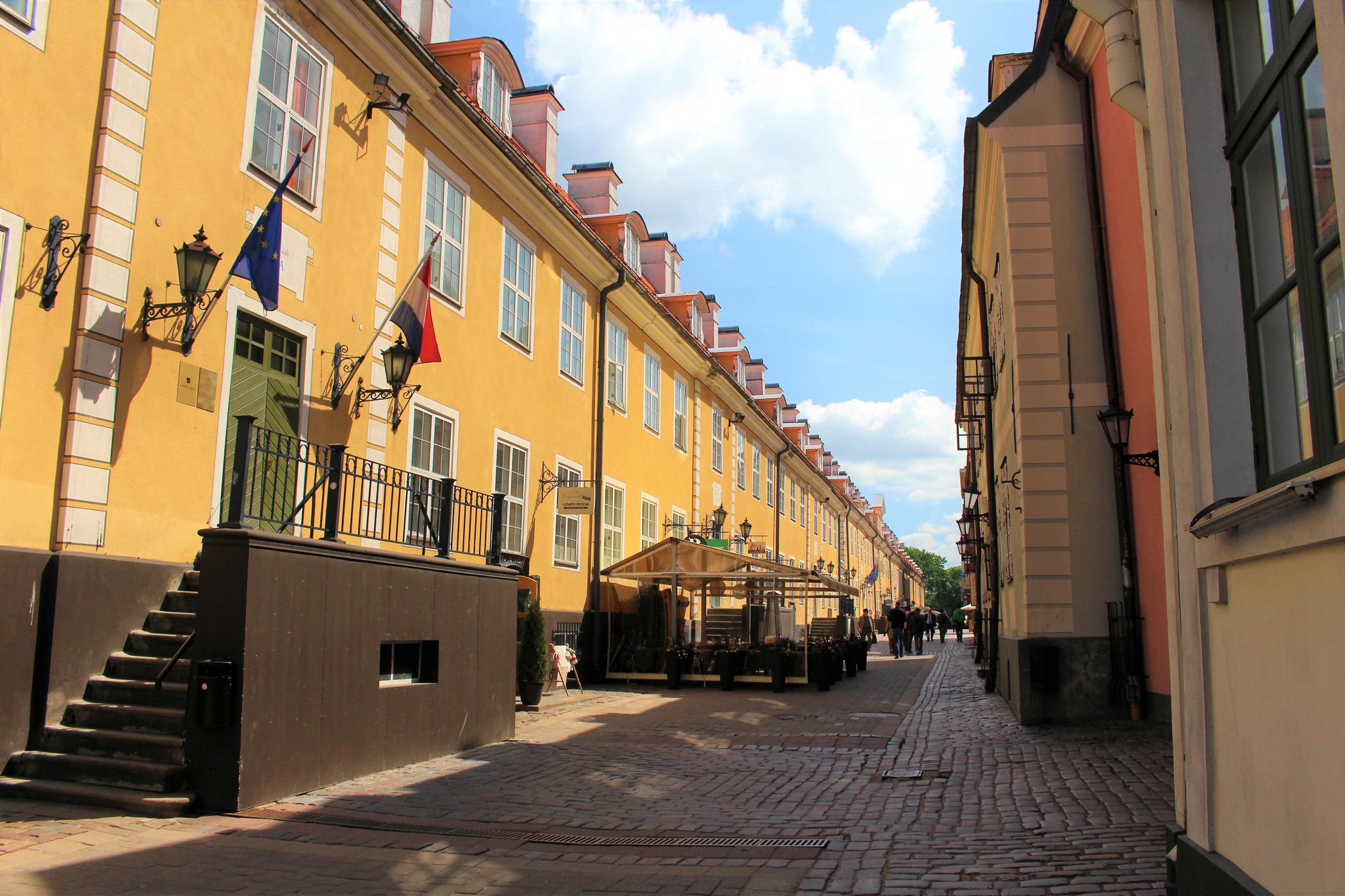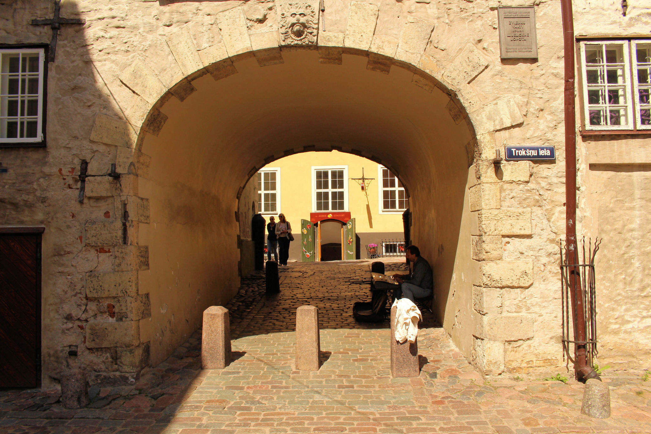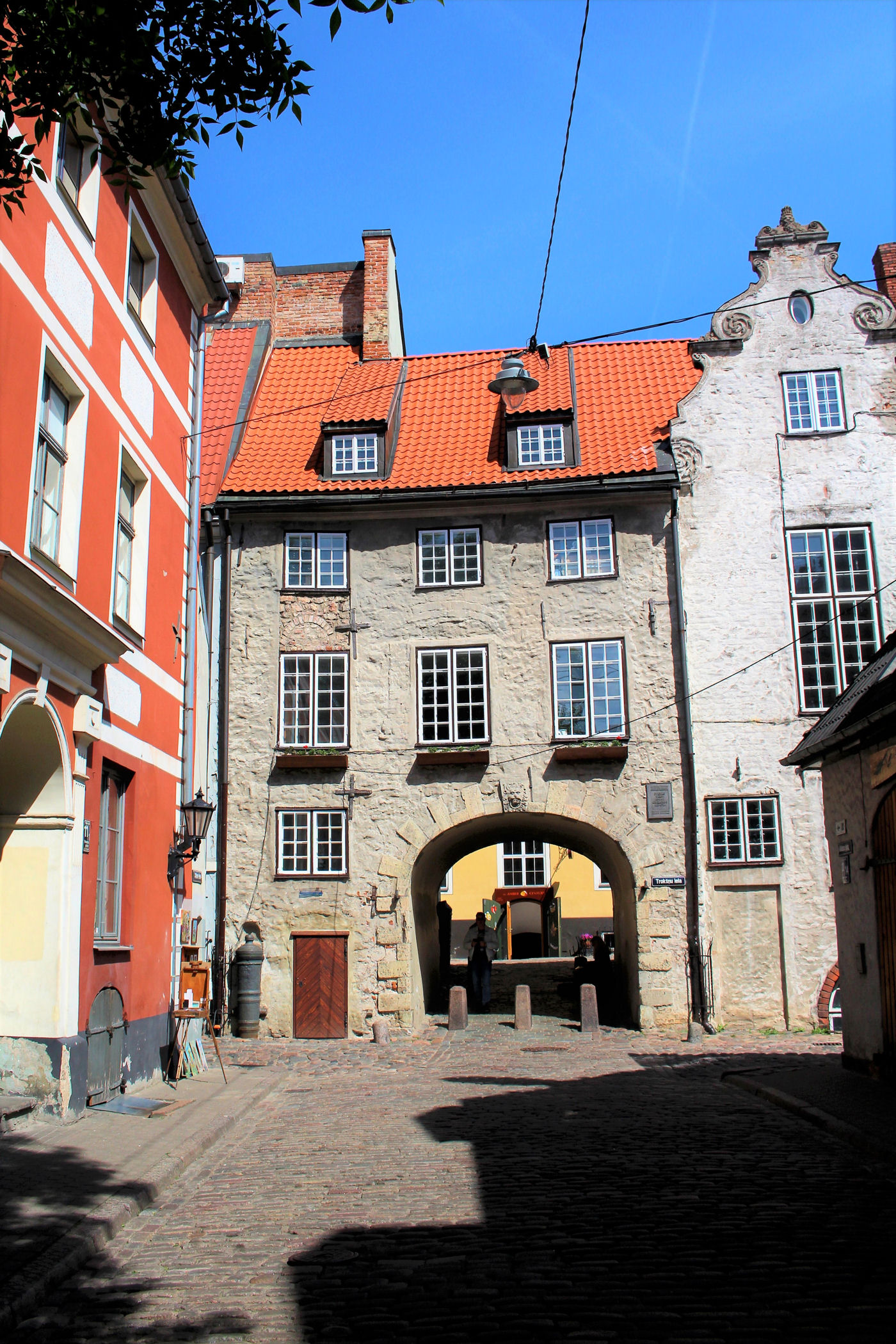 Teraz kieruję się jedną z najbardziej uroczych uliczek Rygi, ulicą Trokšņu, w stronę słynnej Bramy Szwedzkiej. Znajduje się ona w szarej kamienicy i została zbudowana w 1698 roku jako część murów obronnych, by zapewnić dostęp do baraków poza miastem. Brama była otwierana o wschodzie słońca i zamykana o jego zachodzie.