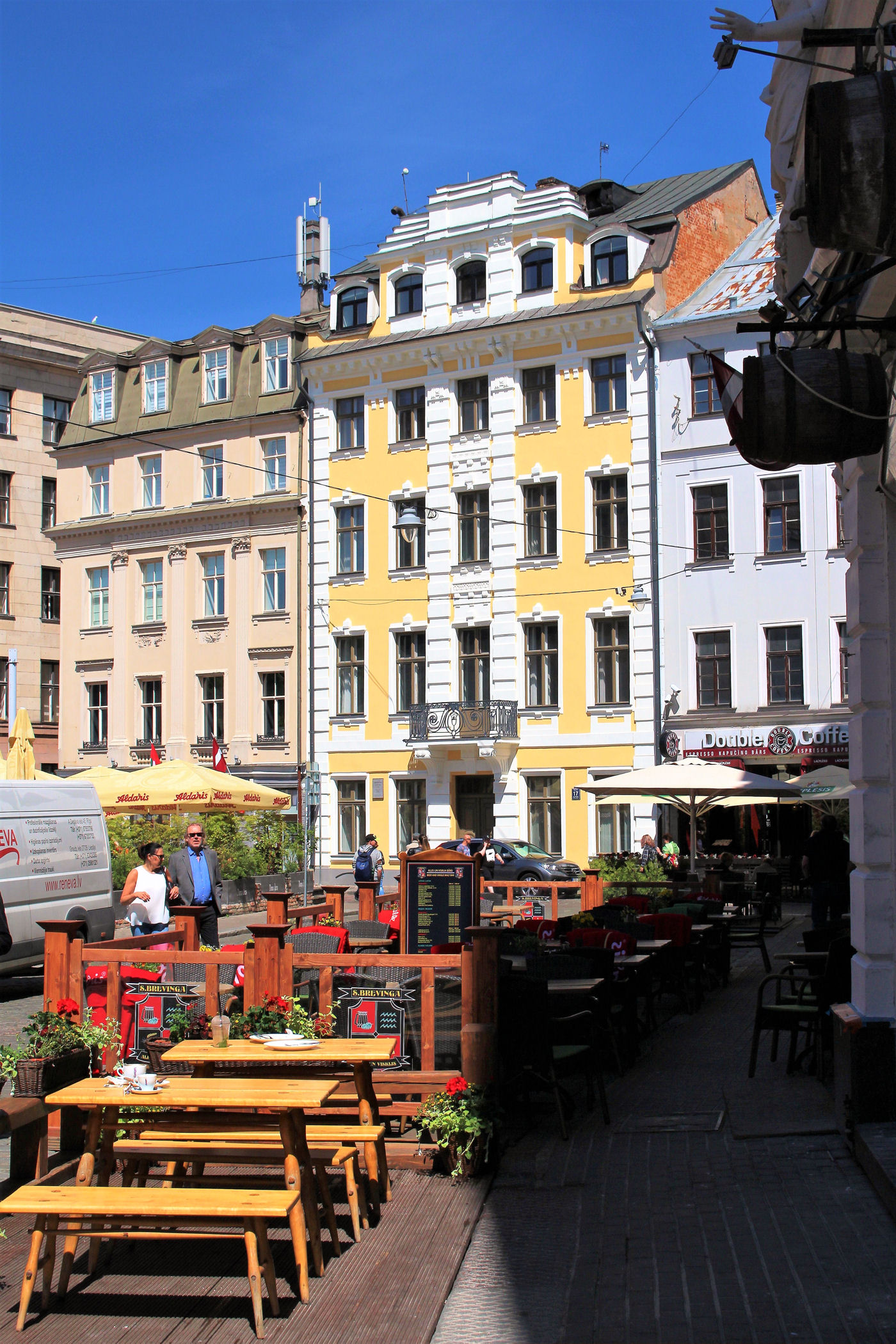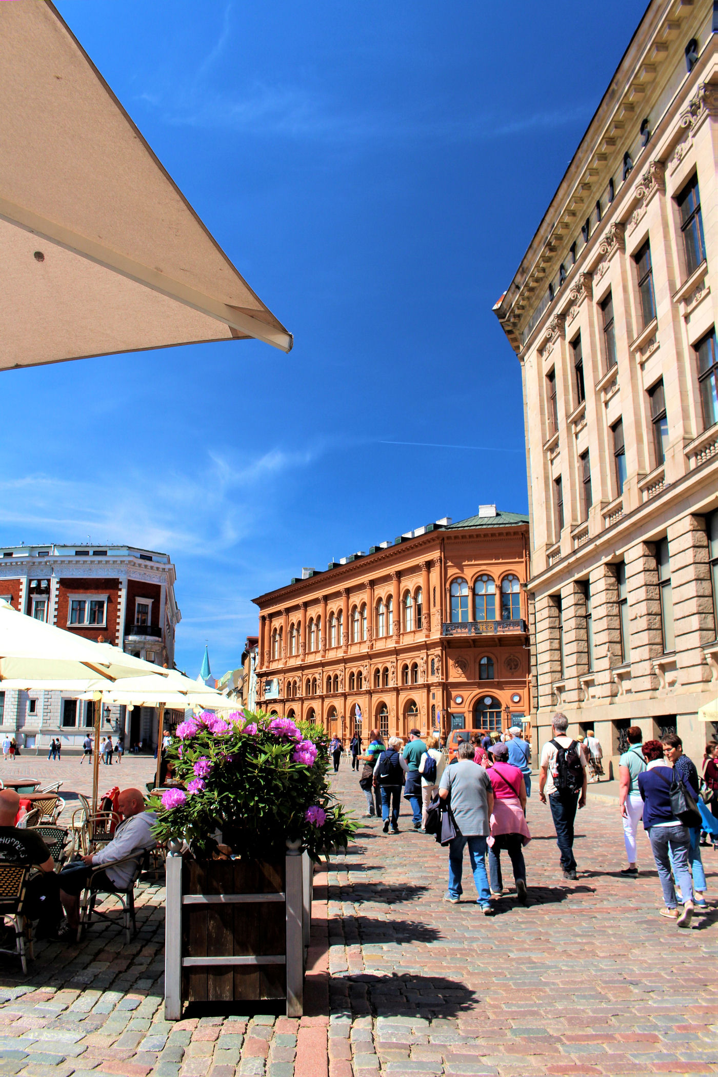 Przy budynkach Gildii zaczyna się najbardziej bajeczny plac jaki kiedykolwiek widziałam. Plac Liwski – Līvu laukums został odbudowany po II wojnie światowej, kiedy to część budynków została zniszczona. W okresie letnim na placu znajdują się kawiarnie na świeżym powietrzu i piękne kompozycje kwiatowe. W zimie na placu znajduje się lodowisko. To miejsce w Rydze, które nigdy nie śpi – jedno z najbardziej klimatycznych i uroczych na terenie Starego Miasta.