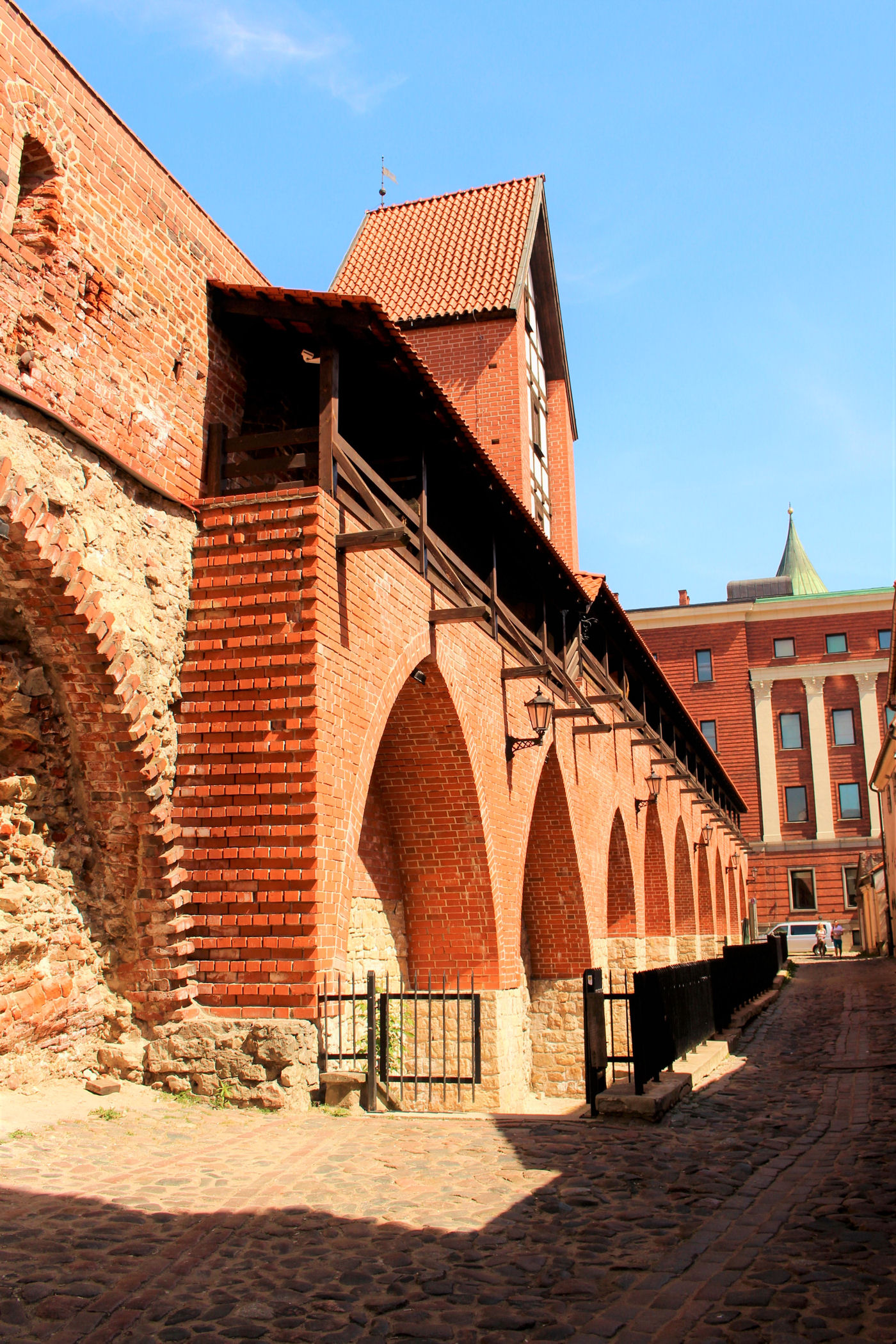 Na wschód od Bramy Szwedzkiej rozciągają się charakterystyczne czerwone mury z łukami oraz wznoszącą się nad nimi wieżą. Warto przejść aż do ich końca, aby zobaczyć pomnik ducha, który postawiono tam w 2015 roku w ramach programu „Sztuka w miejscach publicznych”.
