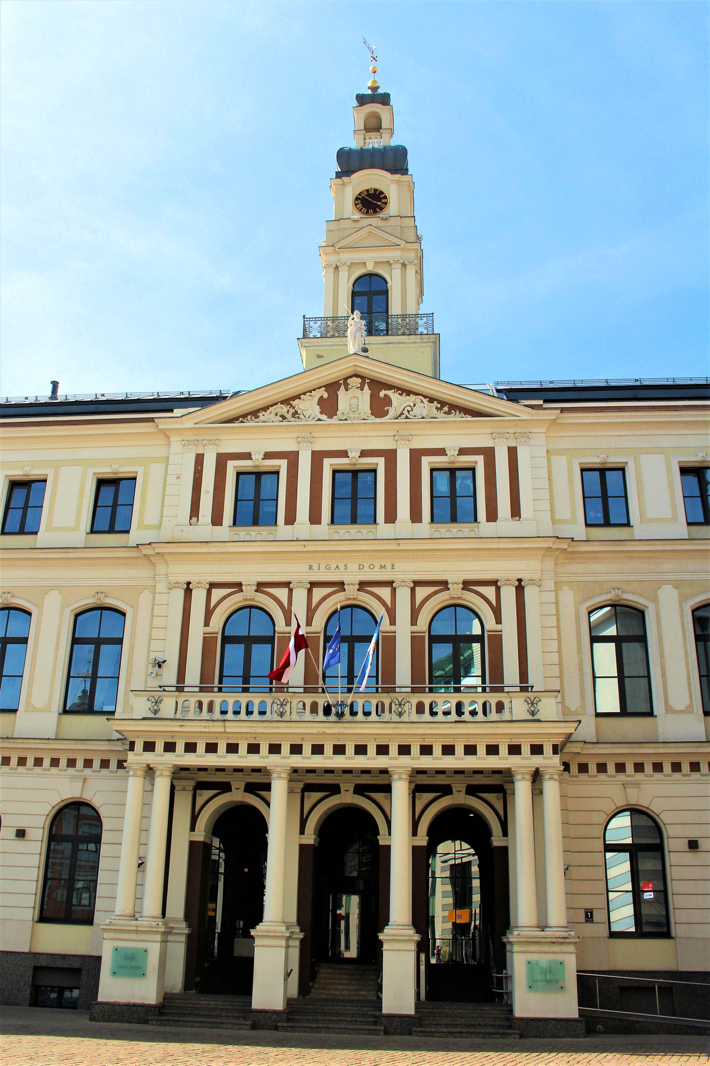 Naprzeciwko budynku Bractwa mieści się ratusz, który podobnie jak sąsiedni gmach został całkowicie zniszczony podczas wojny i dziś stoi odbudowany w swojej pierwotnej formie. Co godzinę z wieży rozbrzmiewają dzwony grające melodie Raymonda Paulsa. Wnętrza ratusza można zwiedzać, ale wyłącznie z przewodnikiem.