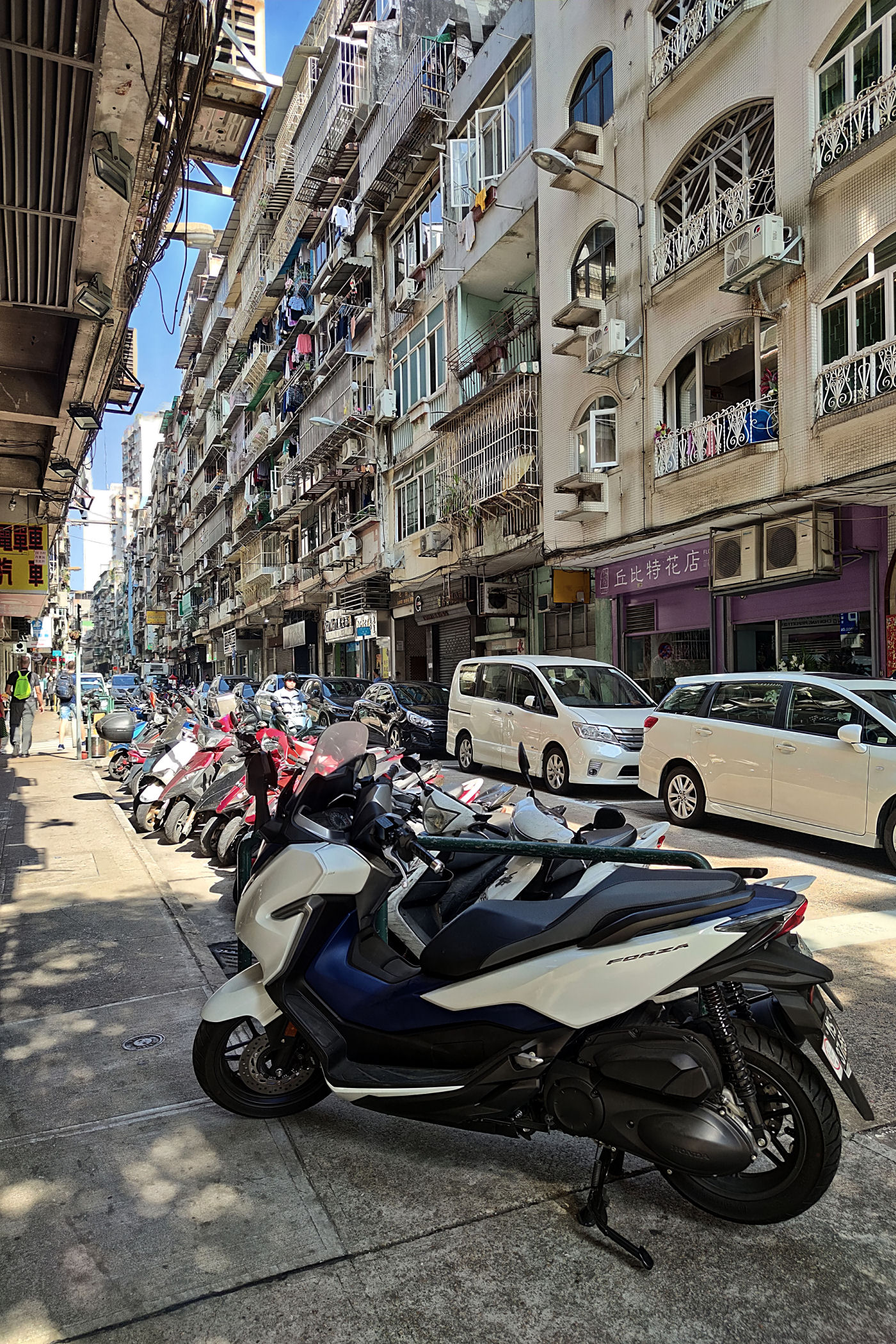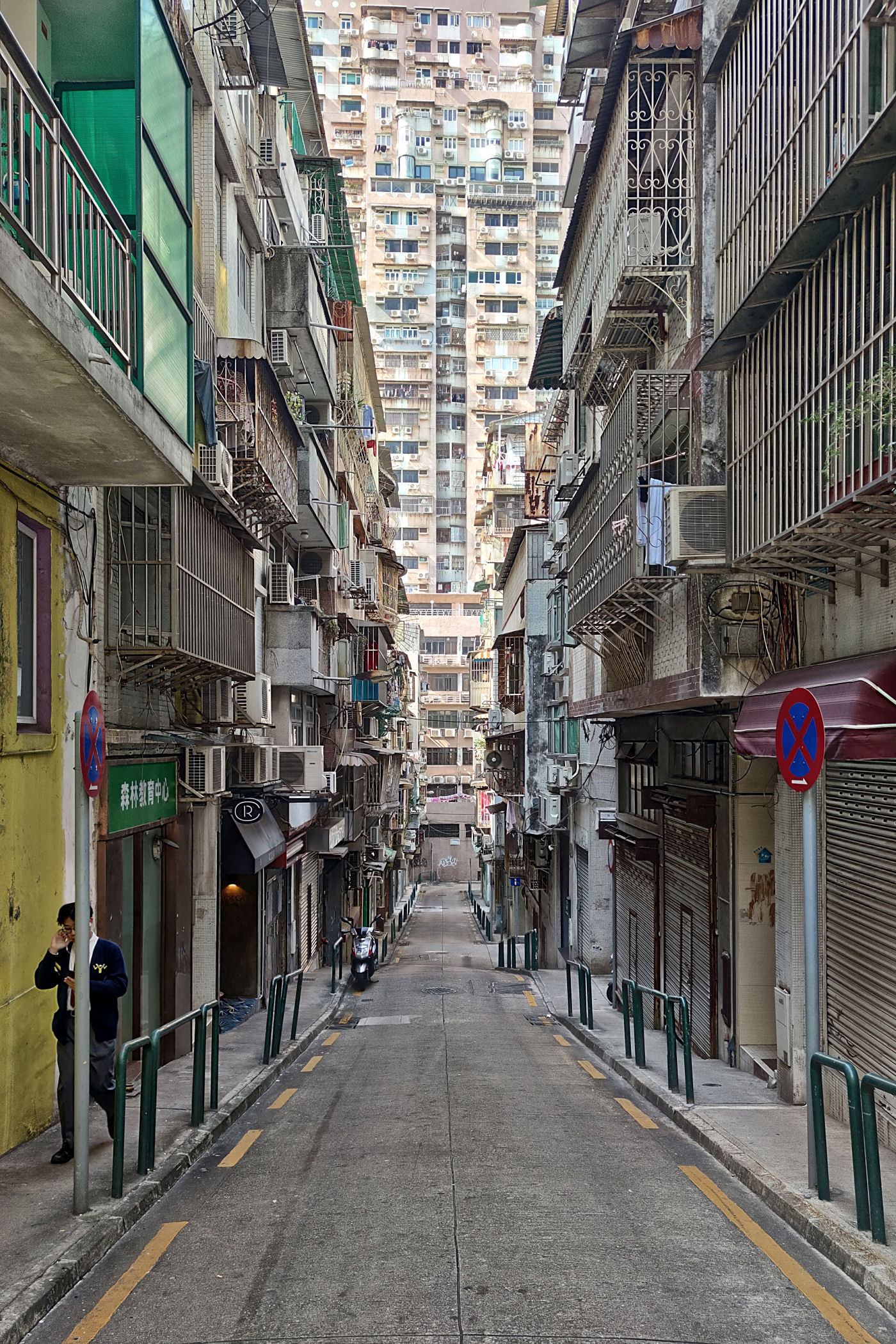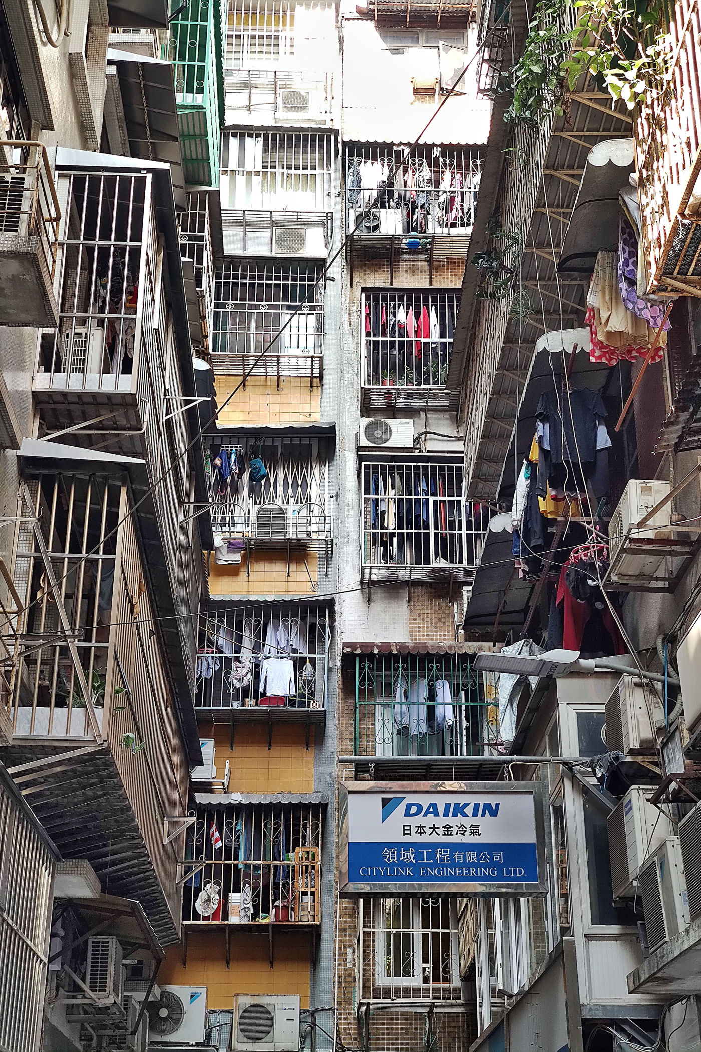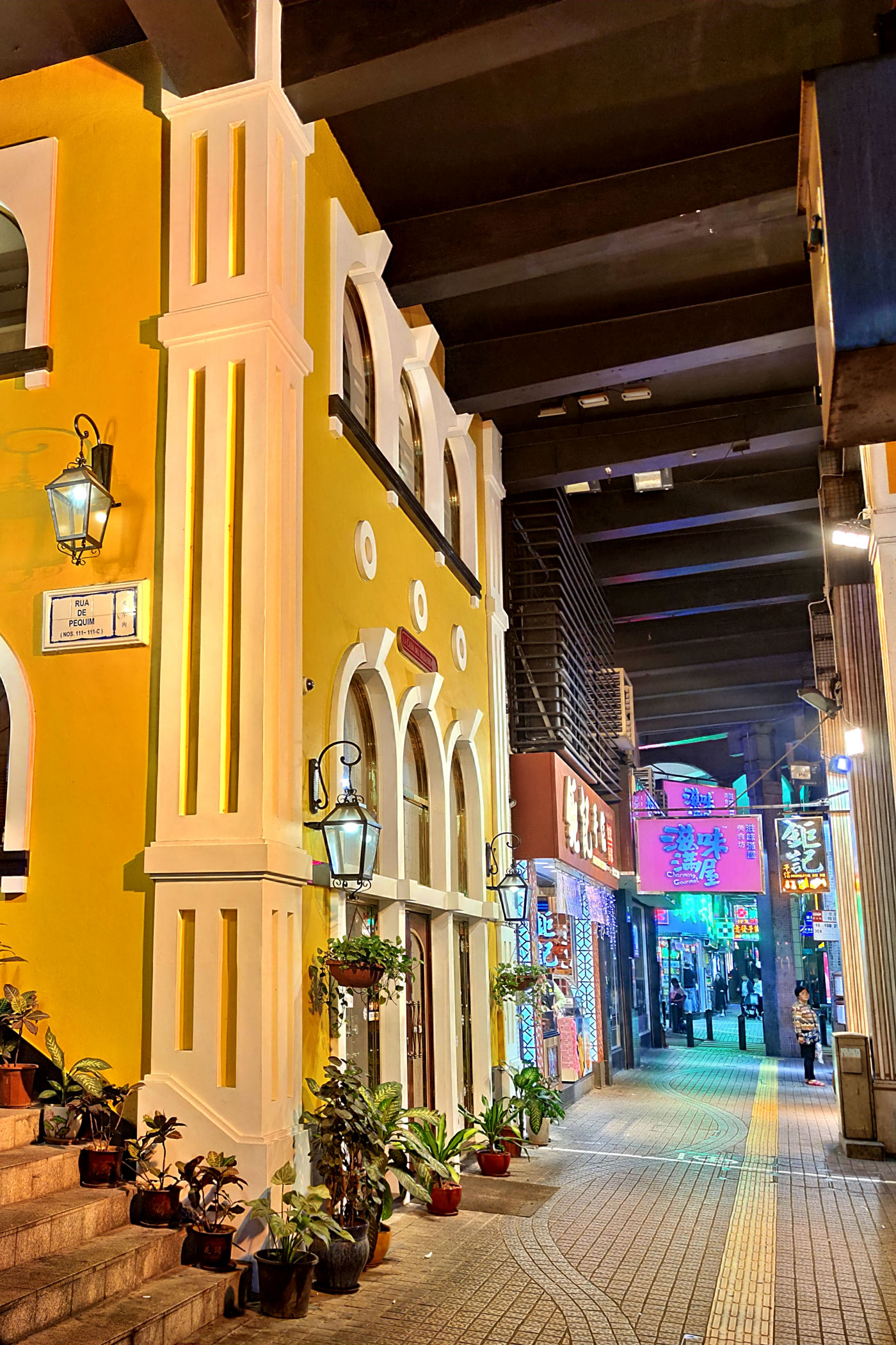 Jeśli będziecie mieli czas – koniecznie idźcie do dzielnicy mieszkalnej powyżej szpitala. Tu na ulicy Nova a Guia zobaczycie najbardziej komiczny obraz. Między starymi budynkami pełnymi kabli, wentylatorów i prania wyłania się budynek Grand Lisboa .
