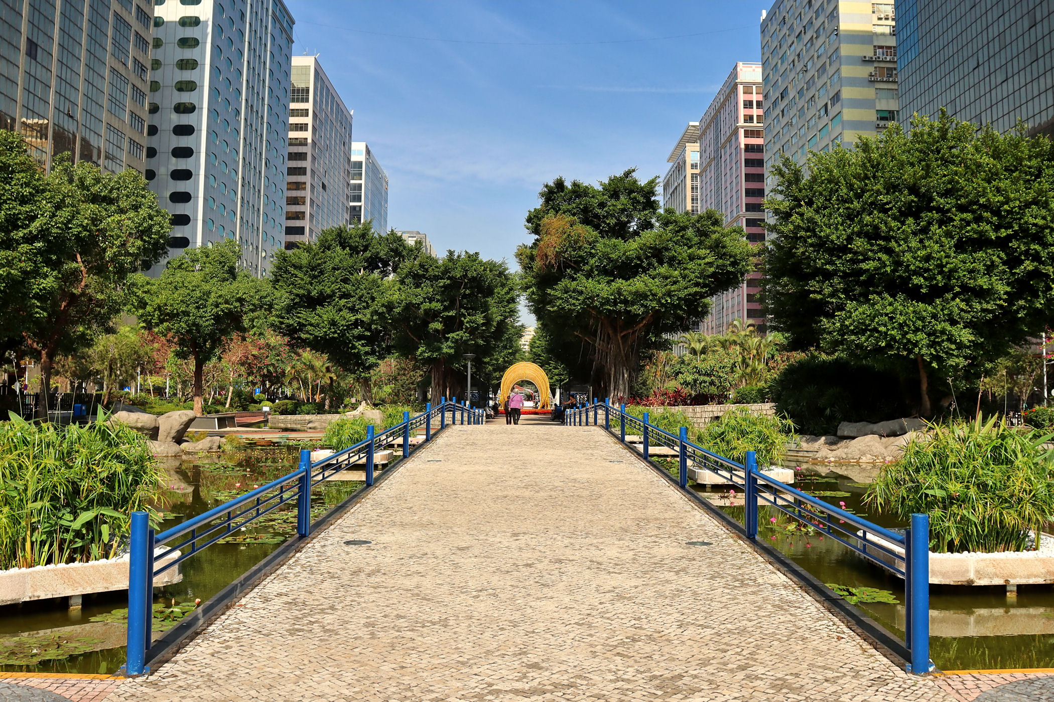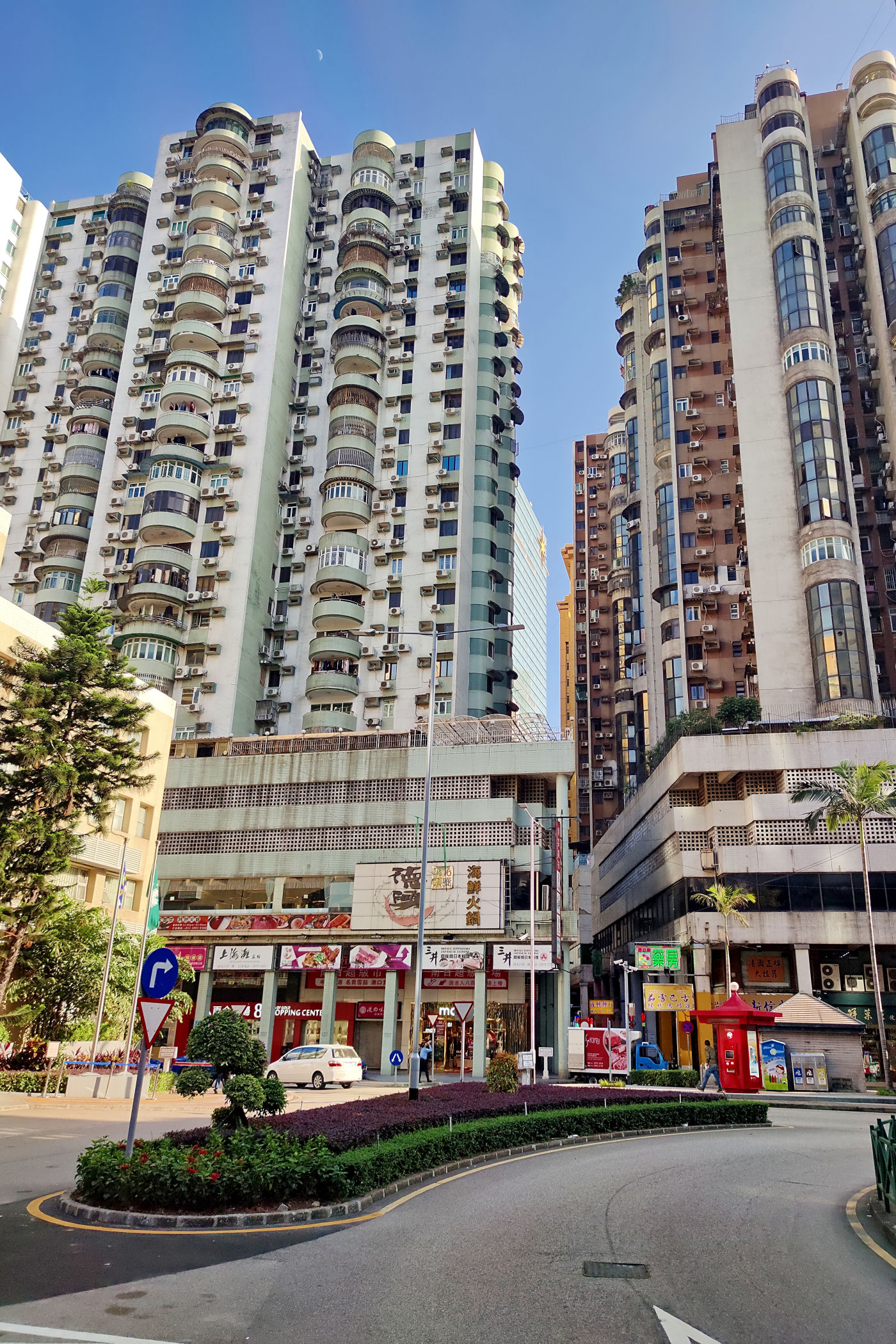 Dzielnica między Parkiem Rzeźb, a rondem przy nabrzeżu , gdzie znajduje się najbardziej charakterystyczny budynek Makau – Grand Lizboa to kolejne kasyna i hotele. Tu też znajduje się mnóstwo obiektów mieszkalnych mocno kontrastujacych z otoczeniem. Z niewiadomych dla nas przyczyn większość okien i balkonów jest okratowanych nawet na bardzo wysokich piętrach.