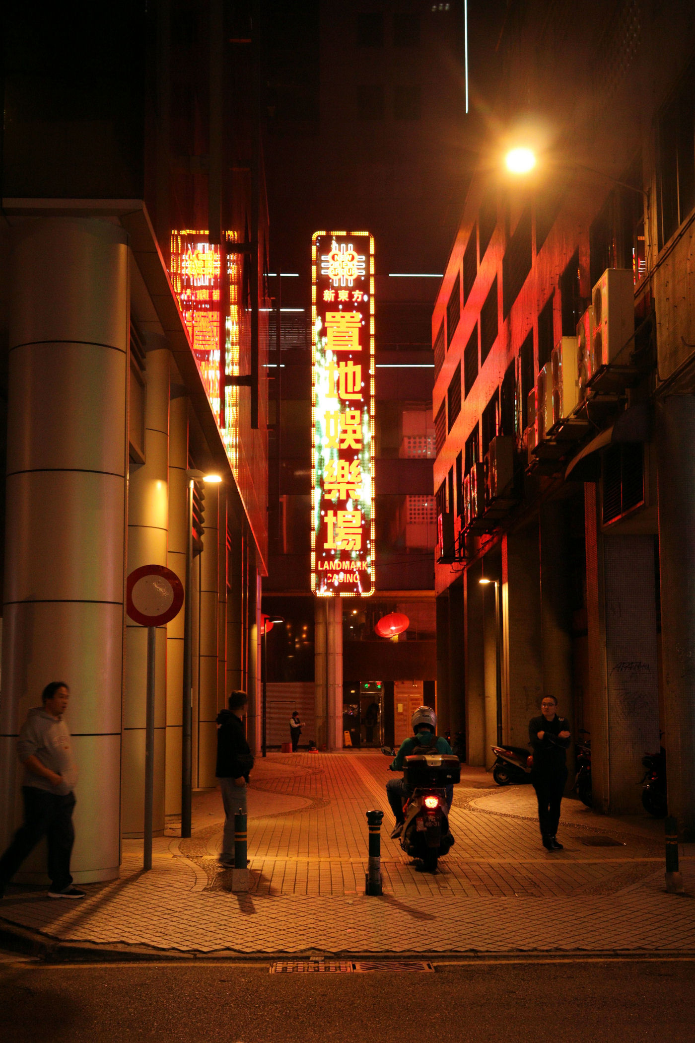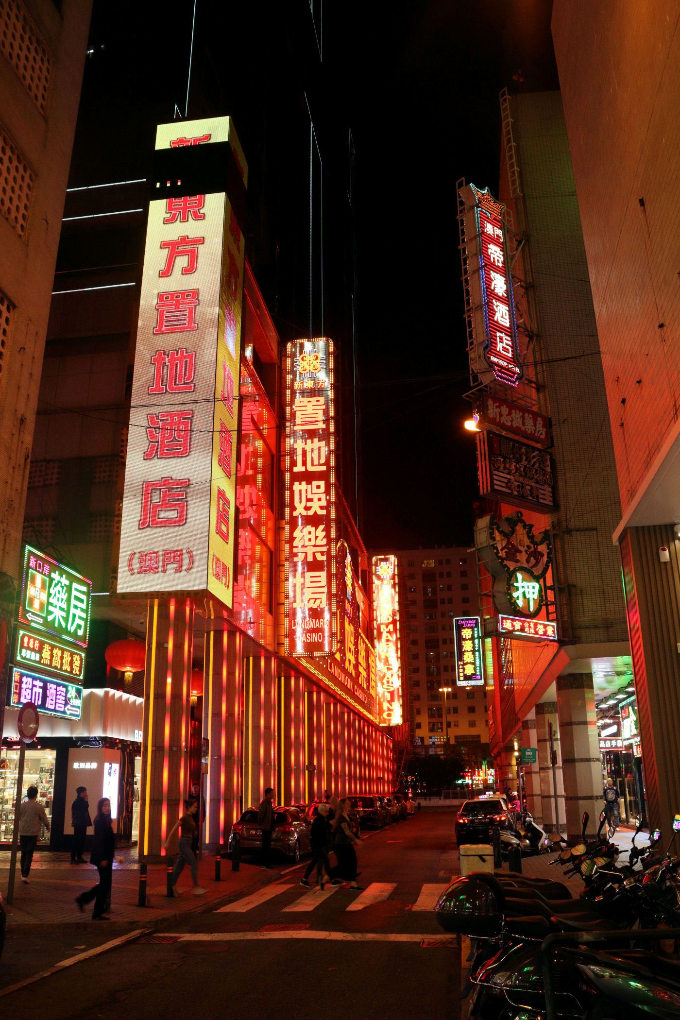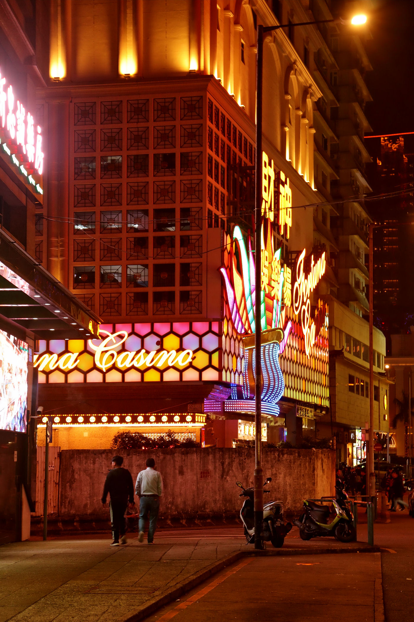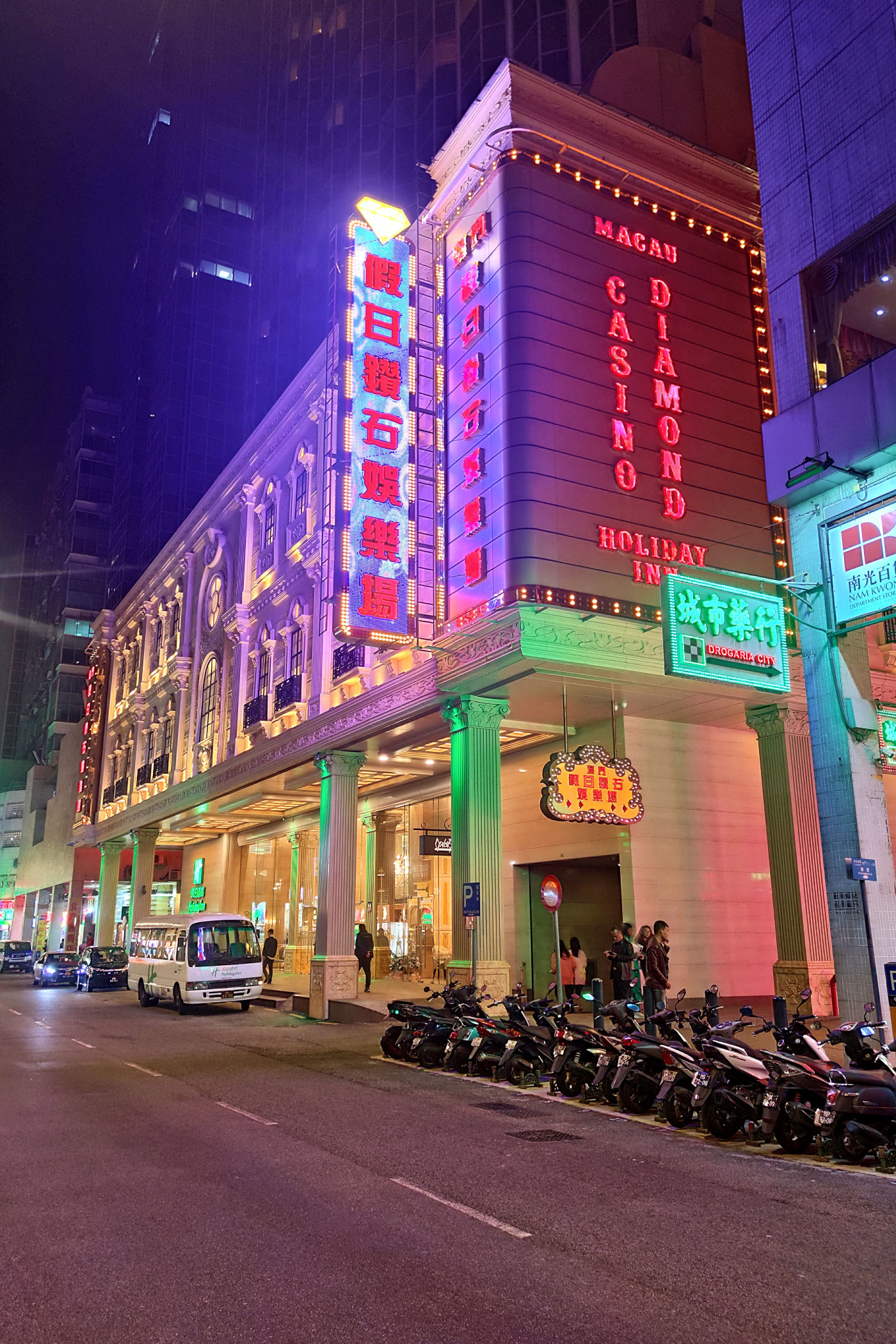 Nocą jak przystało na dzielnicę kasyn wszystko błyszczy tysiącem świateł.