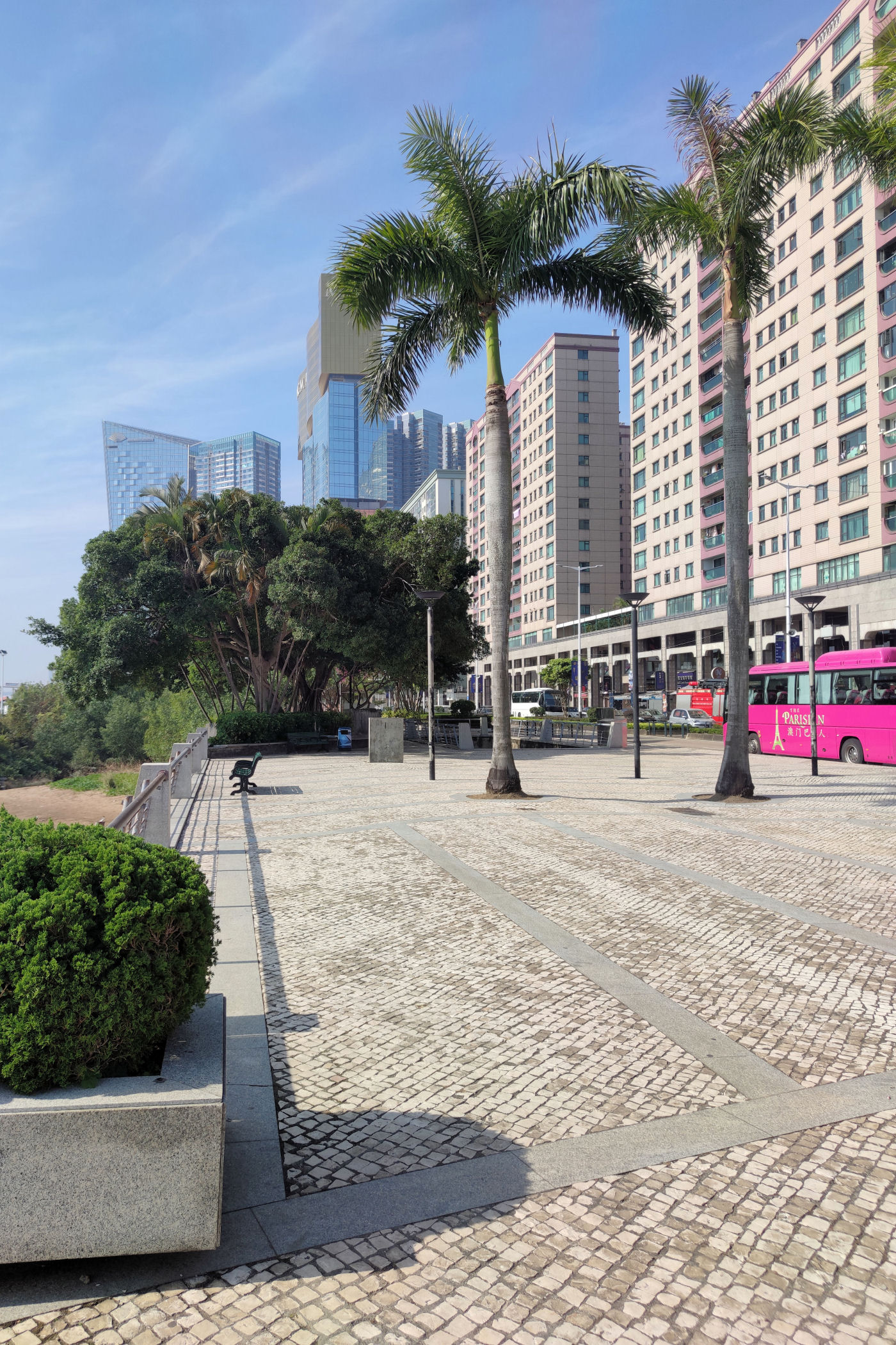 Oczywiście tego typu miejsce musi być otoczone kasynami. Od północy – Legend Palace Casino, od wschodu góruje złoty budynek Sands Macao, od południa promenadę zamyka Casino Babylon