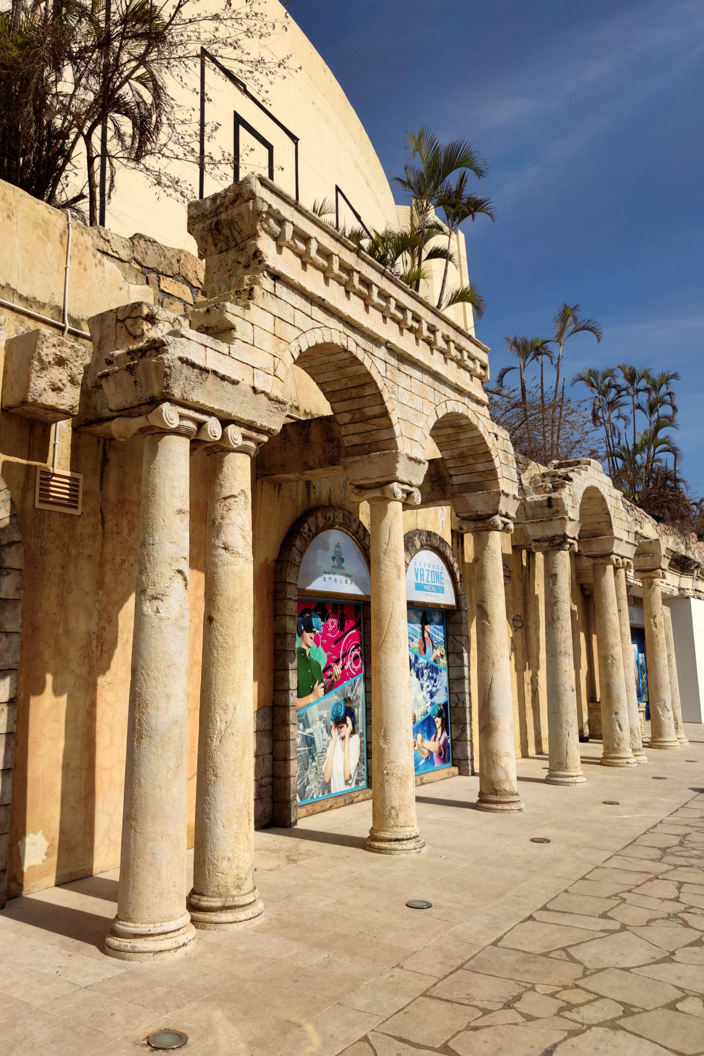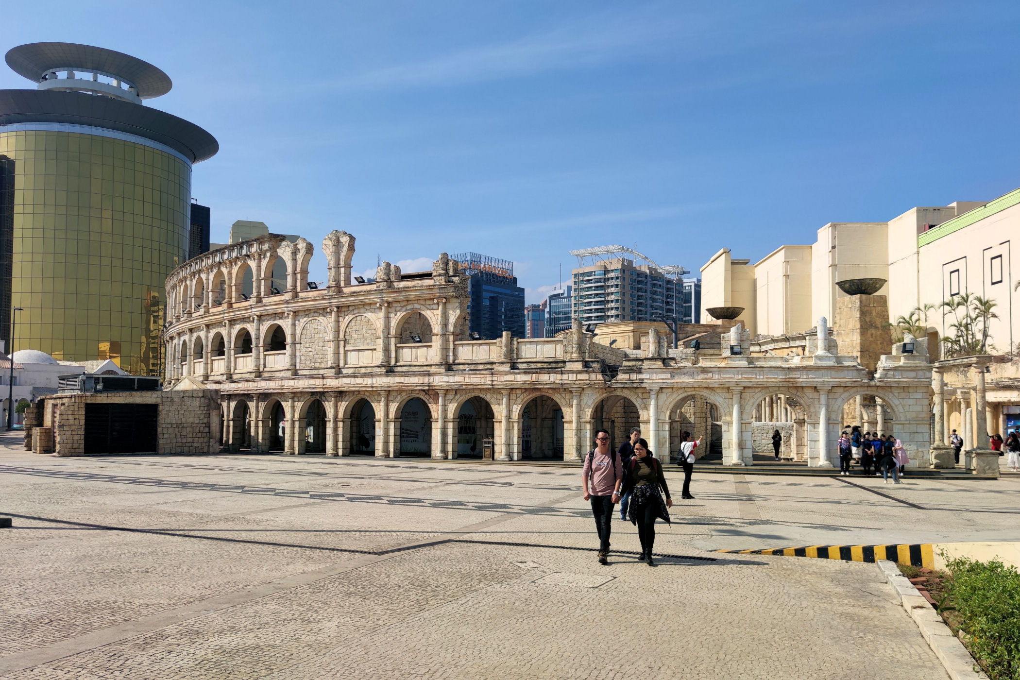 Wędrujemy więc przez antyczną dzielnicę ze słynnym rzymskim Koloseum. Potem wzdłuż ulicy pełnej kamienic nawiązujących stylem do różnych miast Europy. Kiczowate, kolorowe miejsce pełne knajpek i oczywiście turystów. Całość zbudowana została na odzyskanej od morza ziemi.