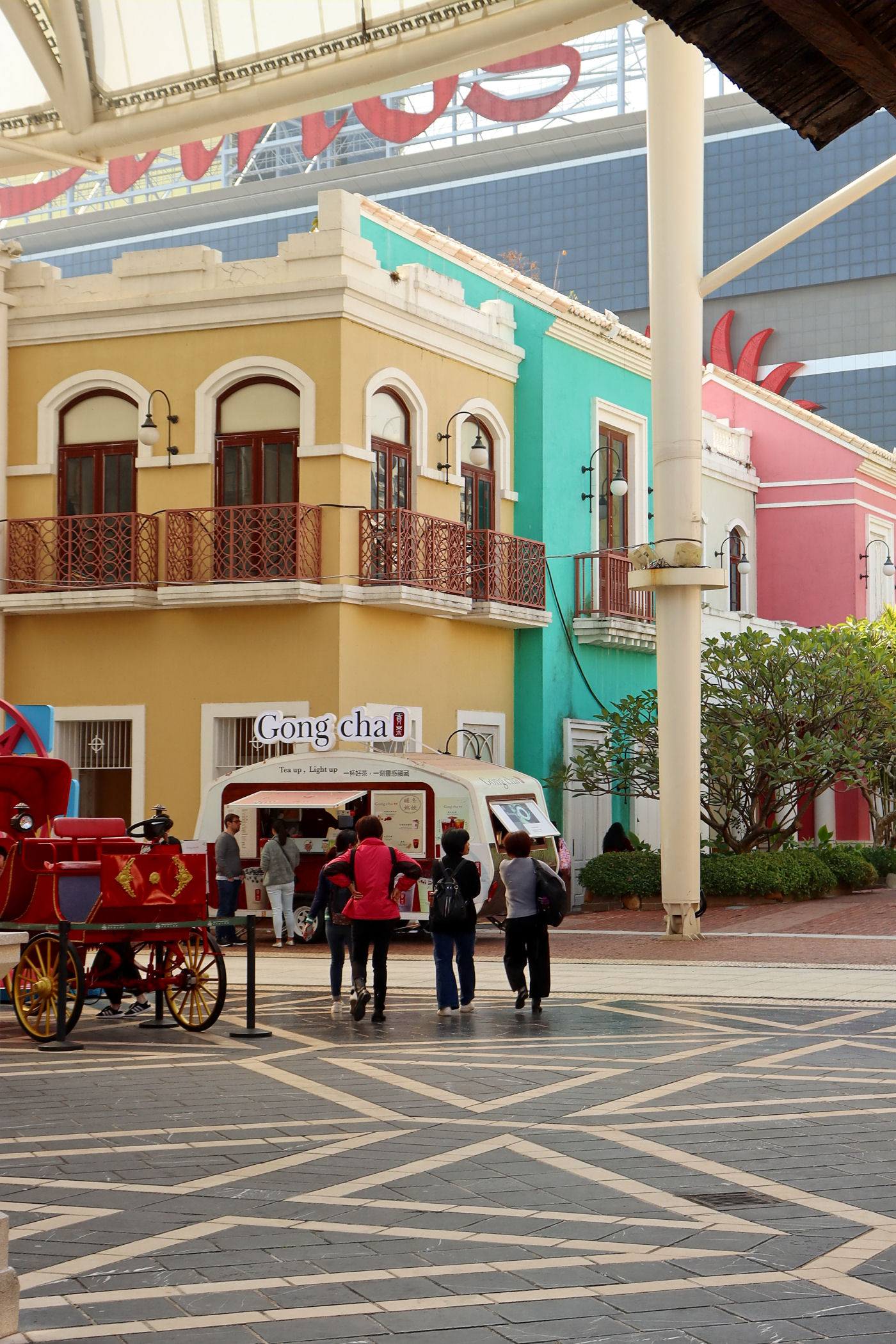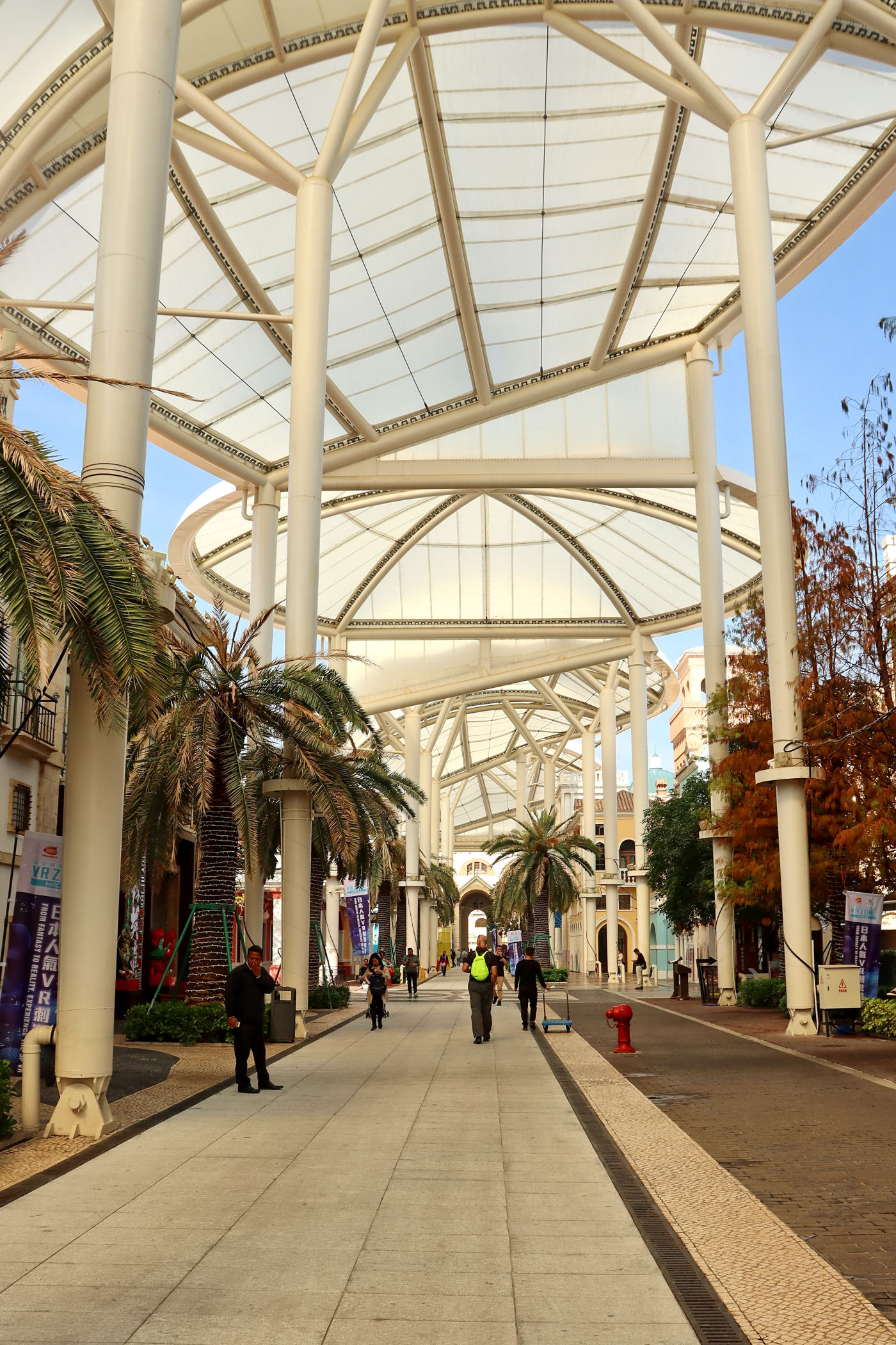 Jesteśmy na wschodnim wybrzeżu w Macau Fisherman’s Wharf. To sztucznie stworzona promenada między kasynami , która zabierze nas na spacer przez cała niemalże Europę – a czemu nie ?