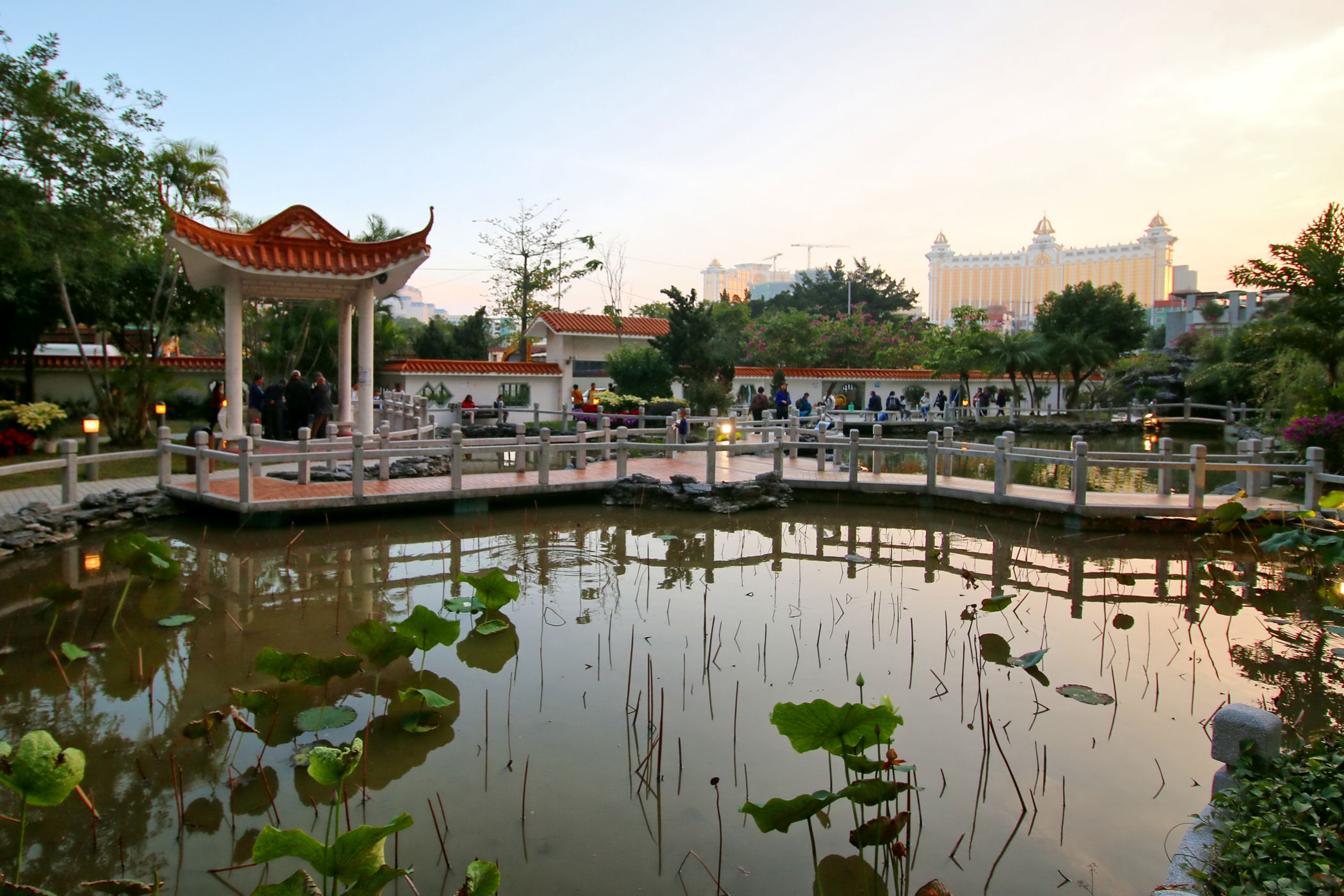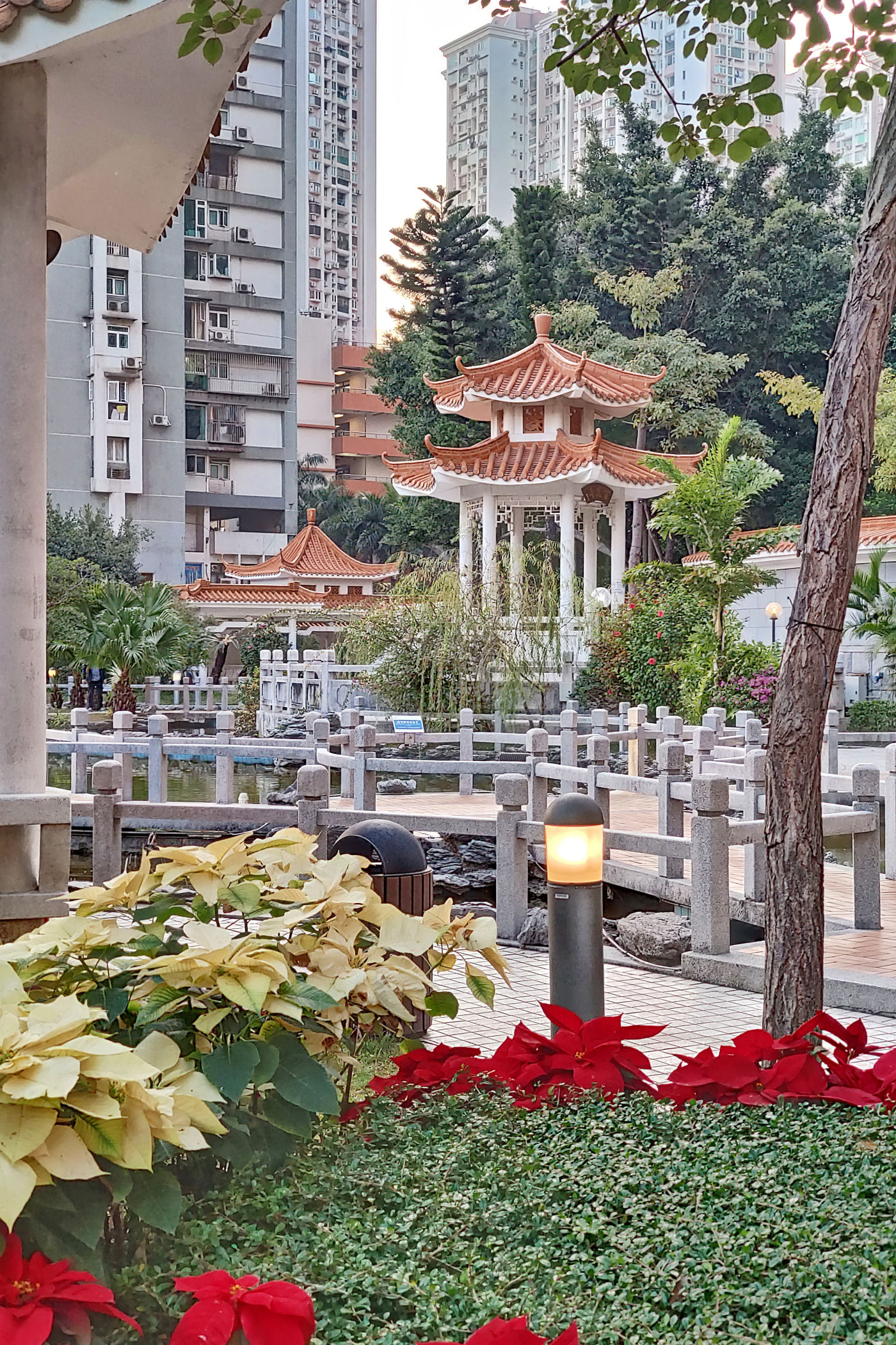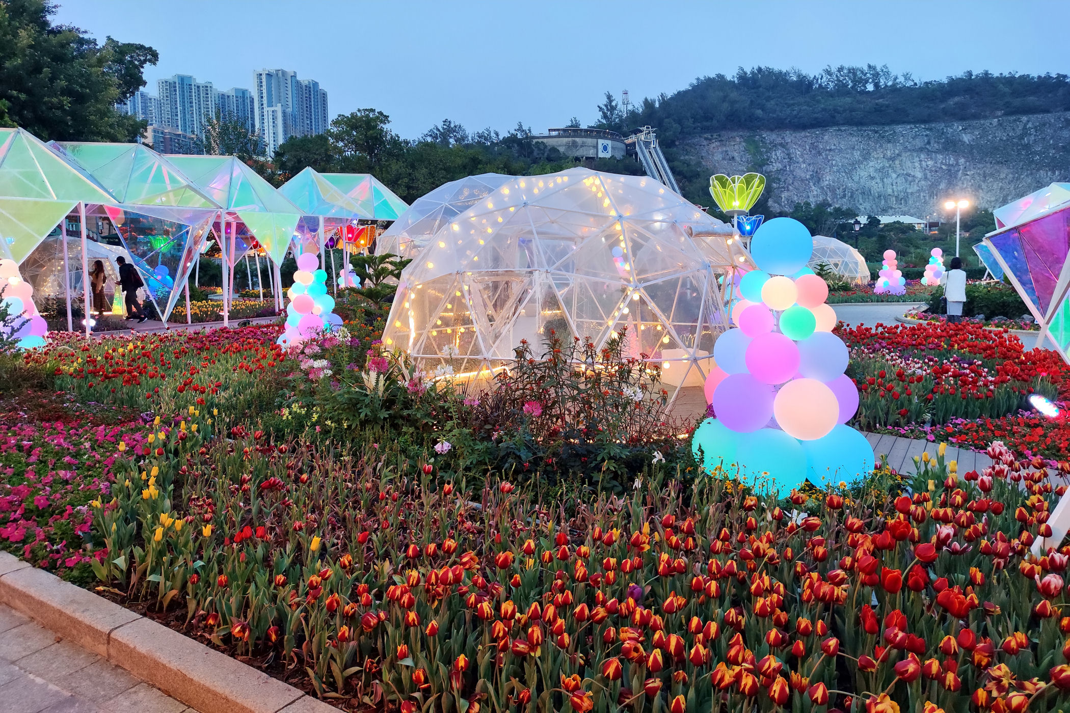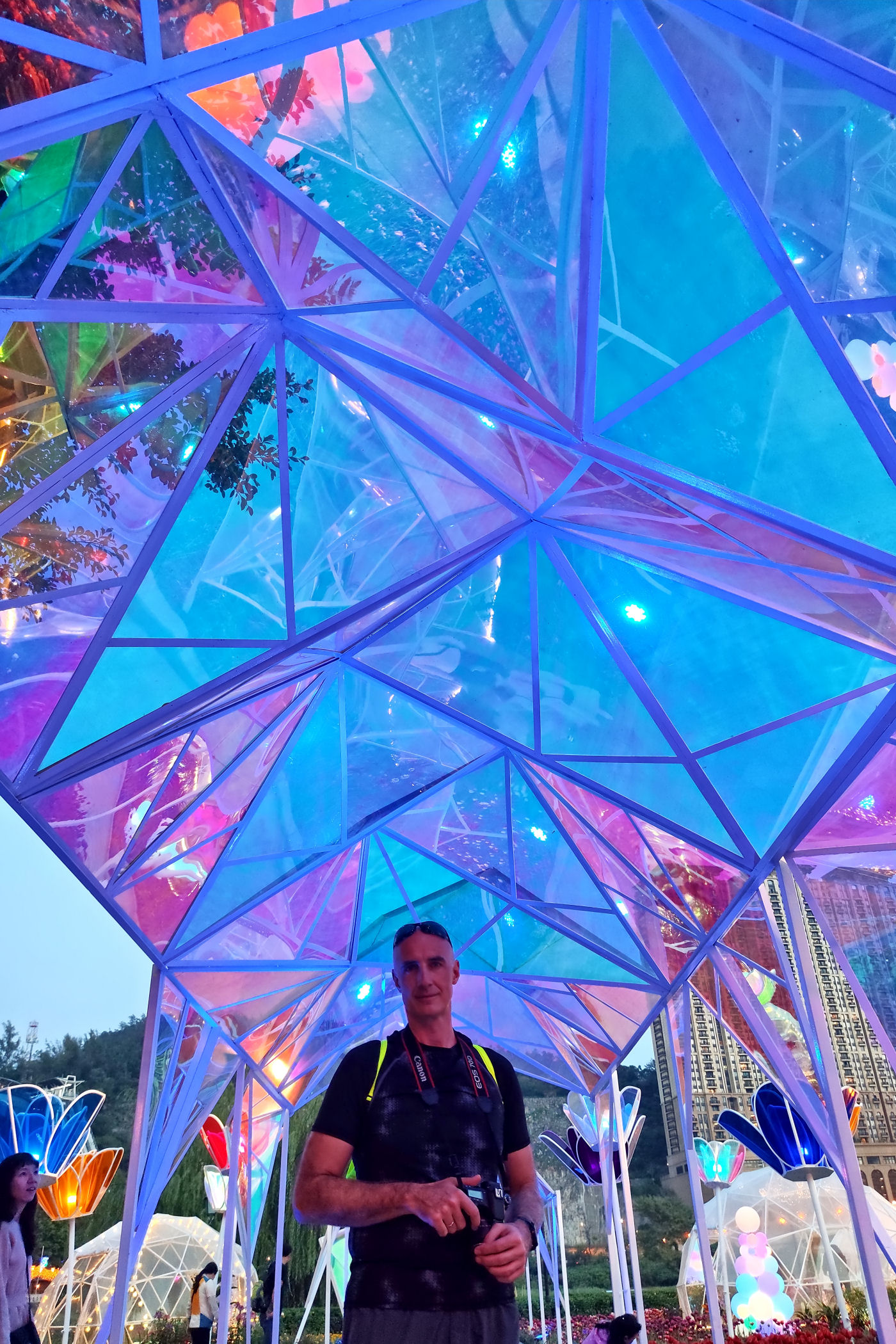 W pobliżu Starej Taipy znajduje się nowo wybudowany ( na mapach googla jeszcze go nie ma) park kwiatów. Jest okres świąteczno – noworoczny, park więc oprócz normalnej „zabudowy”, czyli Makau w miniaturce ma jeszcze dodatkowo ozdoby typowo świąteczne. Do tego kwitnące tulipany, które ze świecącymi ozdobami stanowią kiczowatą, ale bajkową całość.