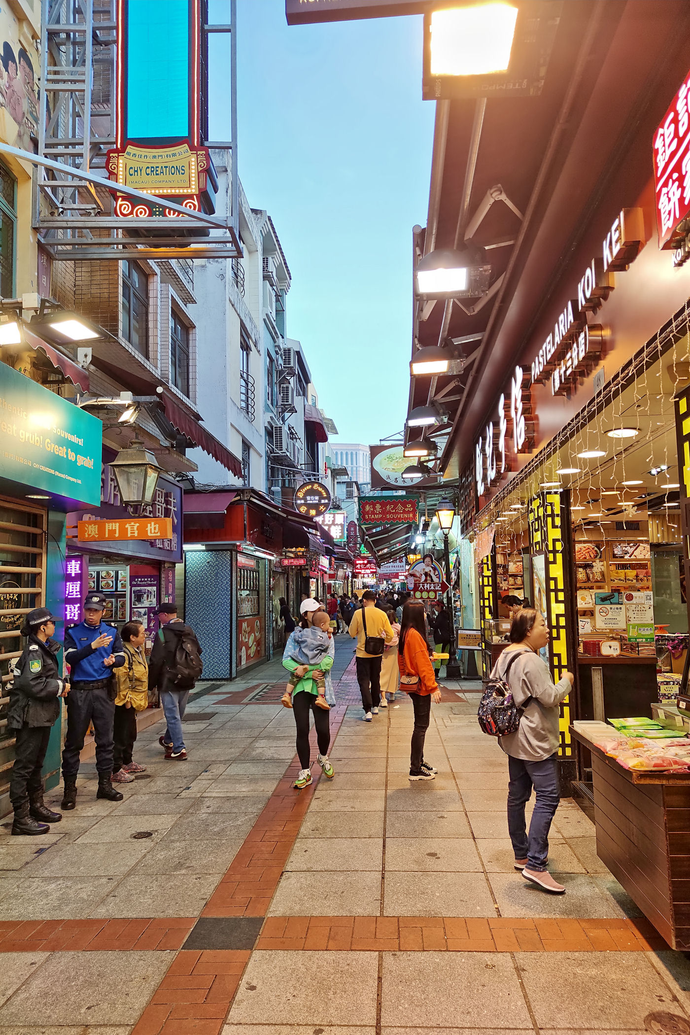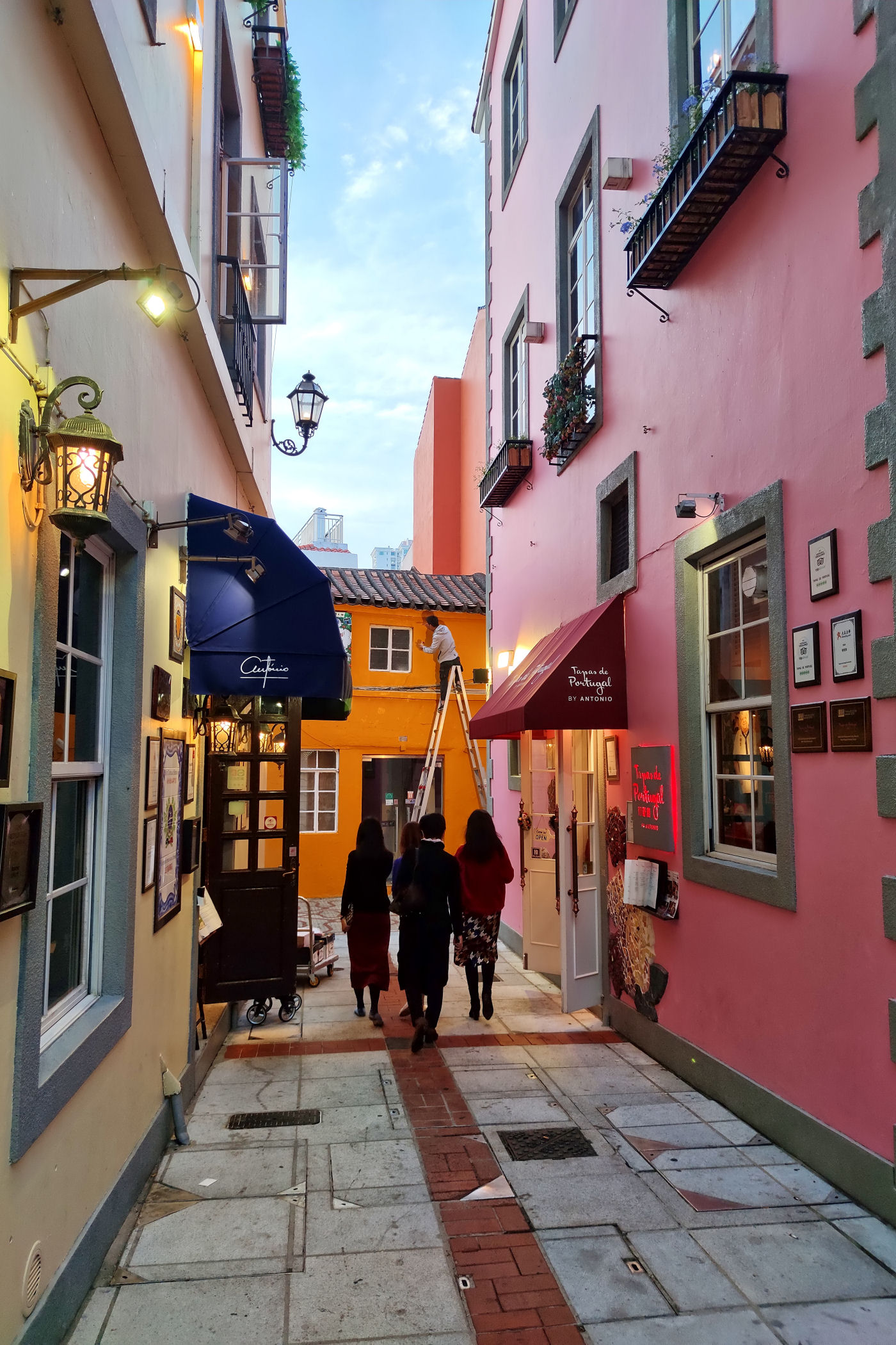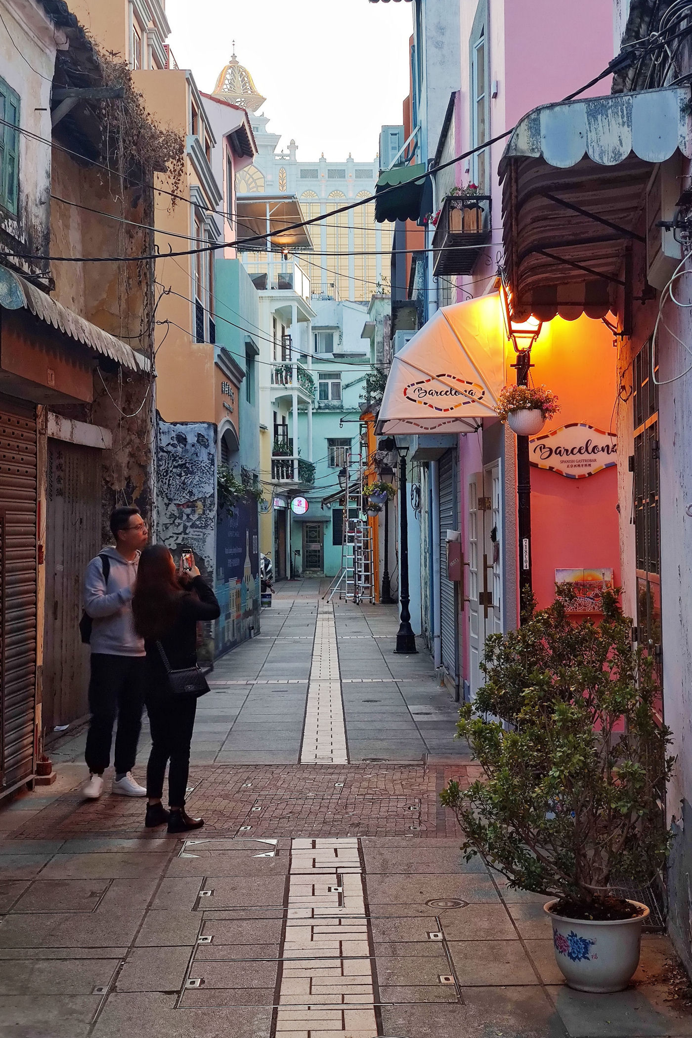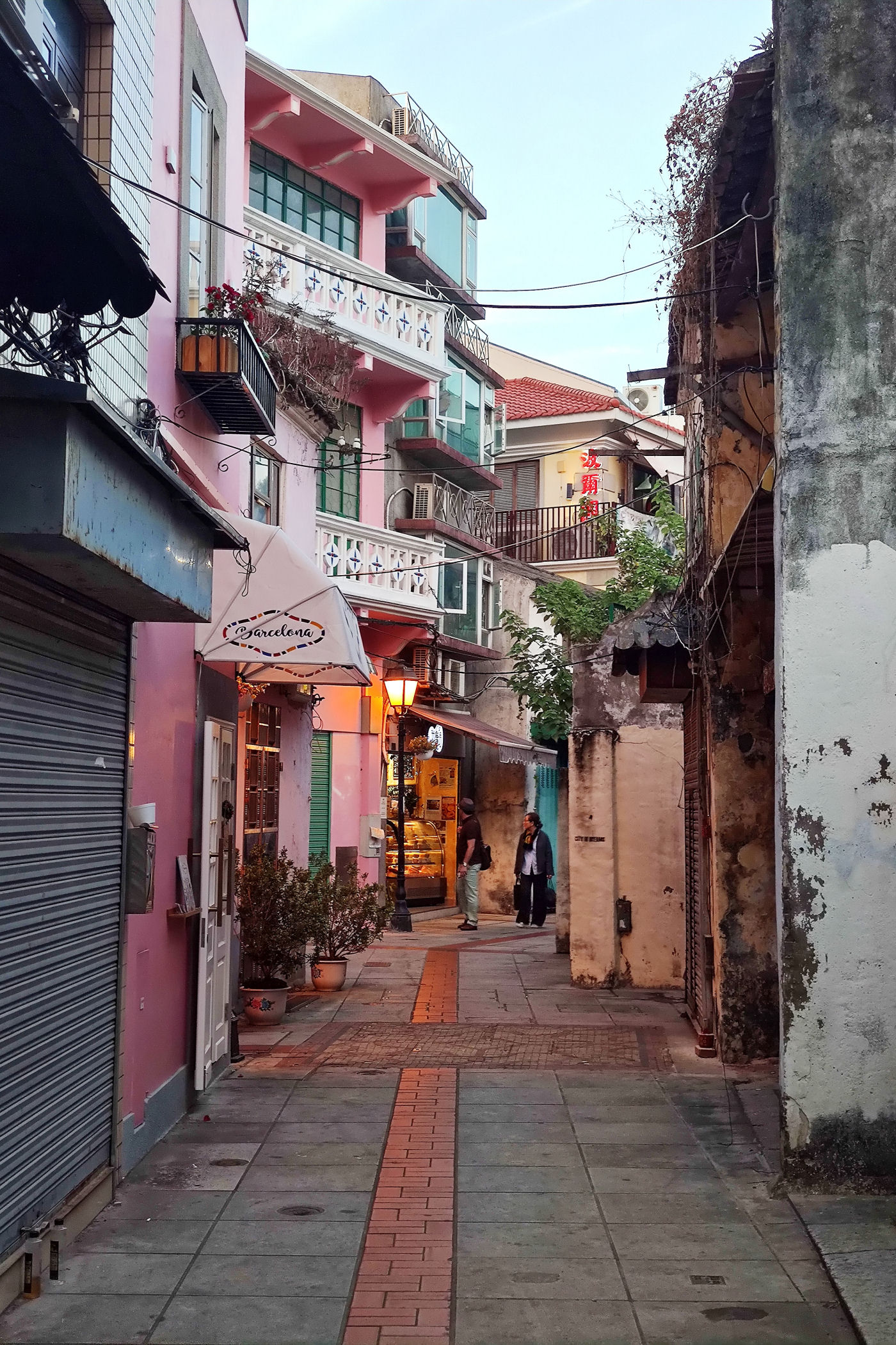 Przechodzimy dalej na południe przez Aleję Olimpica. Teraz uliczką Ponte Negra wiodącą wzdłuż kolorowych niskich już bloków dochodzimy do kompletnie innej zabudowy. To stara część Taipy jeszcze z czasów kolonialnych. Wąskie uliczki, kolorowa zabudowa, miejscami mocno zaniedbana, a do tego mnóstwo jadłodajni przy uliczkach z jedzeniem na wynos. Ta mieszanka portugalsko – chińska stanowi nie lada koloryt.