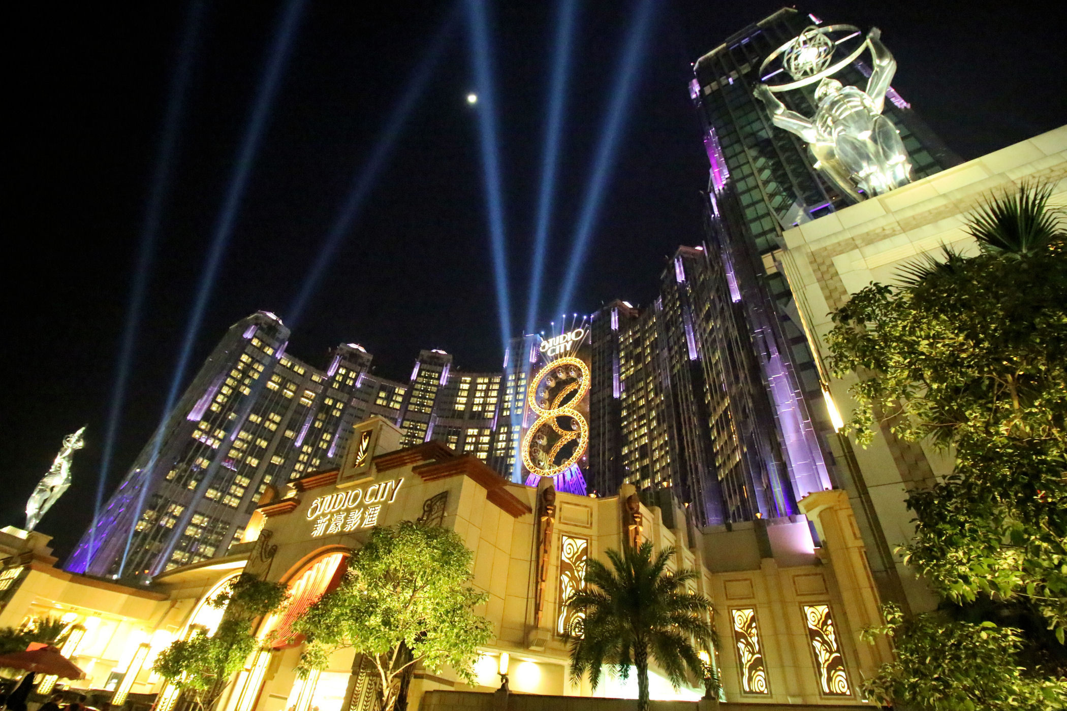 Ostatni wielki obiekt w tej okolicy to Studio City Macau, czyli kolejne centrum rozrywki z hotelem. Wewnątrz budynku znajdują się otwory, a w nich koła młyńskie – to część kolejnej atrakcji – Legend Heroes Park