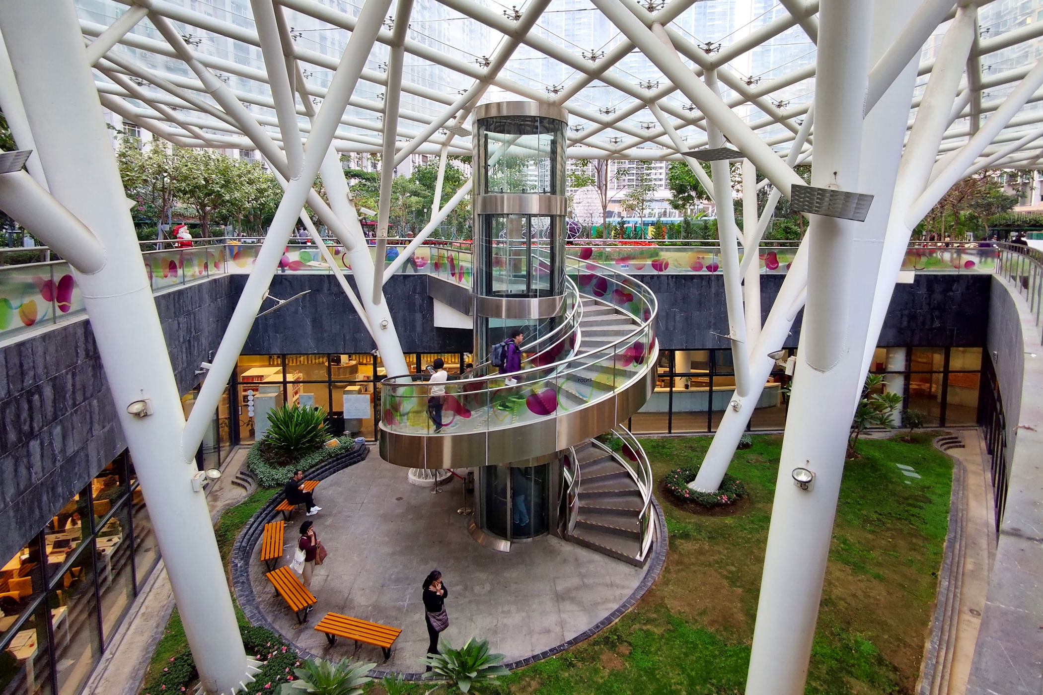 Krążąc po Parku Kwiatów dostrzegamy górujące w oddali wzgórze i prowadzącą na nie windę. Wędrujemy więc w tamtą stronę, aby z góry obejrzeć okolicę .