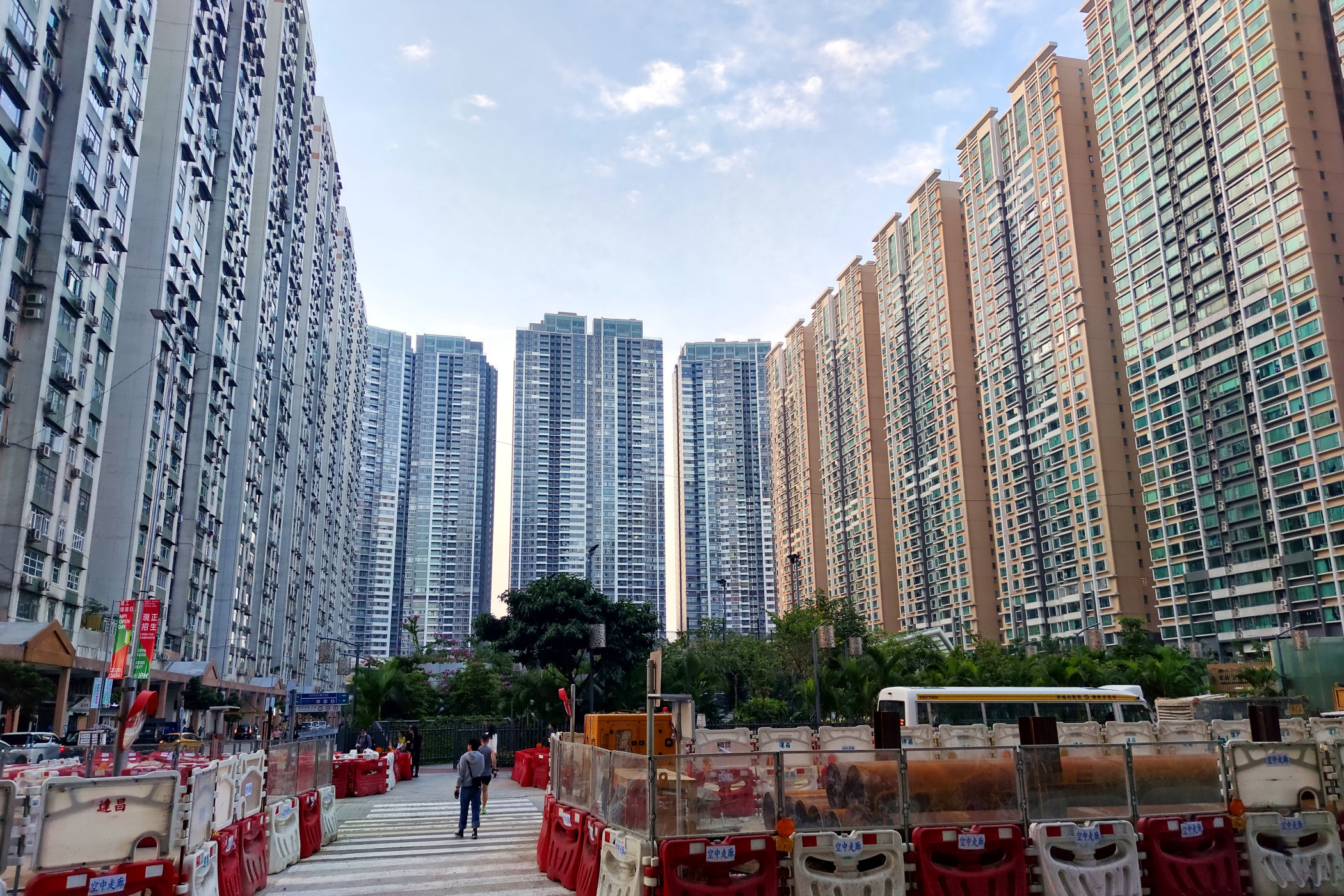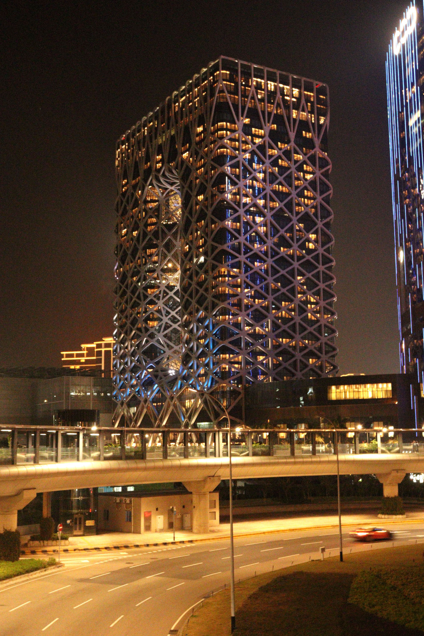 Aby przejść do nowej dzielnicy musimy przejść przez Rondo – Rotunda do Istmo. Mijamy po drodze ogromny apartamentowiec Grand Royalton, One Grantai. Nad rondem została zbudowana kładka, a widać z niej całą nowoczesną zabudowę okolicy i nowo stworzoną dzielnicę rozrywki COTAI.