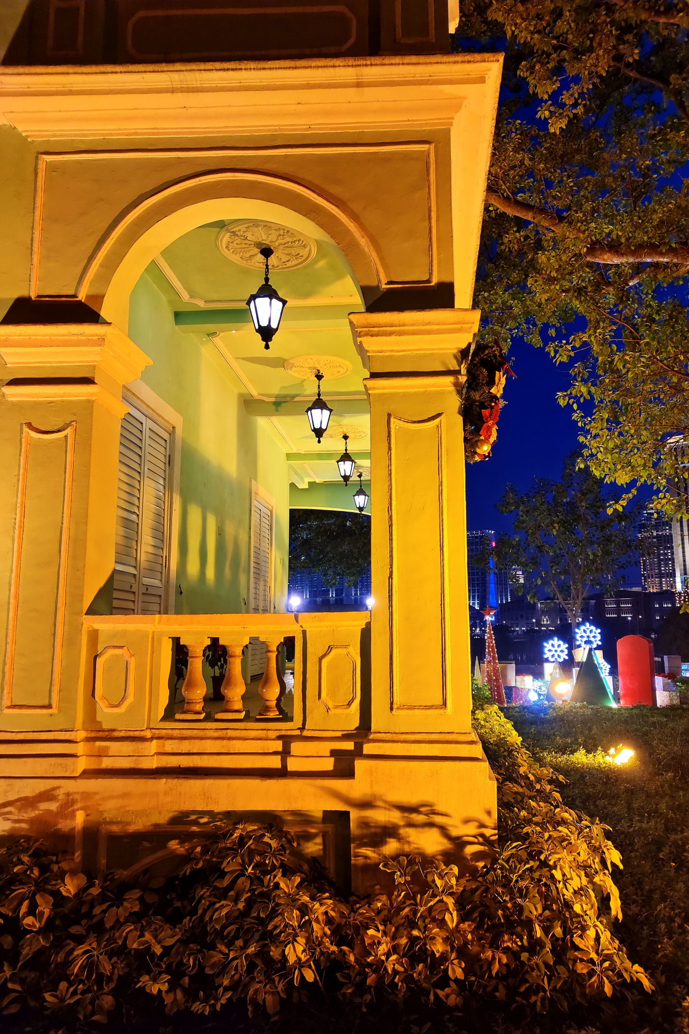 Tuż obok parku kwiatów znajduje się ciekawa zabudowa. Kościółek, a za nim 5 domów. To kompleks pięciu rezydencji wzniesionych początkiem XXw. w stylu typowo portugalskim. Domy mają kolor zielony, są pięknie podświetlone i stoją wzdłuż promenady przy sztucznie utworzonym jeziorze – pozostałym po połączeniu wysp. Po stu latach od budowy uznane zostały za zabytki i utworzono w nich muzea: