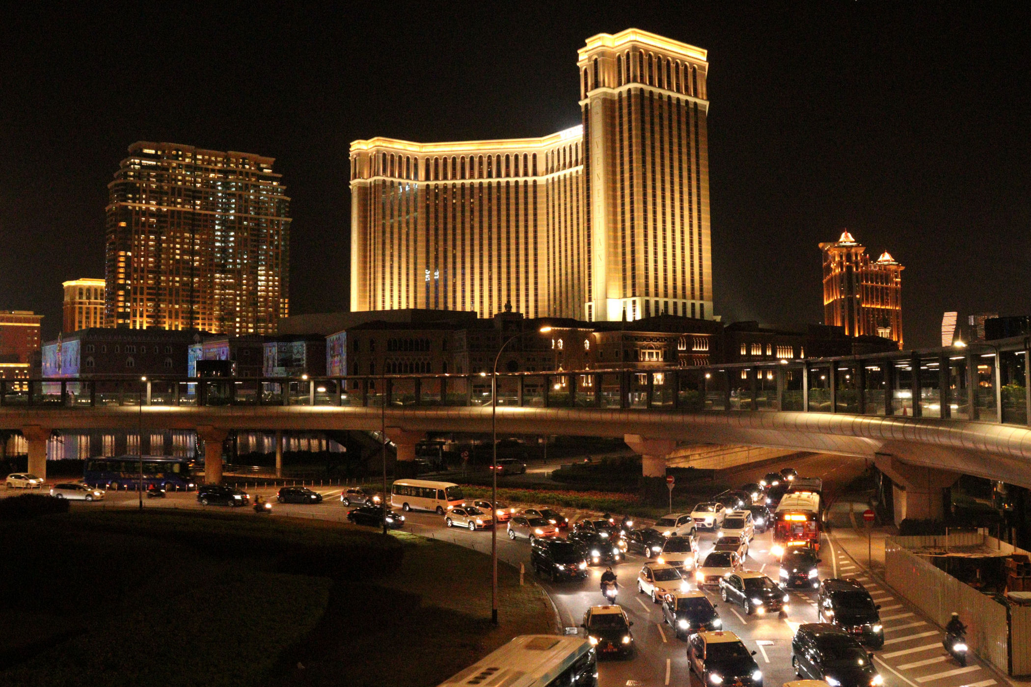 Głowa boli od tej ilości świateł i atrakcji. Powoli opuszczamy tą część Makau. Aby wrócić do autobusu musimy przejść z powrotem aż do starej Taipy. Po drodze mijamy jeszcze jeden ogromy kompleks hotelowo – rozrywkowy. Najlepiej widać go jednak od drugiej strony.