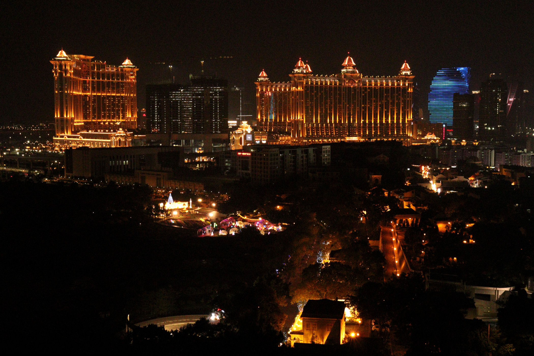 Centralna część obecnej wyspy to tak na prawdę usypany sztucznie ląd łączący Wyspę Taipa i Coloane. Wchodząc na jej teren , wchodzimy tak na prawdę do innego świata. Świata sztucznego jak ten ląd. Tu mamy prawdziwe Las Vegas . Ogromne kasyna, hotele i miejsca rozrywki, a wszystko to podświetlone z grzmiącą muzyką.