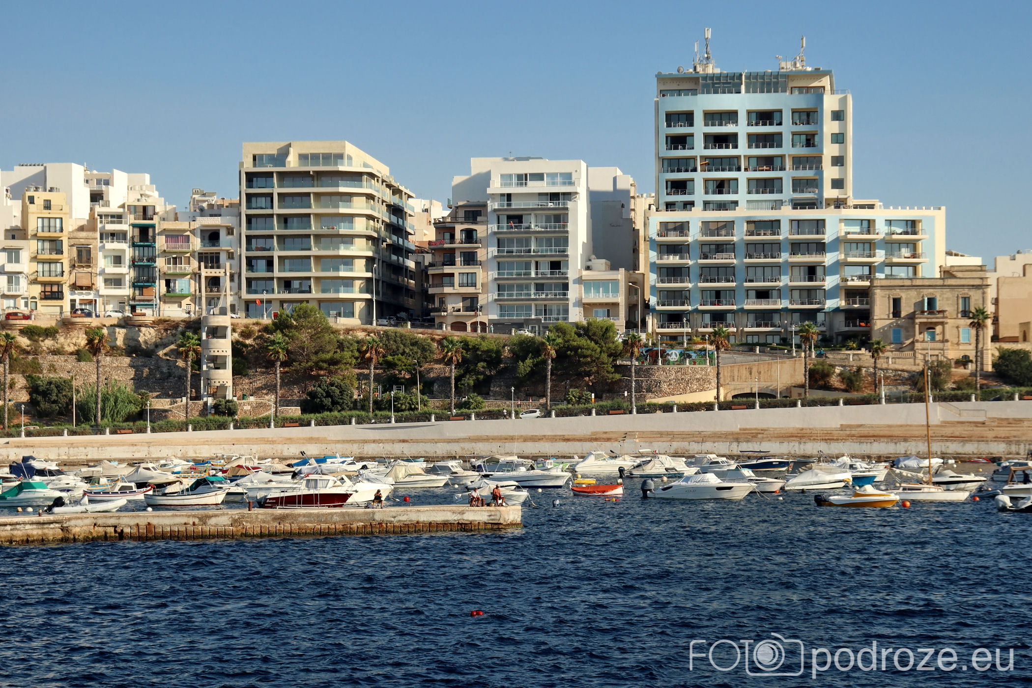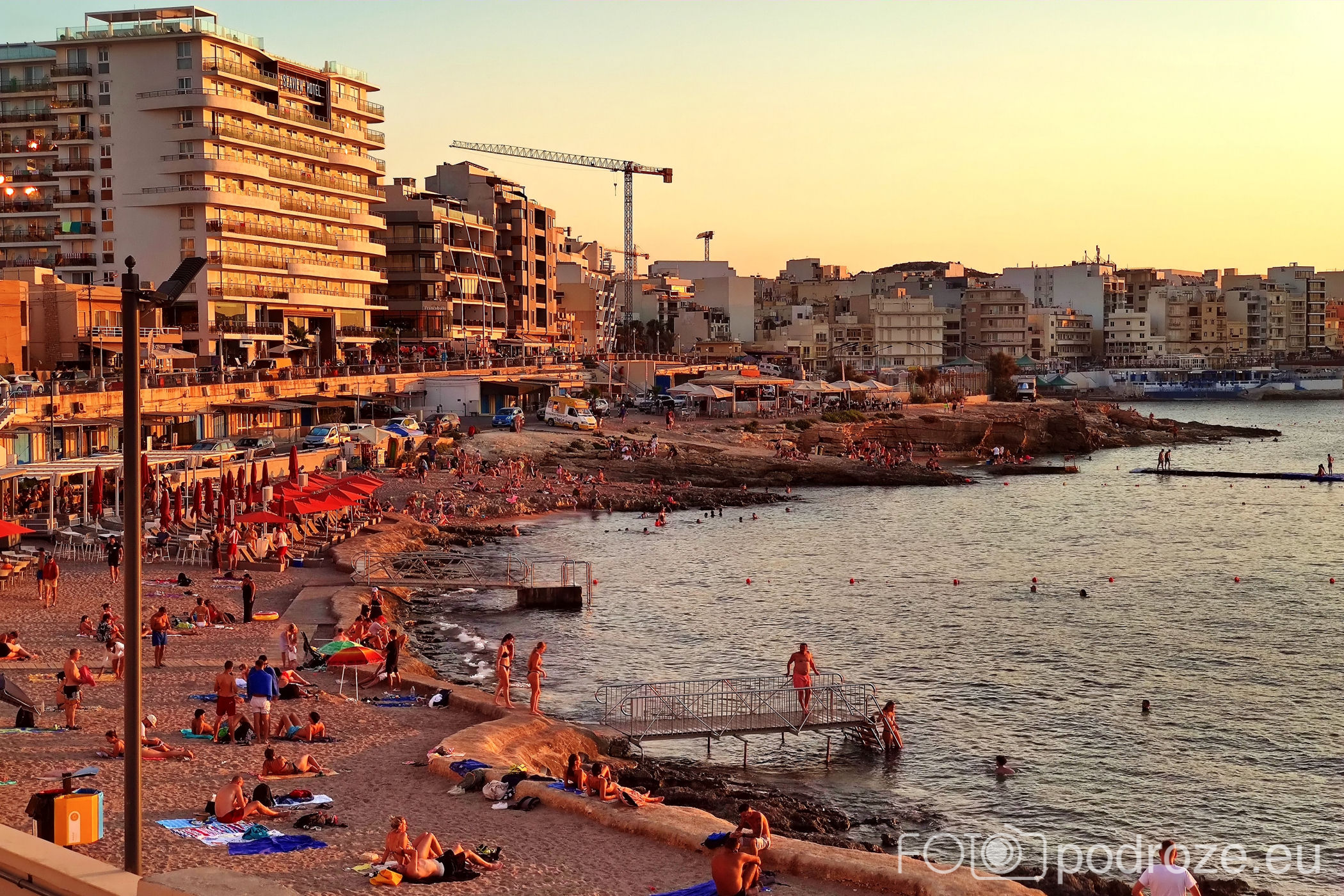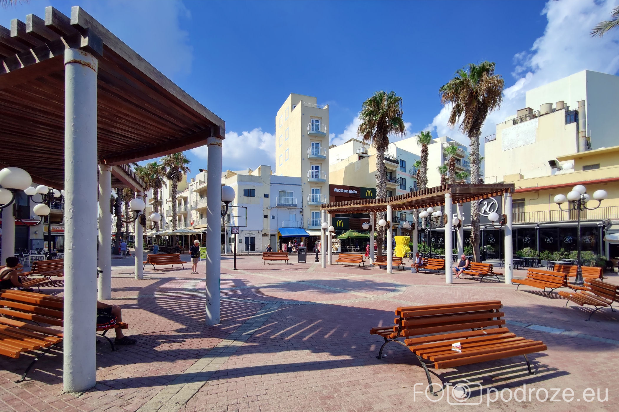 Jedyna ciekawa, bo szeroka promenada znajduje się w północnej części miasta. Tu mamy wielki plac zabaw dla dzieciaków, tuż za nim akwarium (o nim za chwilę), kilka knajpek, a tuż za miejsce rozrywki dla młodych, czyli klub z basenem, w którym wieczorami odbywają się imprezy. To nieczynne zimą Café del Mar Malta, latem z długą kolejką oczekujących przed wejściem .