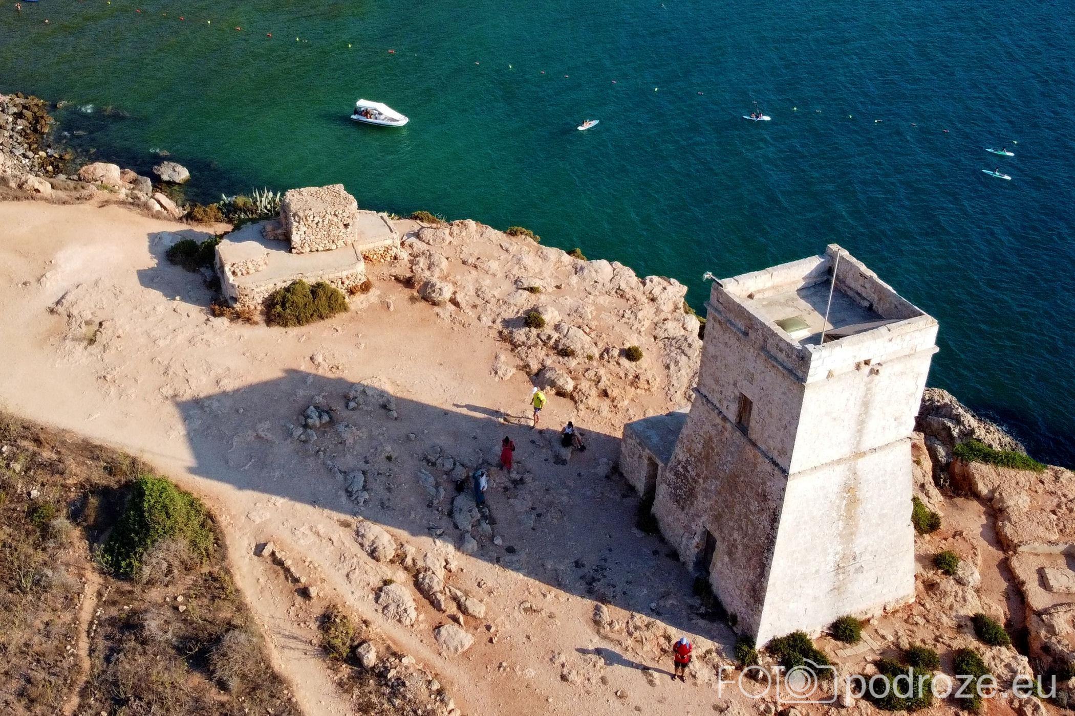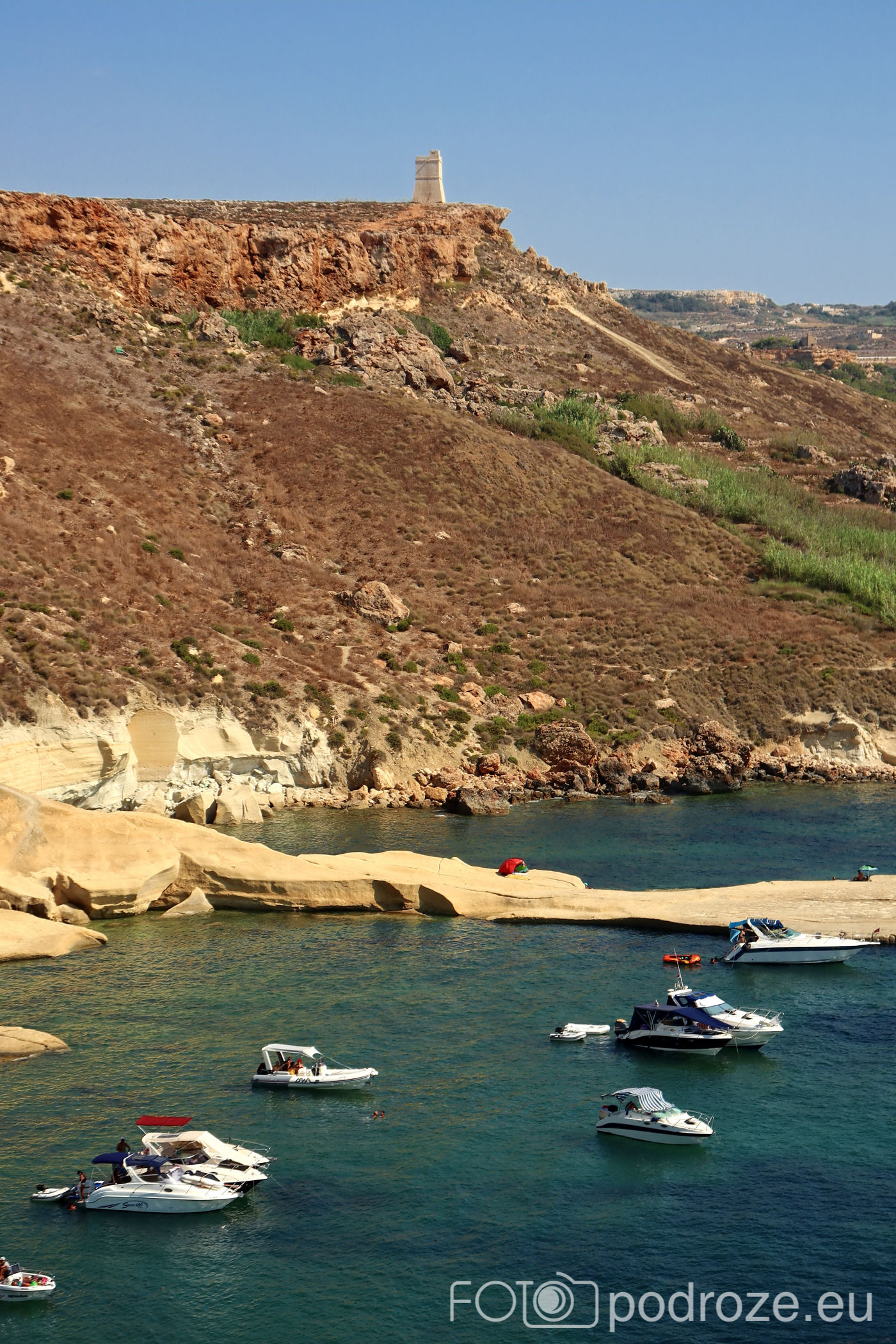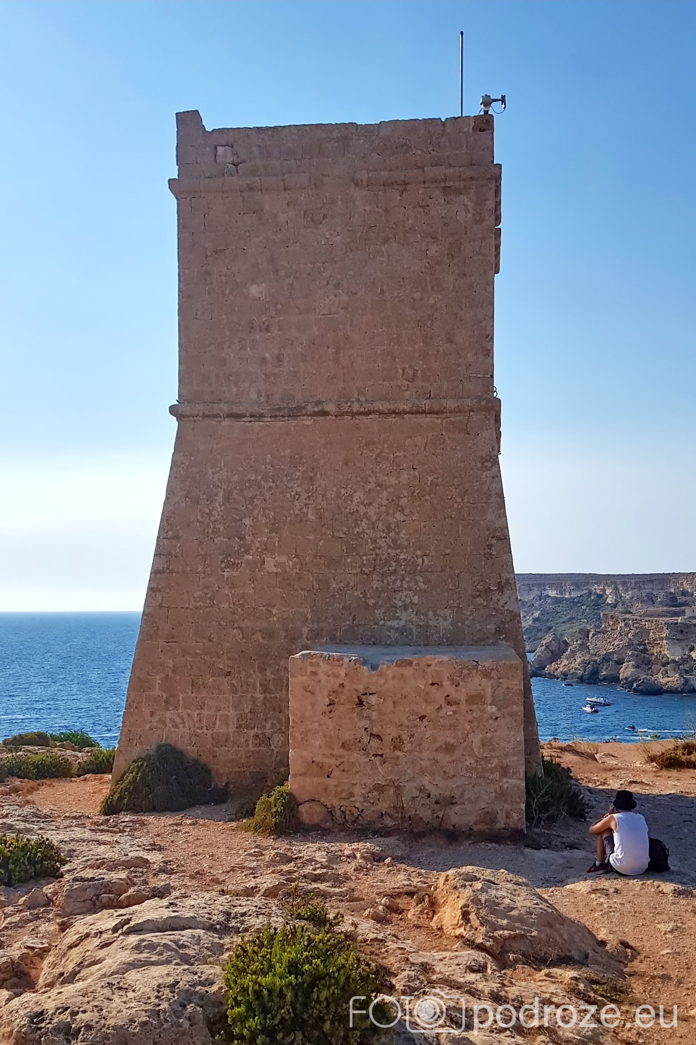 Powyżej klifów i Zatoki Qarraba znajduje się jeszcze jedna wieża obronna. Prowadzi do niej ścieżka od góry, ale my już tam nie wędrowaliśmy. To widok na wieżę z punktu widokowego .