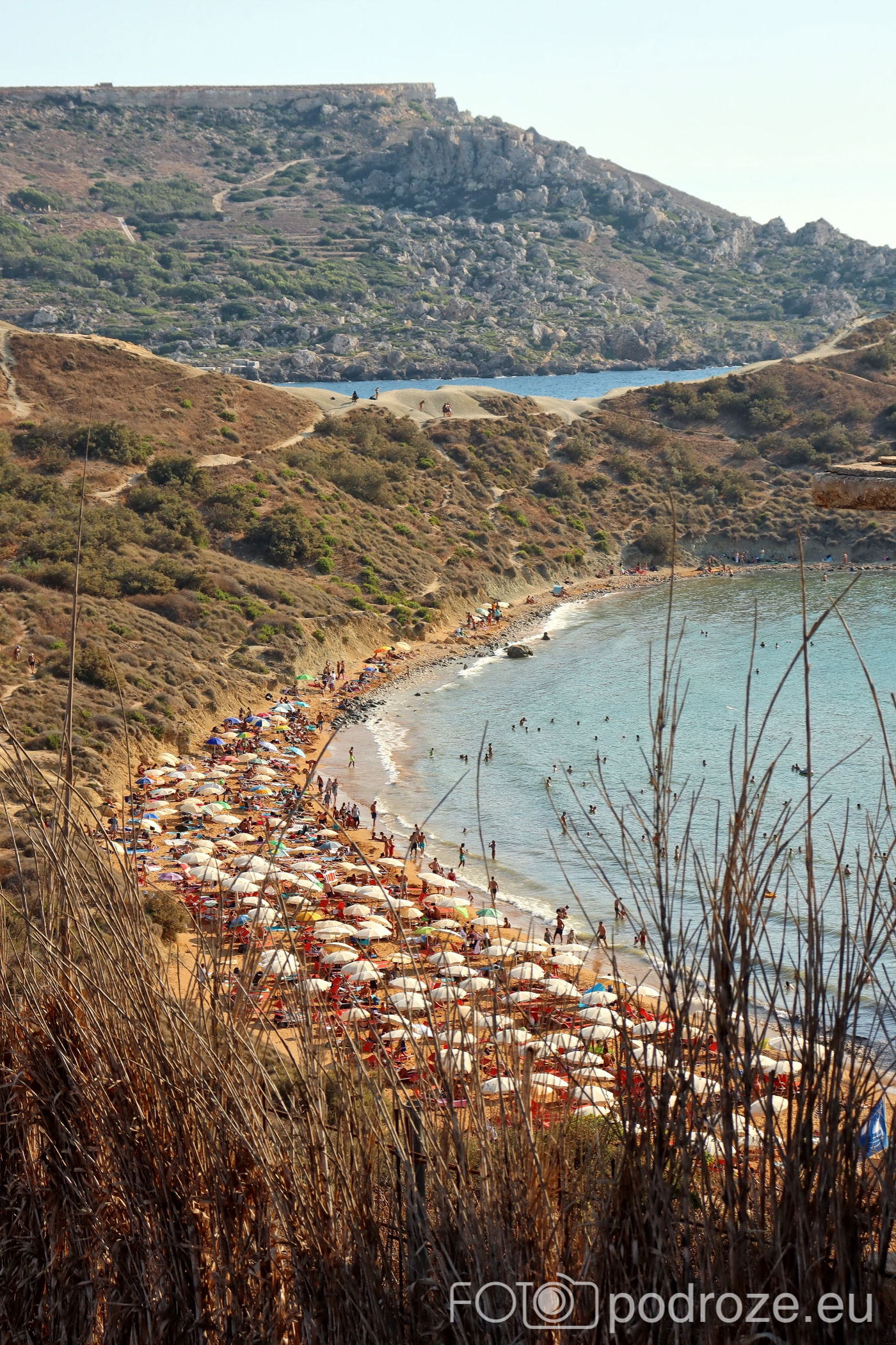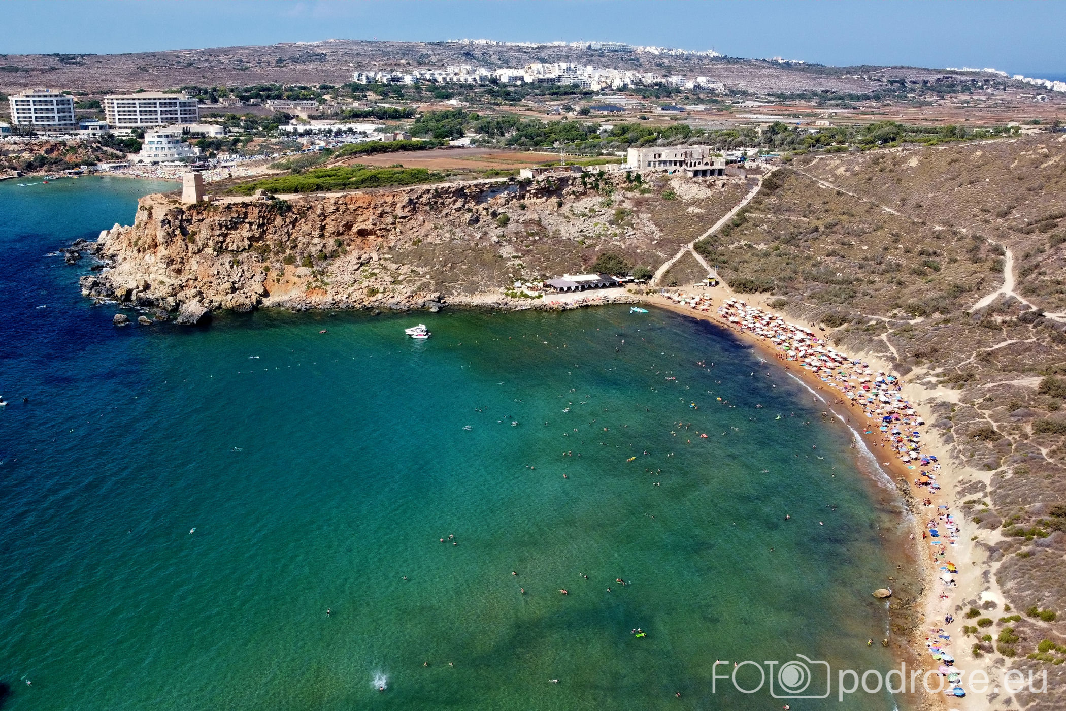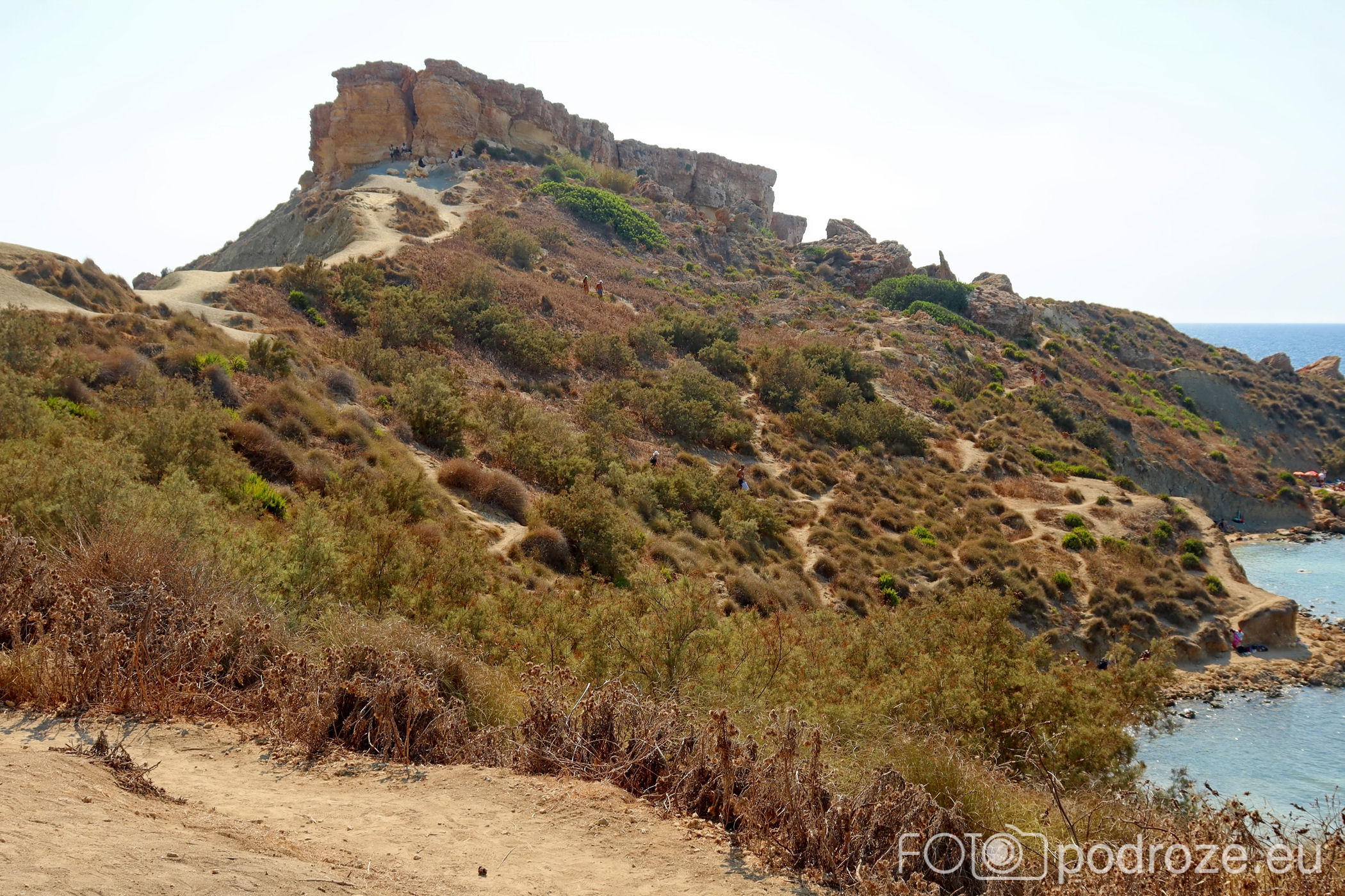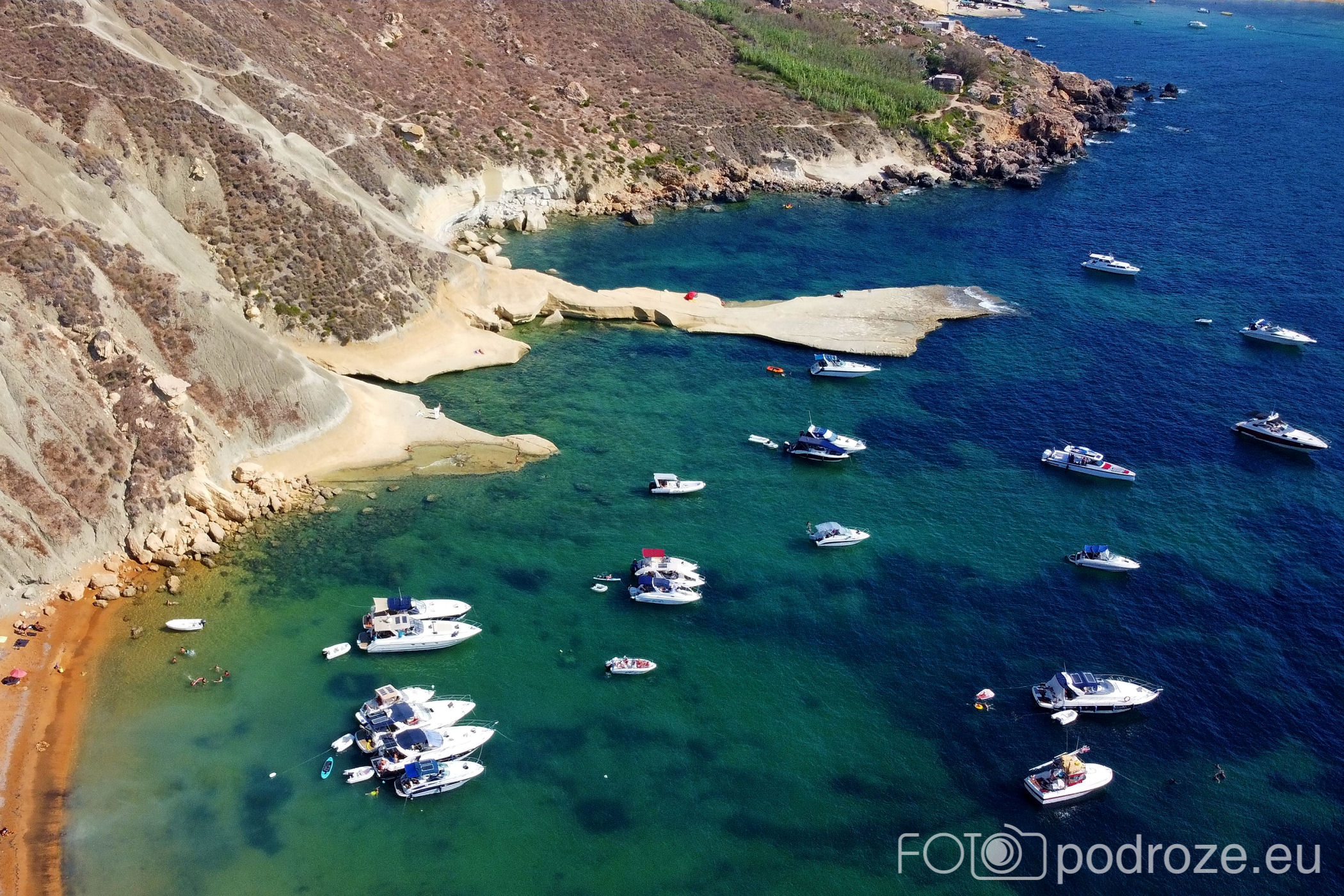 Zatoka Golden Bay to podobno jedna z najpiękniejszych plaż na wyspie. A to dzięki osłoniętym brzegom schowanym za górzystym wybrzeżem i pochyłym klifom oraz przede wszystkim dzięki piaskowi , który nie jest tu zbyt często spotykany. Zatoka ma swój parking i przystanek autobusowy oraz kompleks hotelowy – Aquamarine Watersports Golden Bay Malta. Ma jak już wspominałam szeroką linię brzegową z miękkim złotym piaskiem i spokojniejsze wody niż w innych rejonach. Na plaży można wypożyczyć leżaki i parasole, a na miejscu są też kawiarnie i restauracje. My do tej zatoki nie schodziliśmy, ale miejsca, które zamieszczam są robione z cypla na południe od niej.