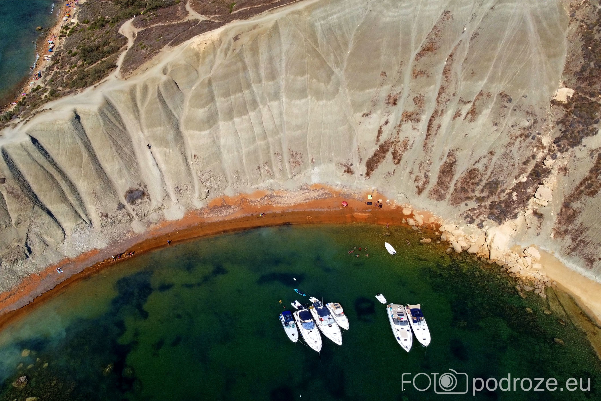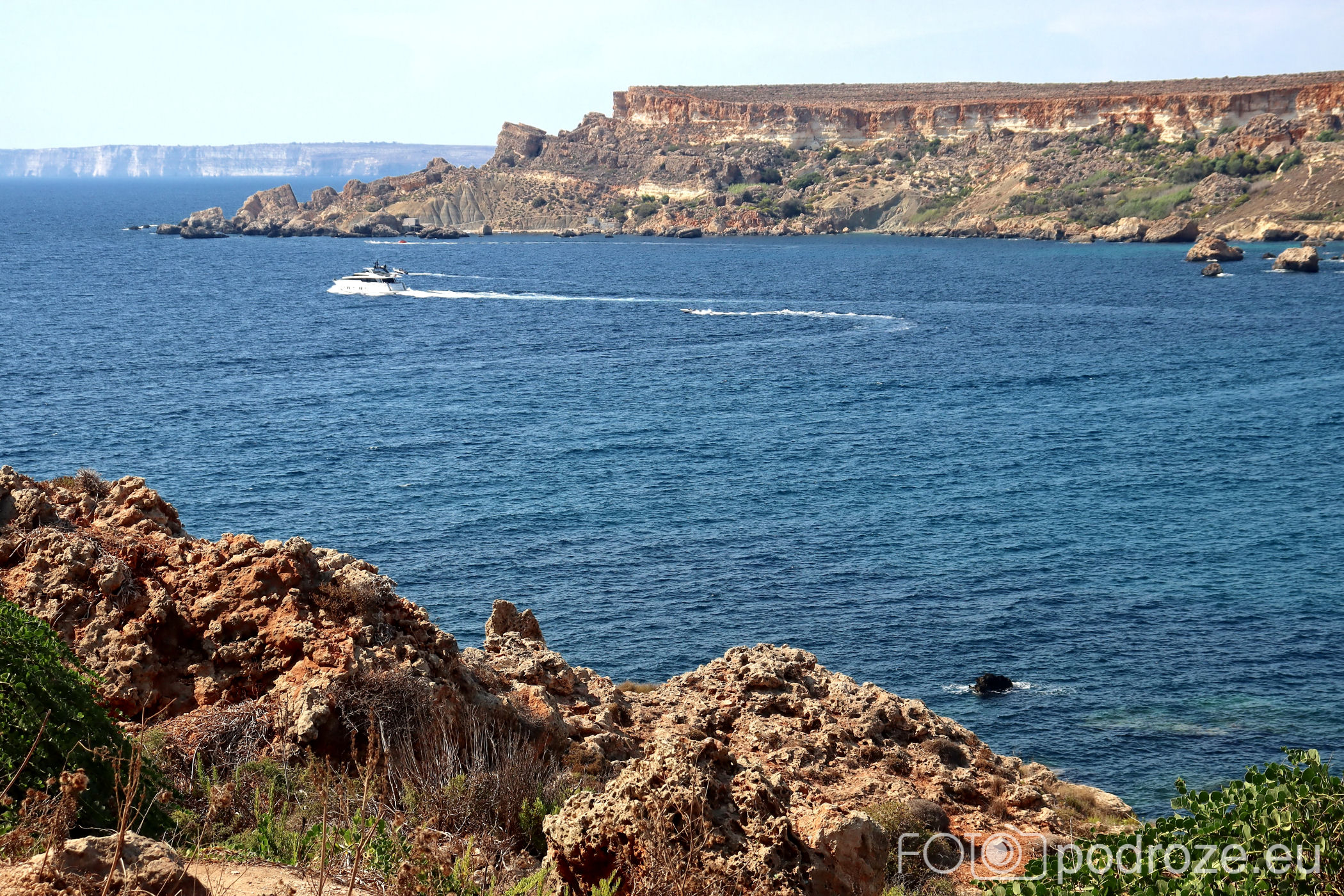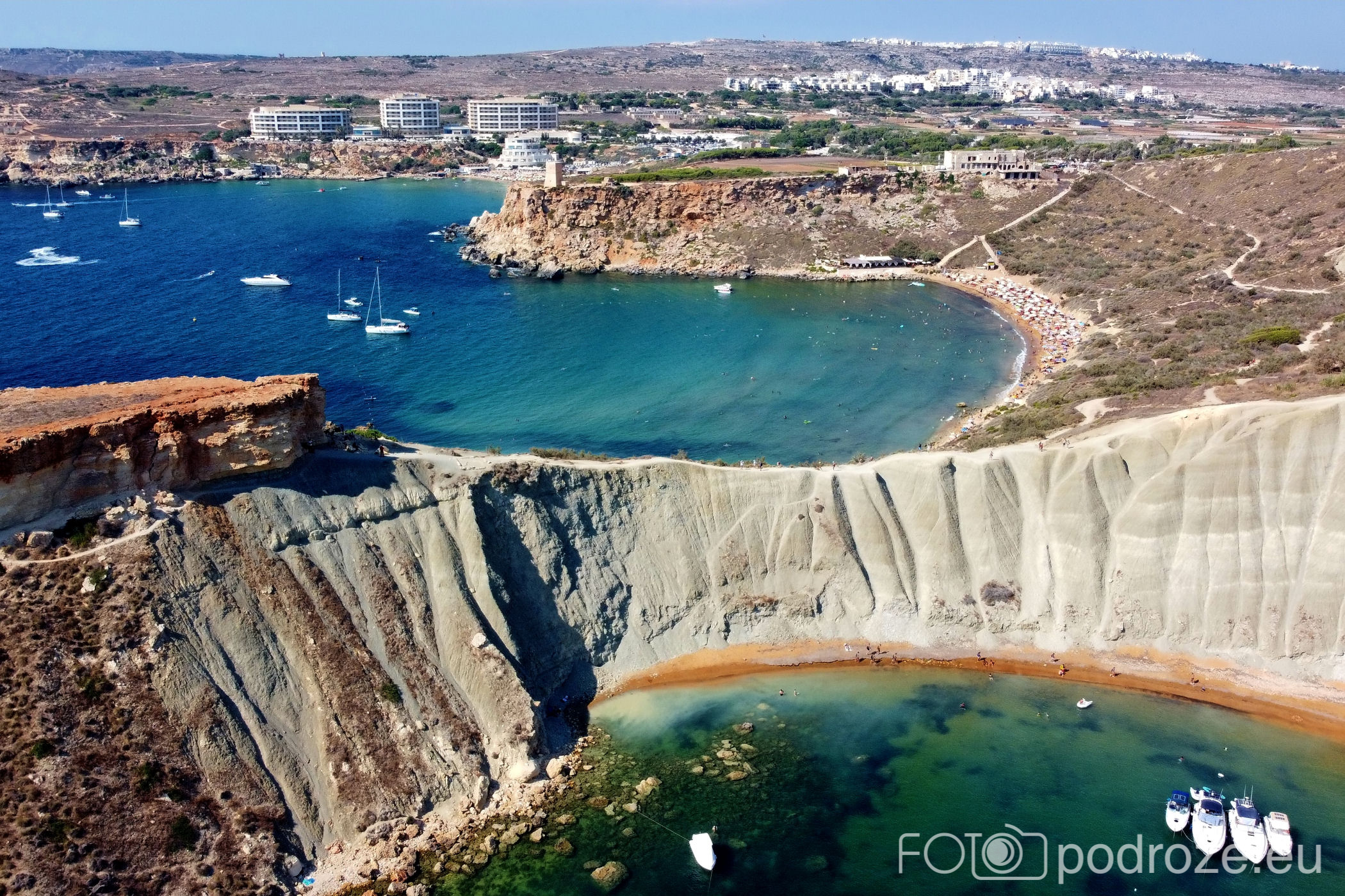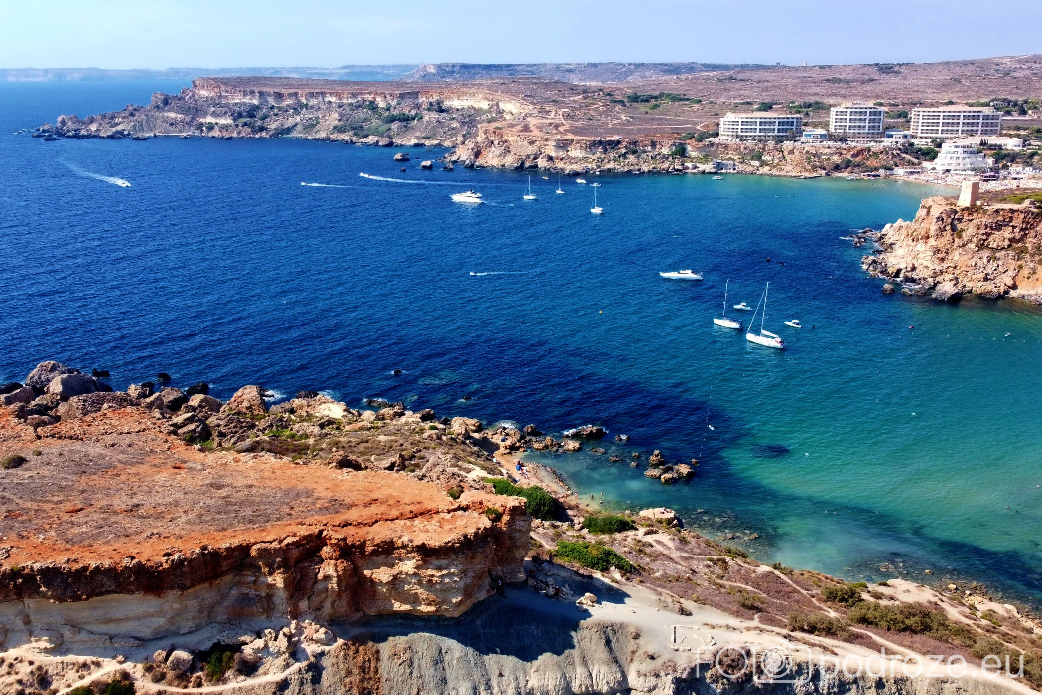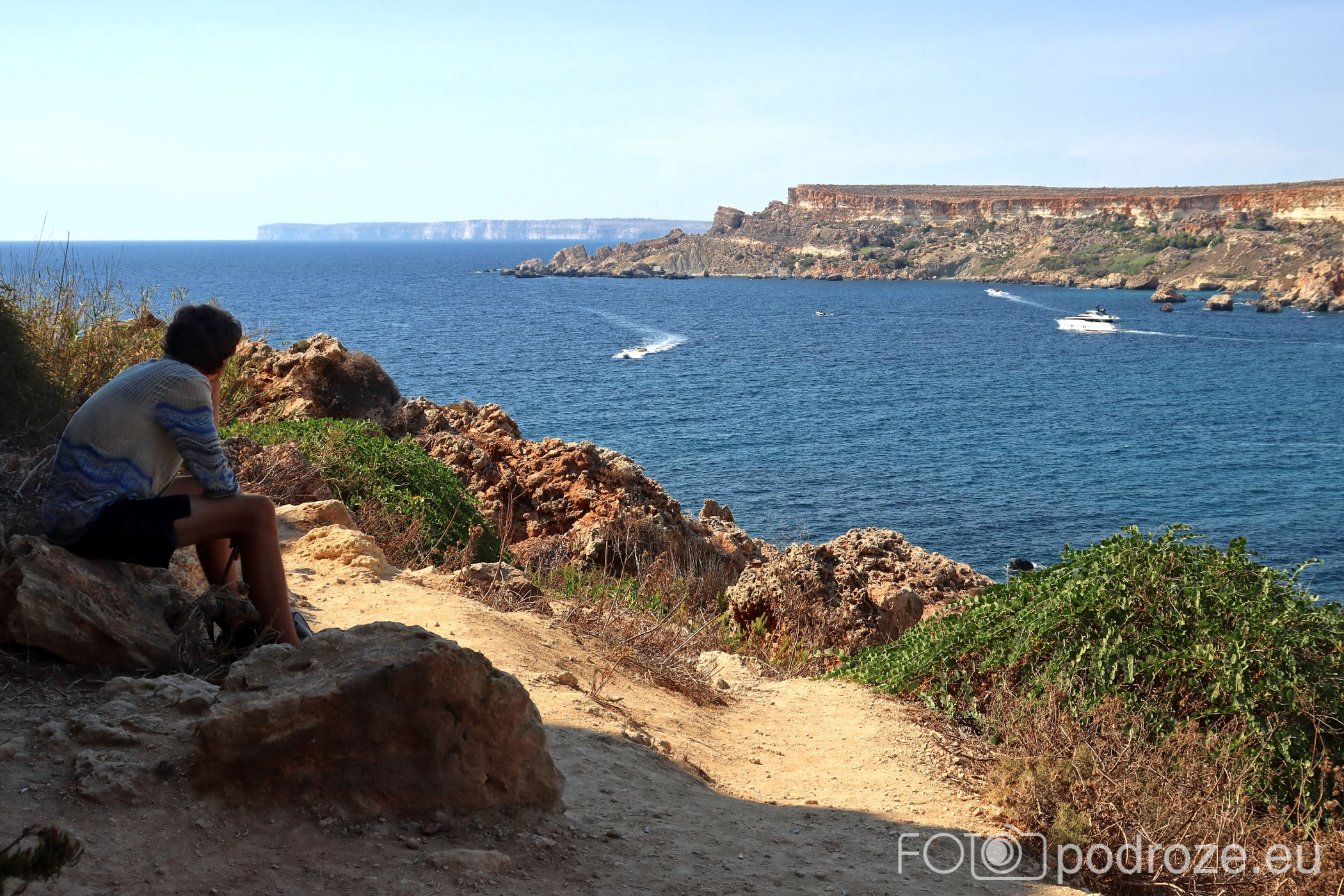 Zatoka Golden Bay to podobno jedna z najpiękniejszych plaż na wyspie. A to dzięki osłoniętym brzegom schowanym za górzystym wybrzeżem i pochyłym klifom oraz przede wszystkim dzięki piaskowi , który nie jest tu zbyt często spotykany. Zatoka ma swój parking i przystanek autobusowy oraz kompleks hotelowy – Aquamarine Watersports Golden Bay Malta. Ma jak już wspominałam szeroką linię brzegową z miękkim złotym piaskiem i spokojniejsze wody niż w innych rejonach. Na plaży można wypożyczyć leżaki i parasole, a na miejscu są też kawiarnie i restauracje. My do tej zatoki nie schodziliśmy, ale miejsca, które zamieszczam są robione z cypla na południe od niej.