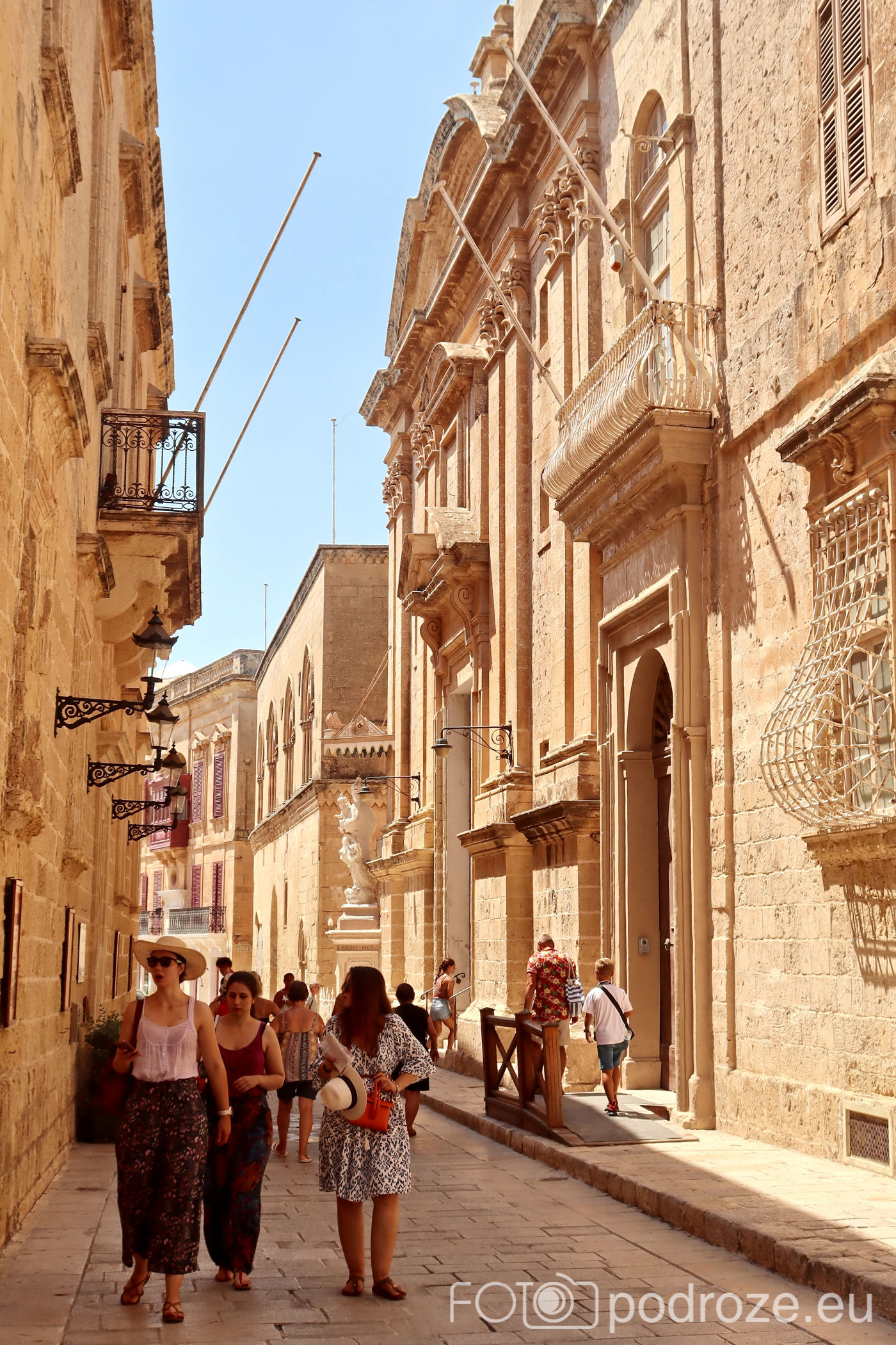 Między placami kolejna piękna i kolorowa zabudowa . Mijamy Kaplicę św. Agaty i Klasztor Knisja u Monasteru ta’ San Pietru. Tuż za nimi muzeum z obrazami poświęcone historii miasta, Tales Of The Silent City, a naprzeciwko przepięknie zdobiony budynek Banca Giuratale w Mdinie